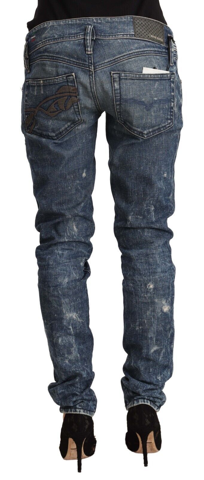 Diesel Blue Distressed Low Waist Cotton Denim Skinny Jeans