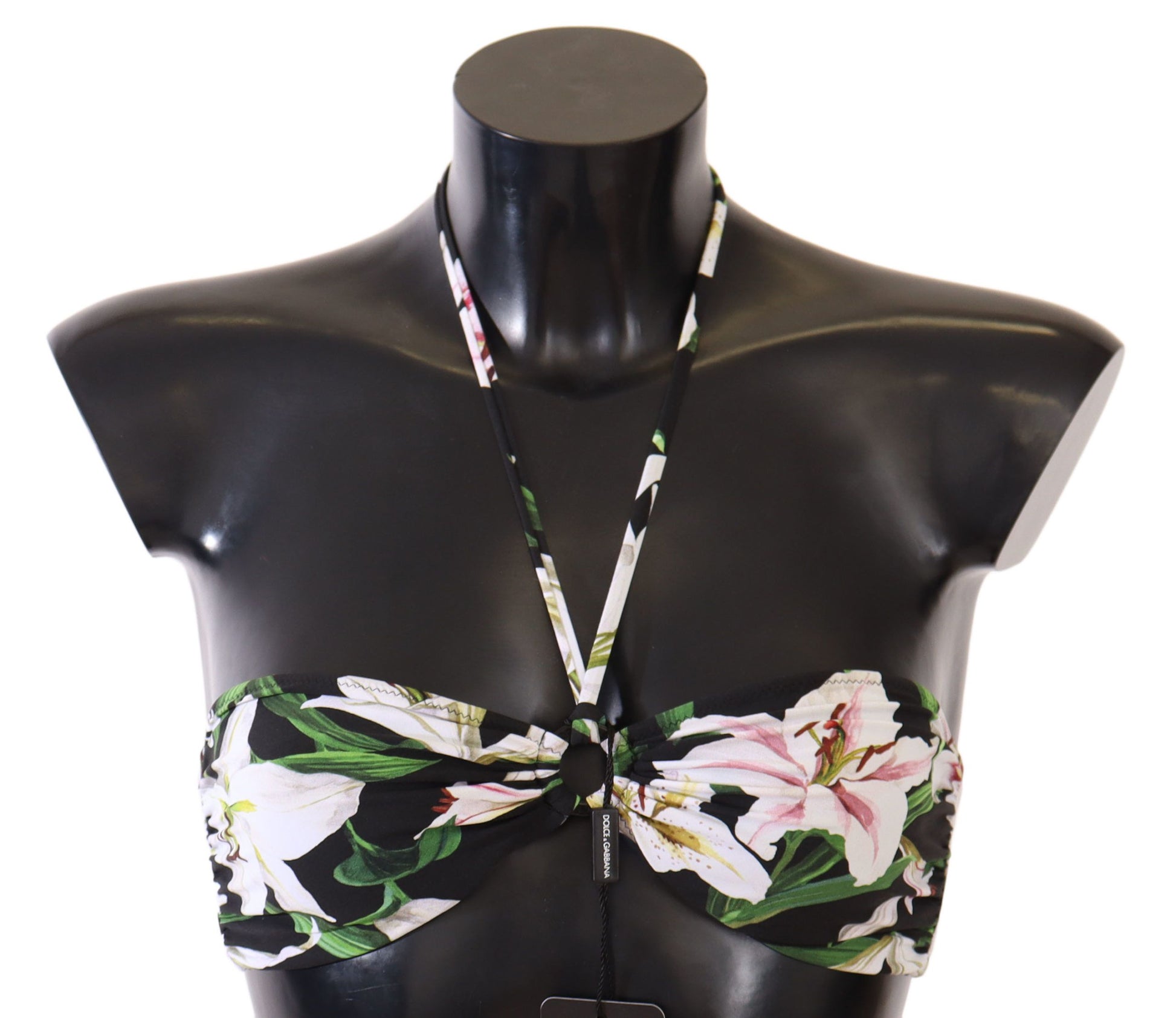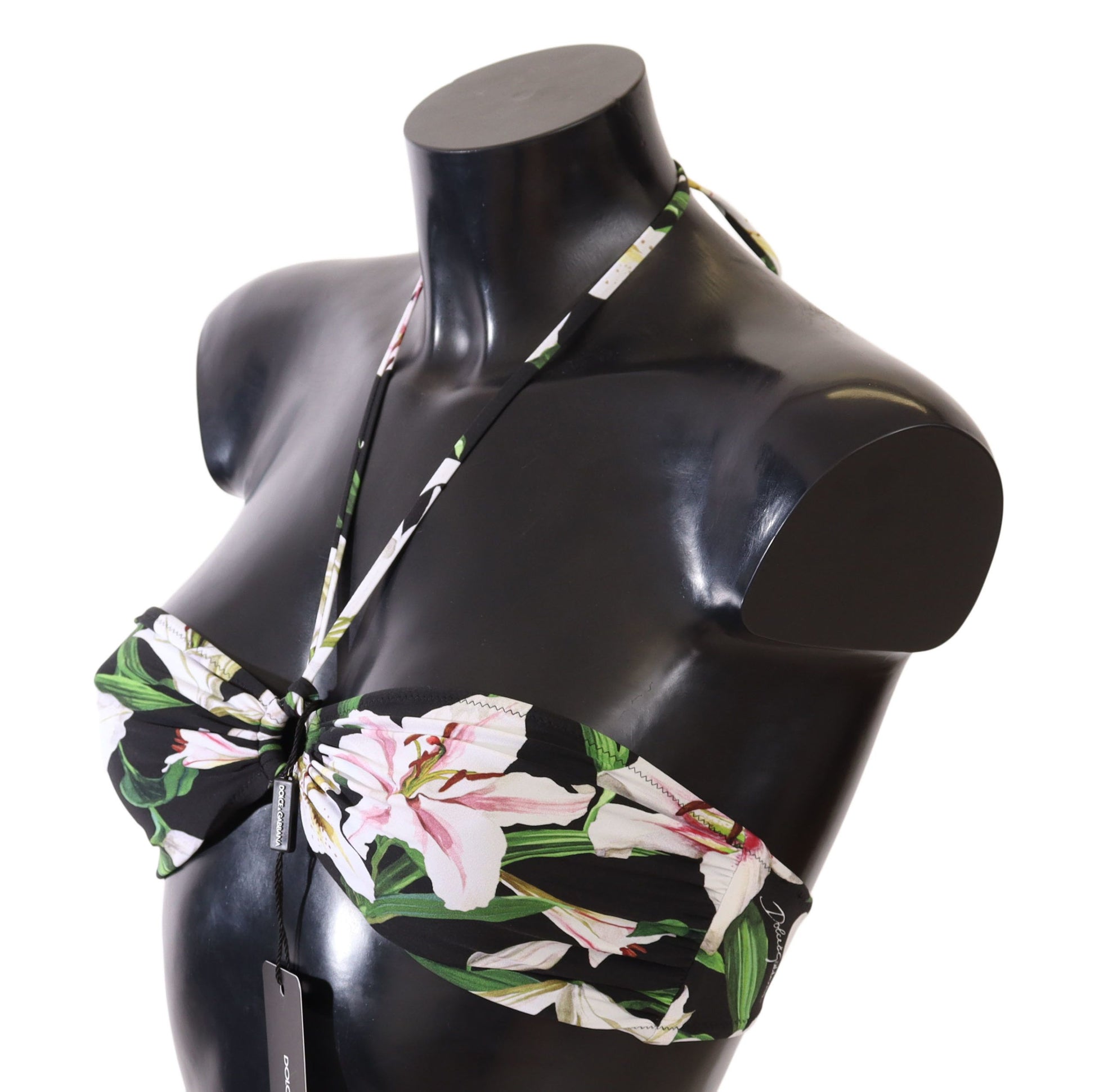Dolce & Gabbana Black Lily Print Swimsuit Bikini Top Swimwear