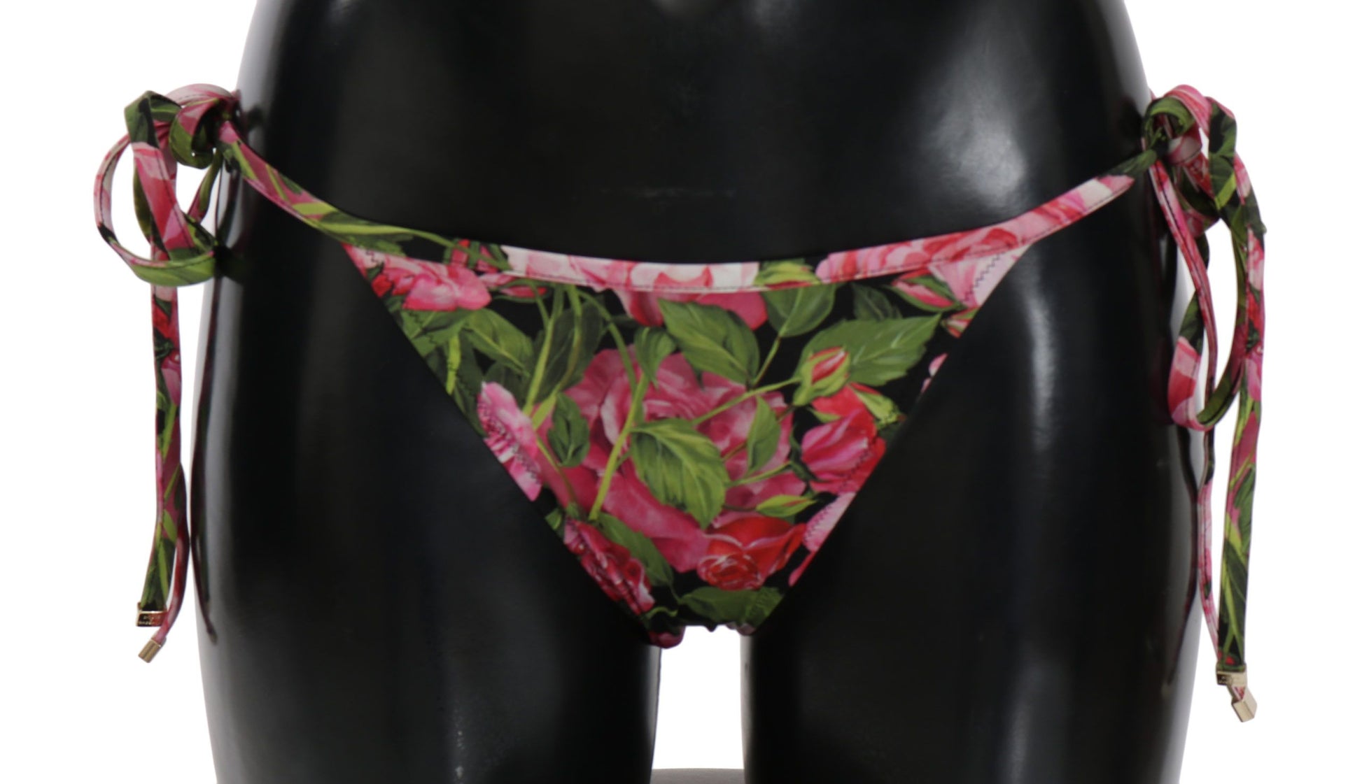 Dolce & Gabbana Black Pink Rose Print Bottom Bikini Beachwear