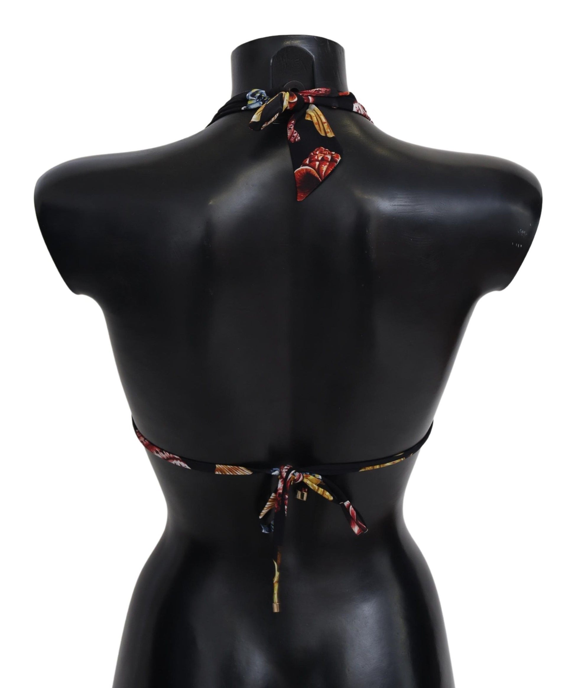 Dolce & Gabbana Black Seashells Print Halter Swimwear Bikini Tops