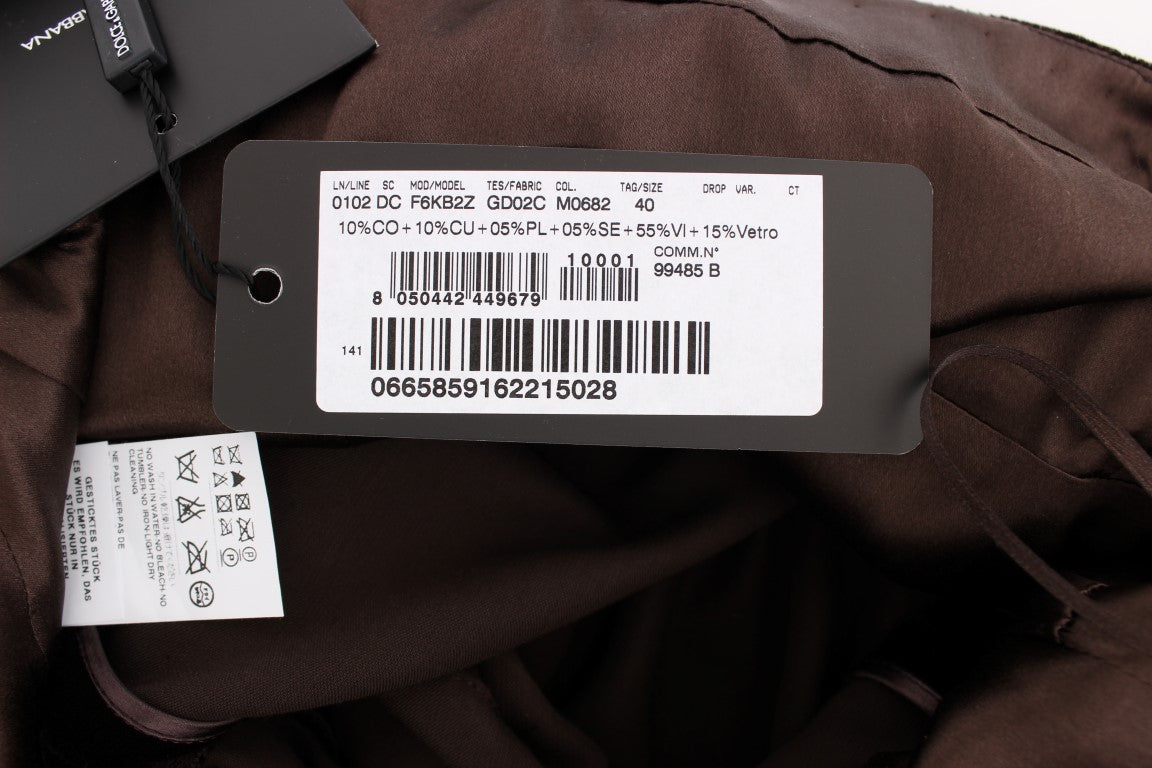 Dolce & Gabbana Brown Velvet Crystal Sheath Gown Dress