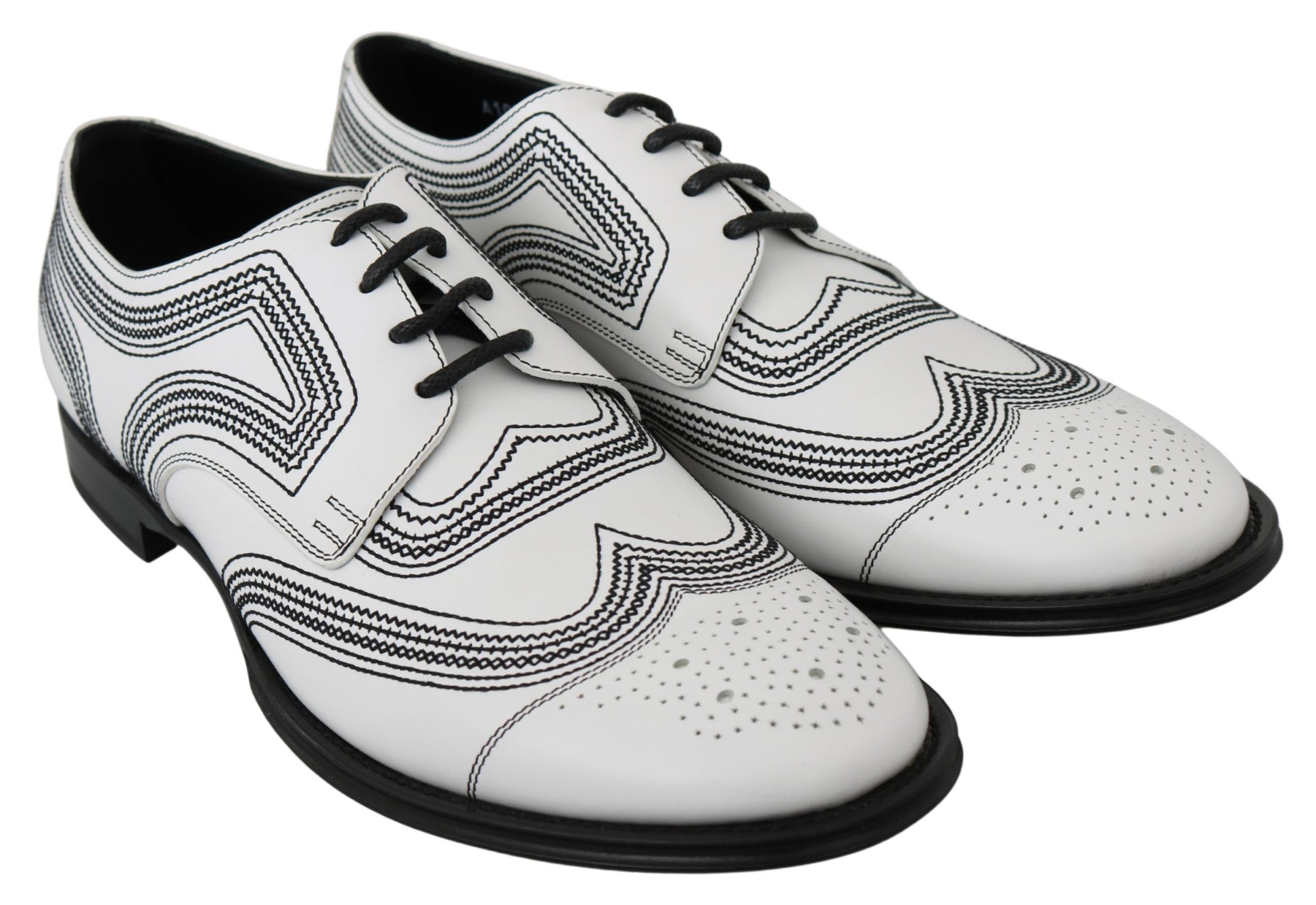 Dolce & Gabbana White Leather Derby Formal Black Lace Shoes