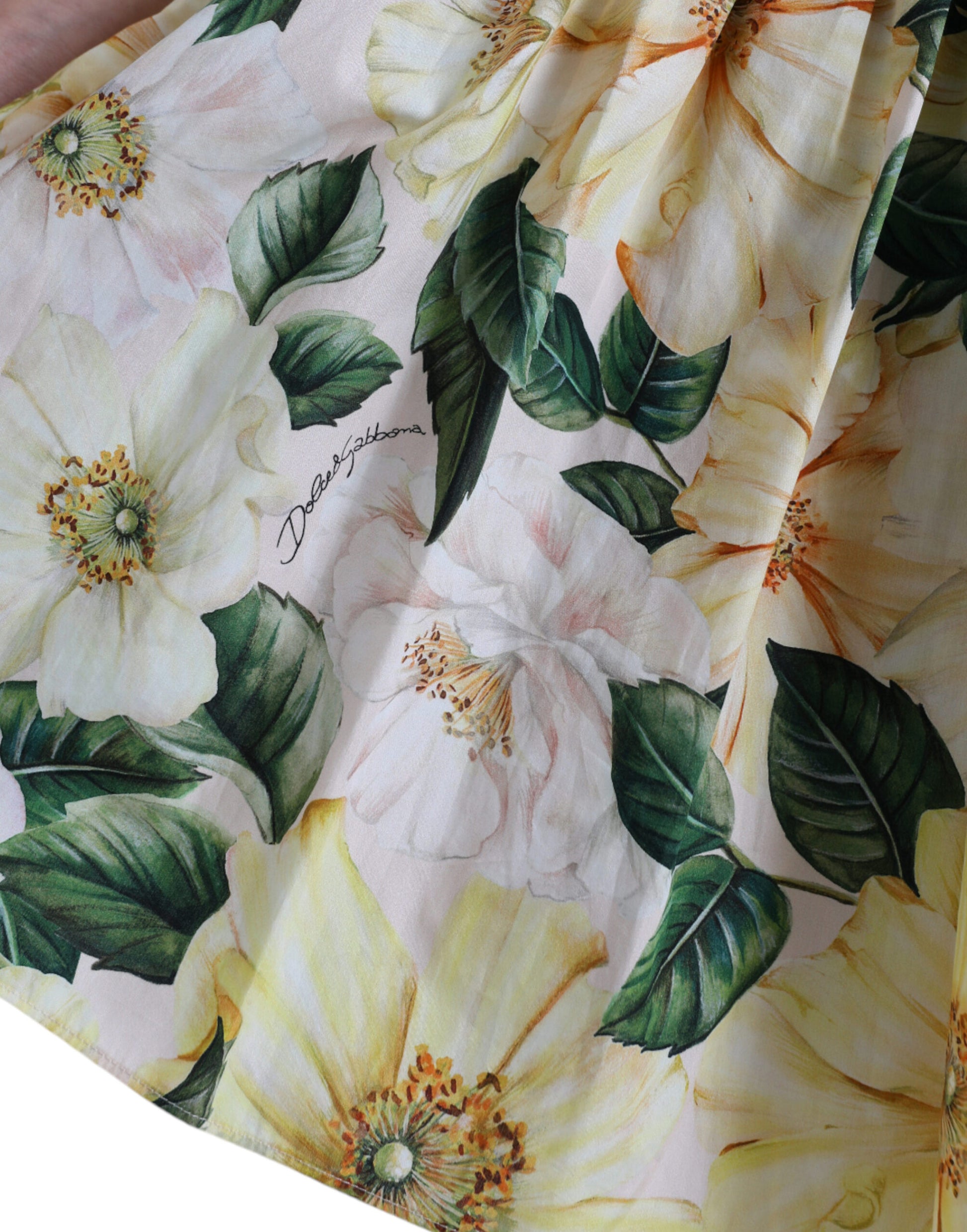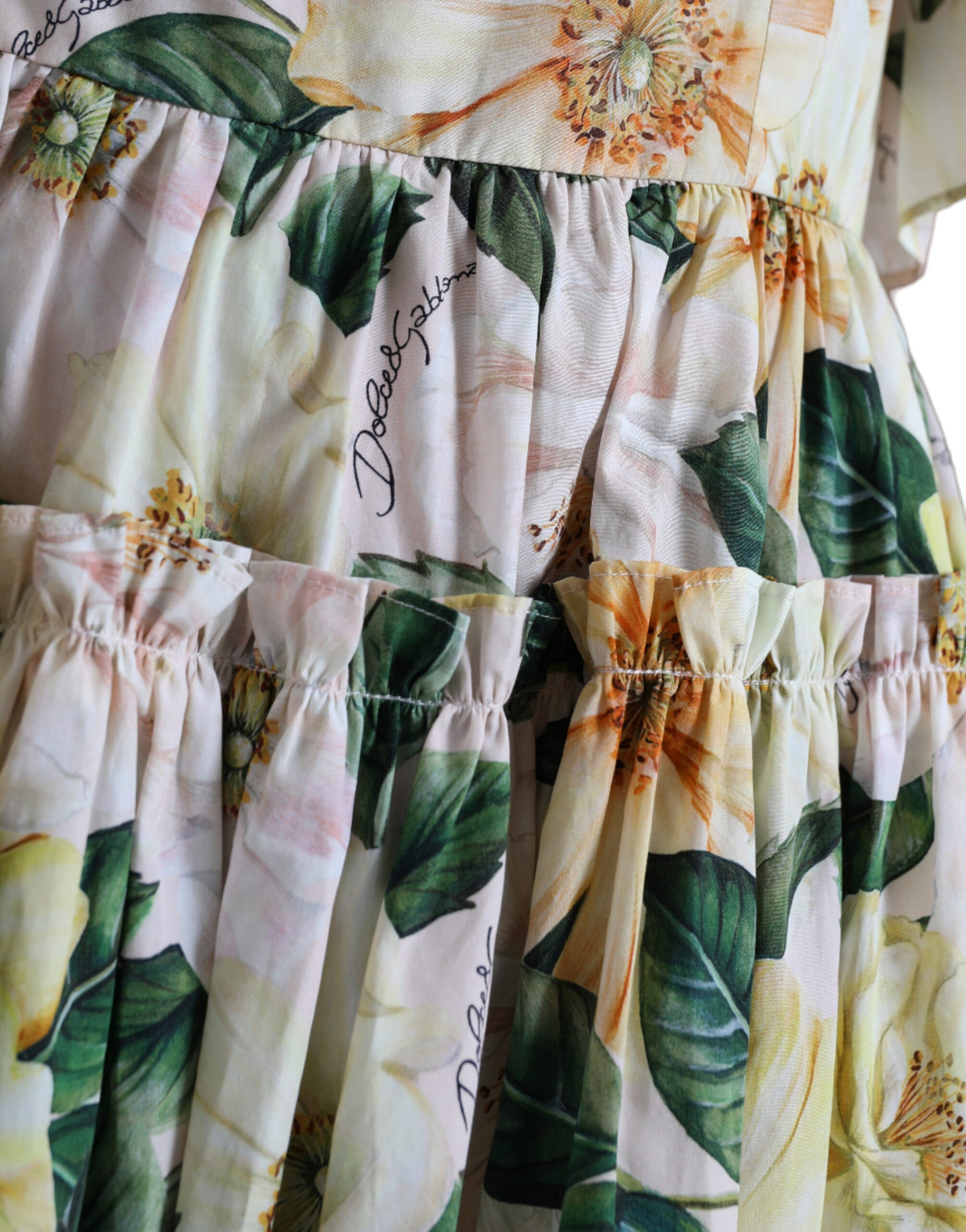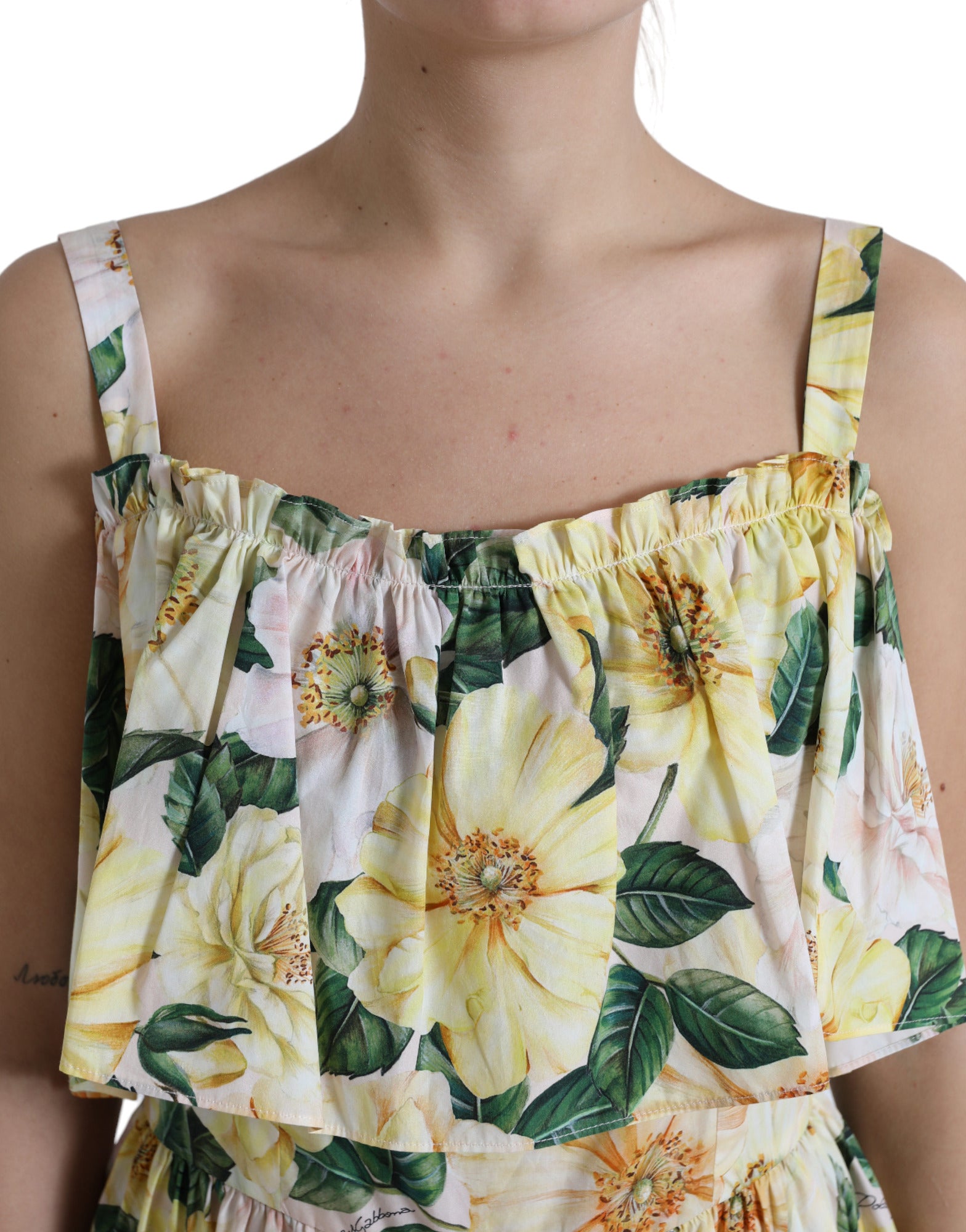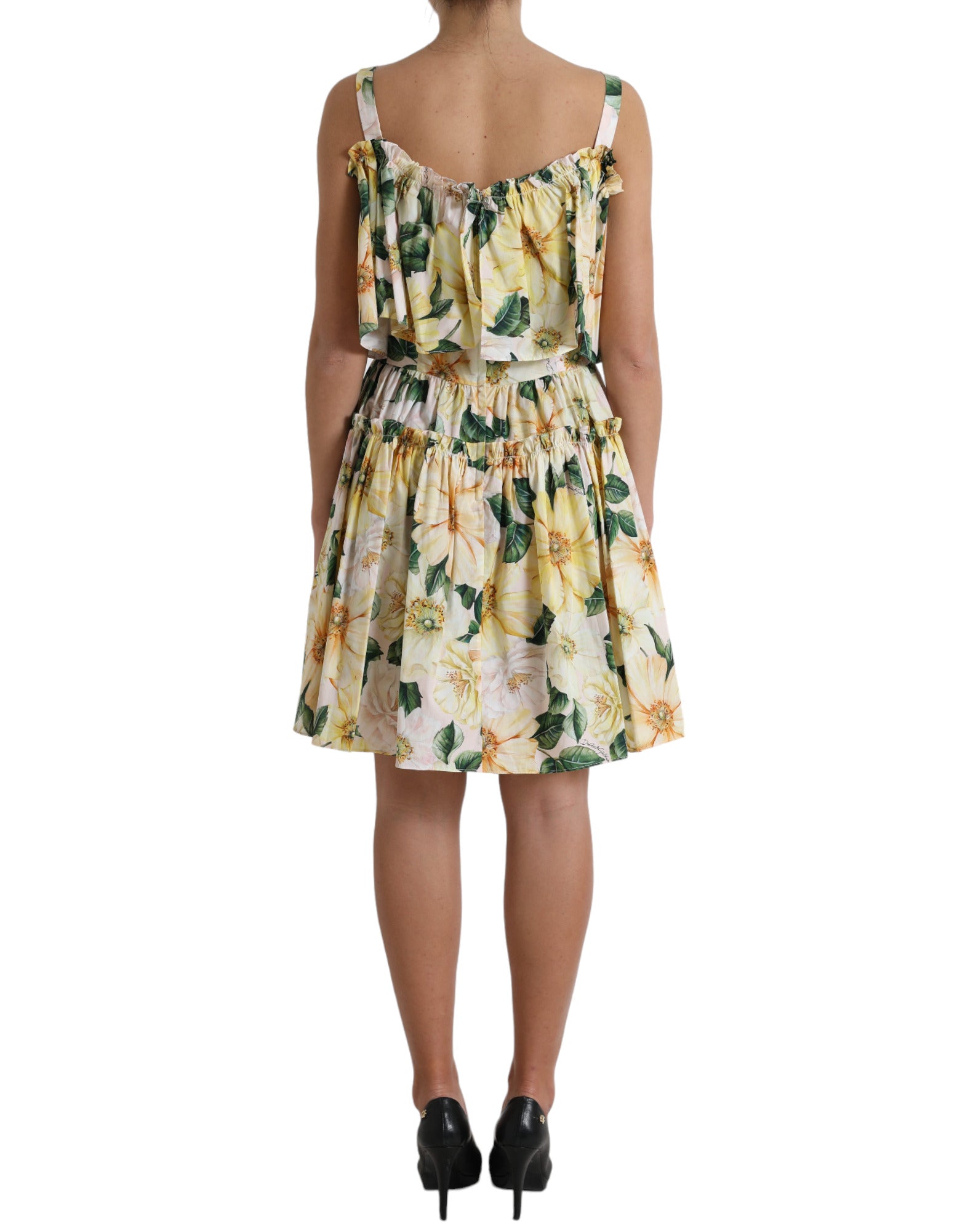 Dolce & Gabbana Yellow Floral Print Cotton Mini Dress