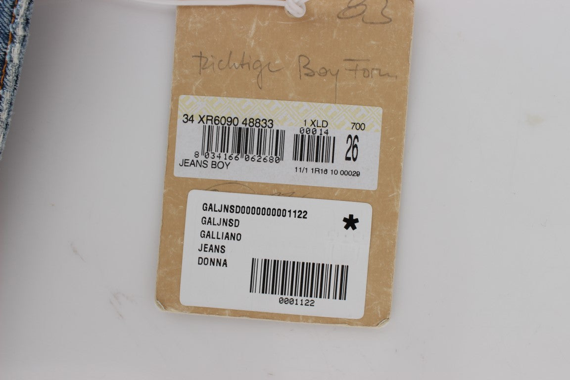 John Galliano Blue Wash Cotton Boyfriend Fit Cropped Jeans