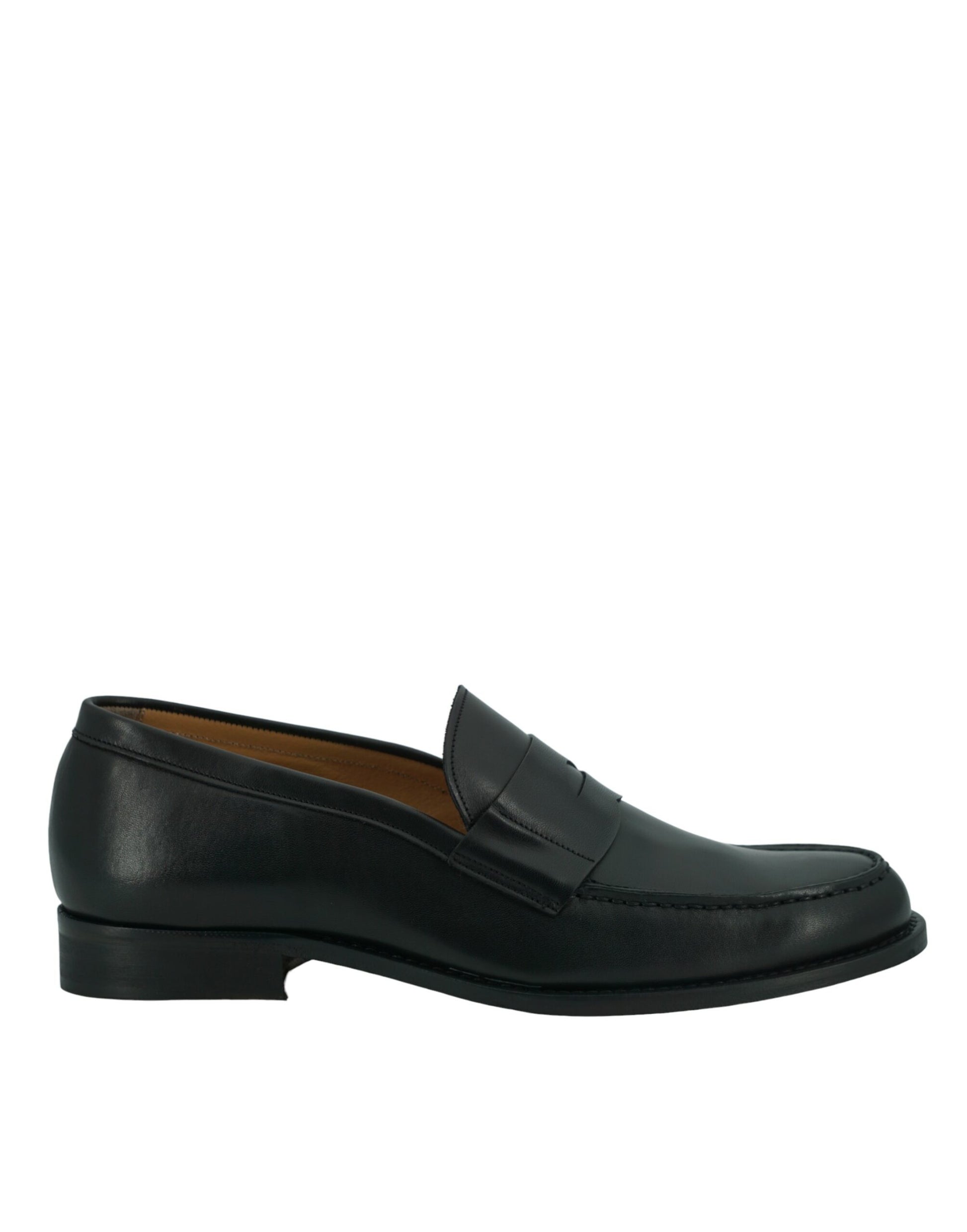 Saxone of Scotland Black Calf Leather Mens Loafers Shoes