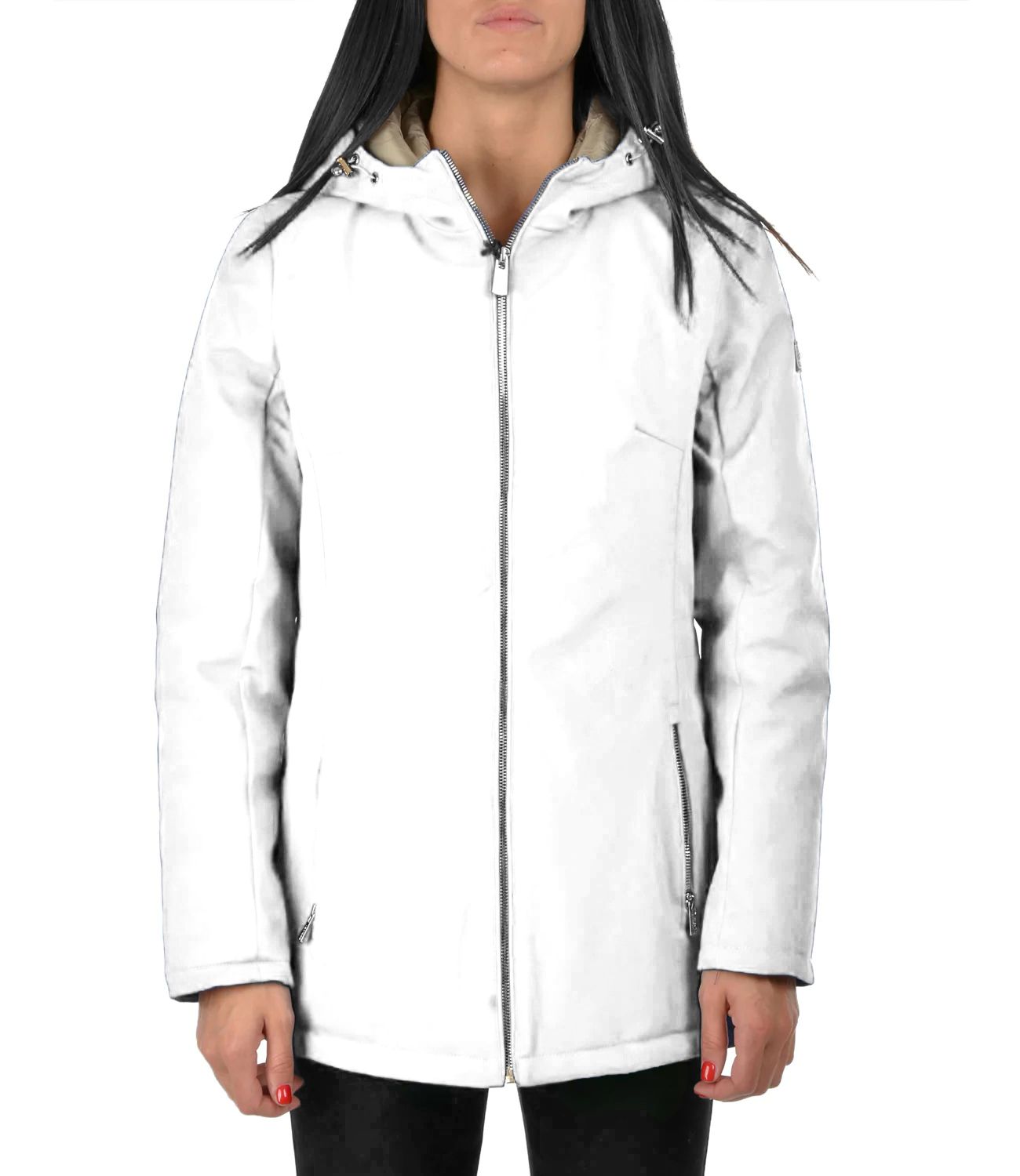 Yes Zee women’s down jacket with hood and zip closure, two front pockets and one inside pocket, adjustable drawstring on the bottom