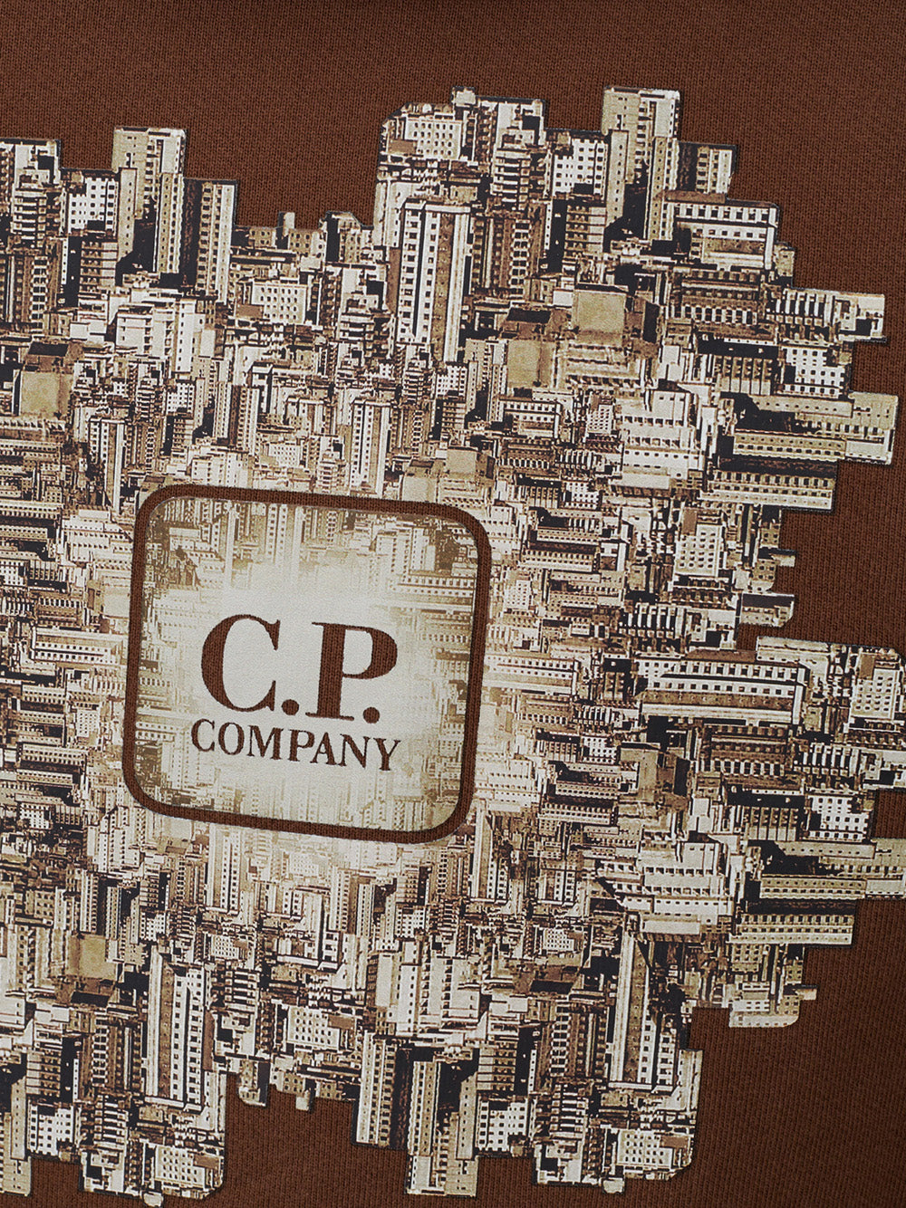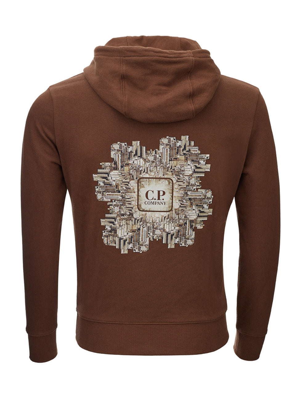 C.P. Company Brown Cotton Hooded Sweatshirt with Logo