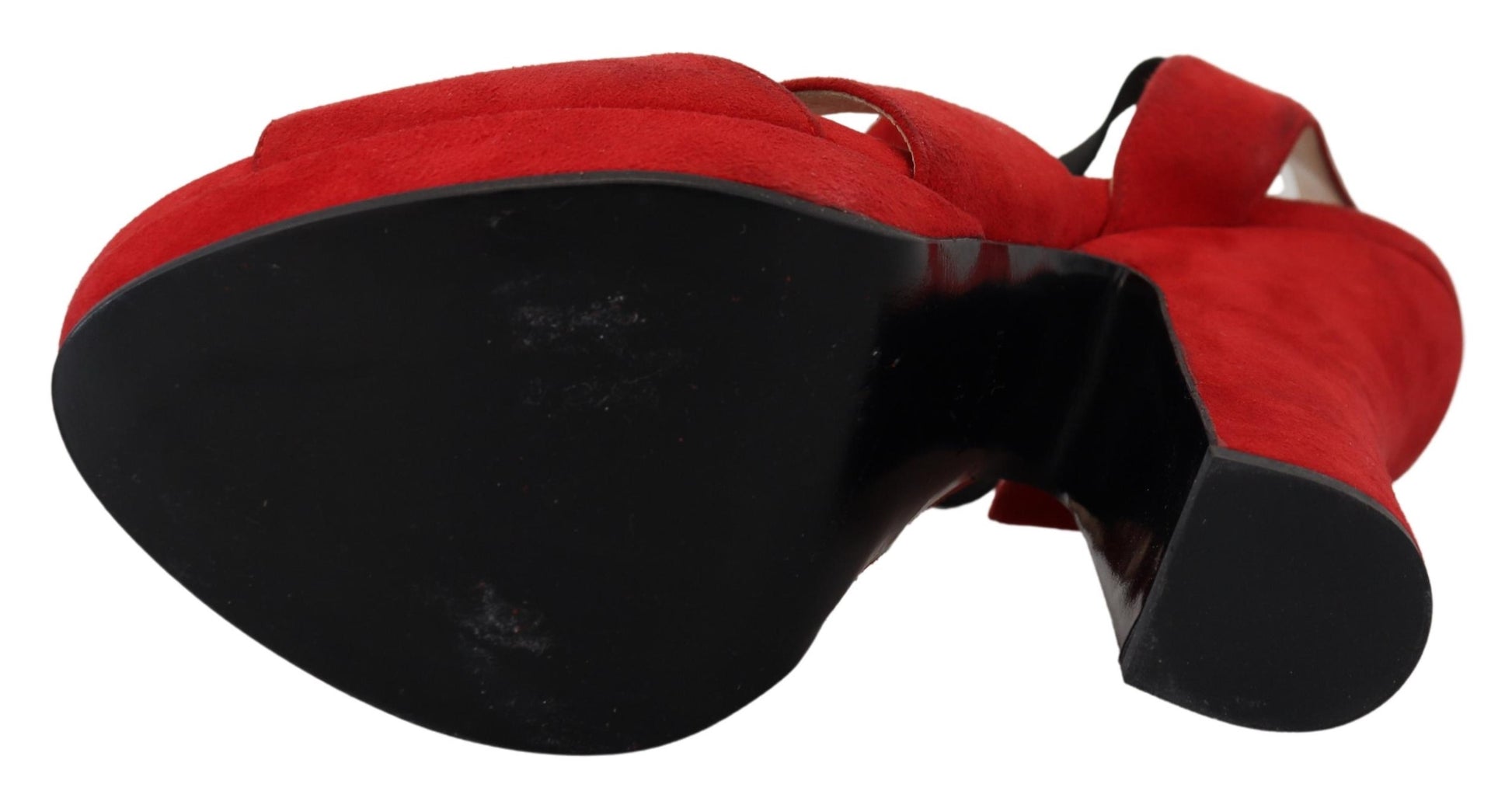 Prada Red Suede Leather Sandals Ankle Strap Heels Shoes