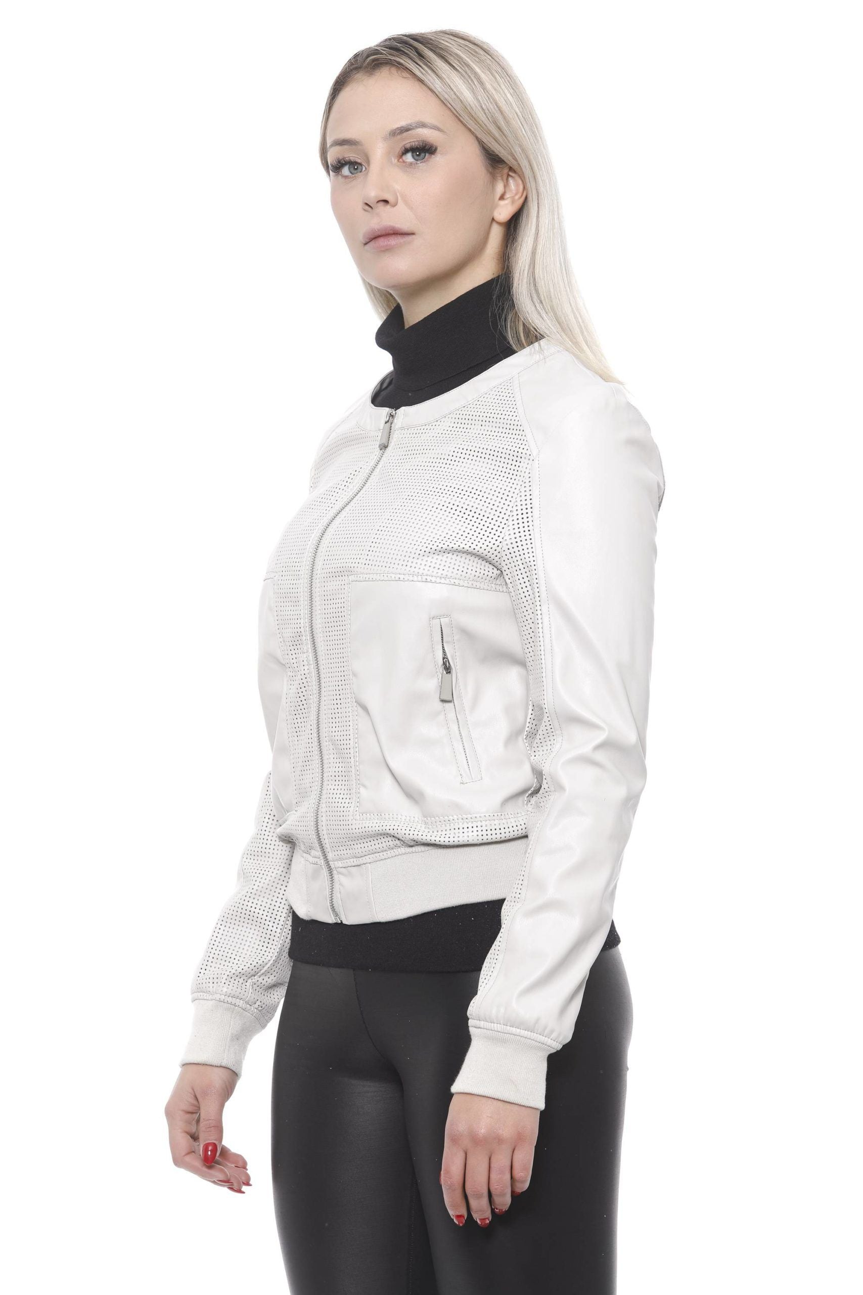 Woman Jacket In Perforated Faux Leather. She Zip Closure. Welt Pockets With Zip. Knitted Edges.