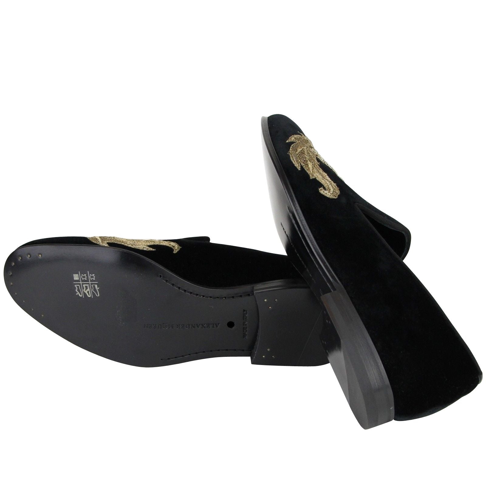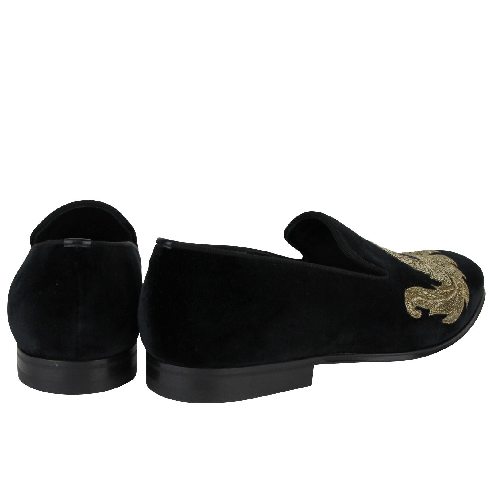 Alexander McQueen Alexander McQueen Men's Gold Embroidered Detail Black Velvet Slip On Shoes