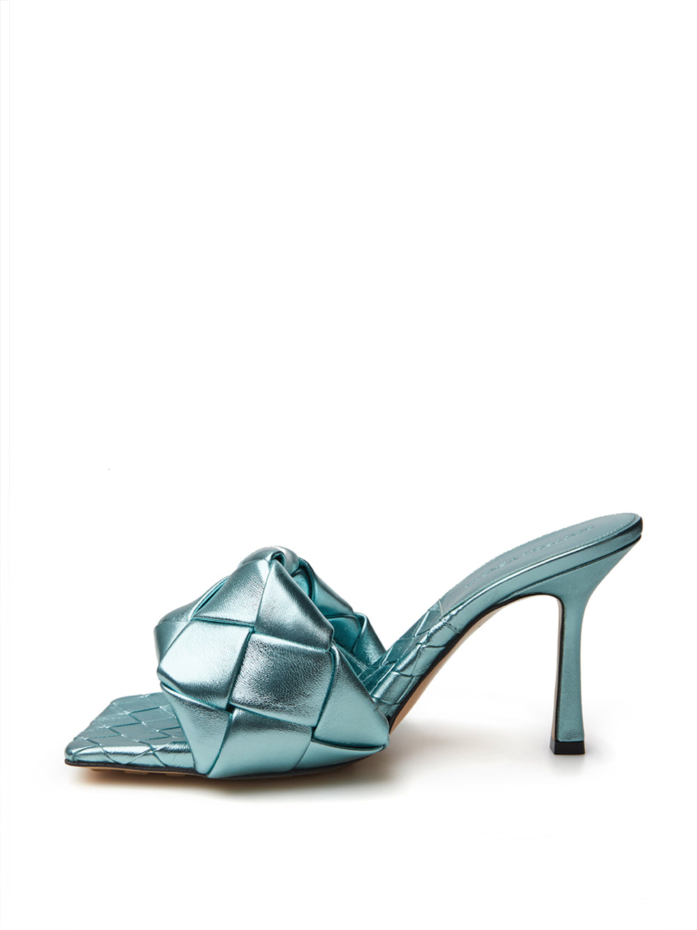 Bottega Veneta Light Blue Metal Mule 'Lido' Sandal