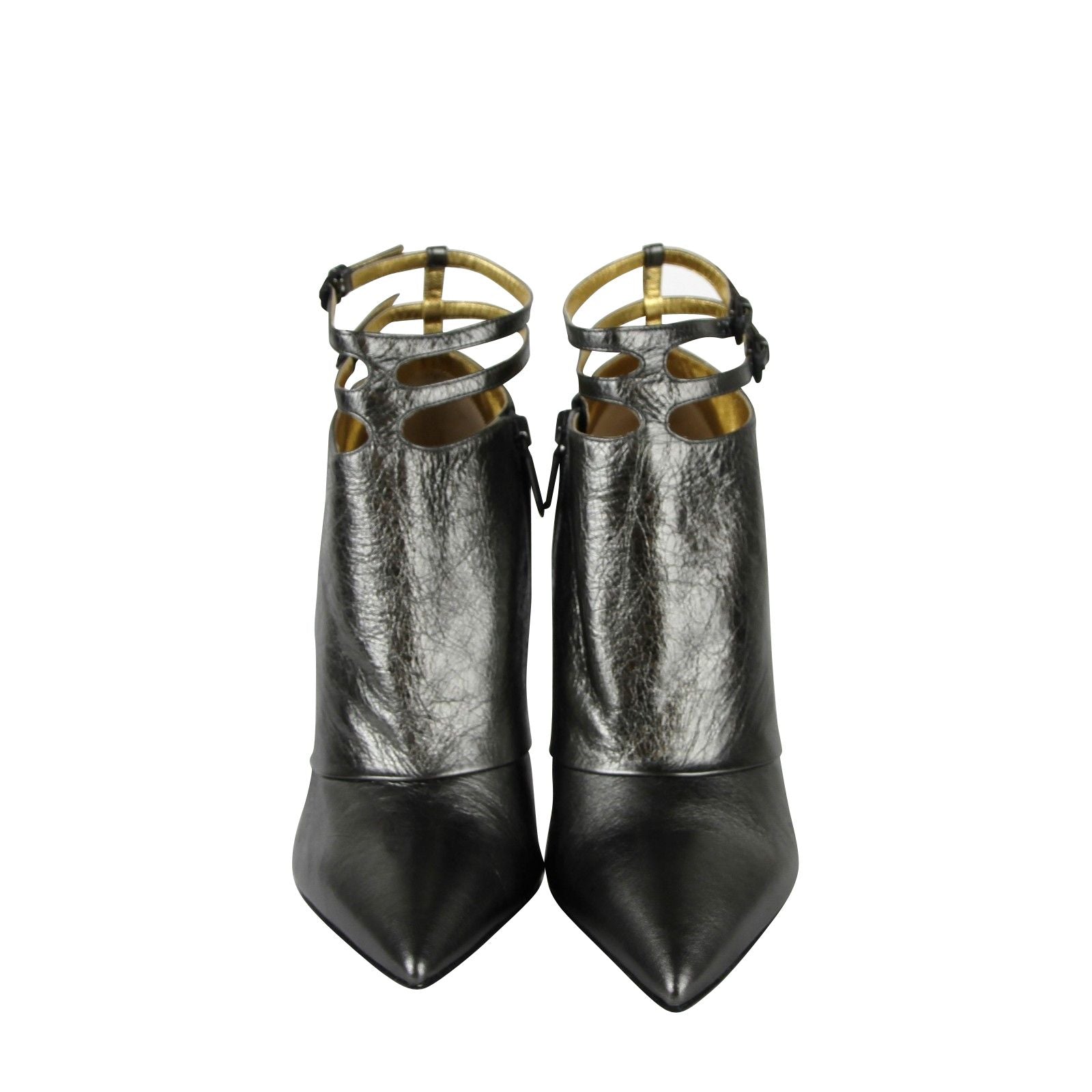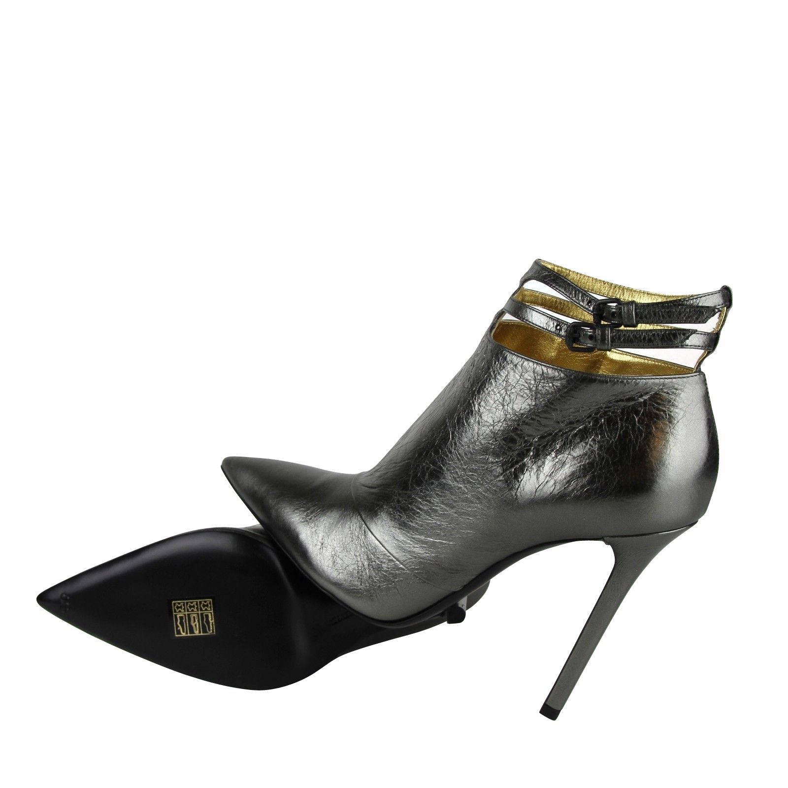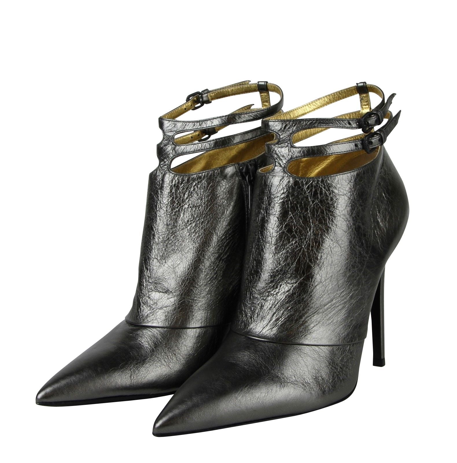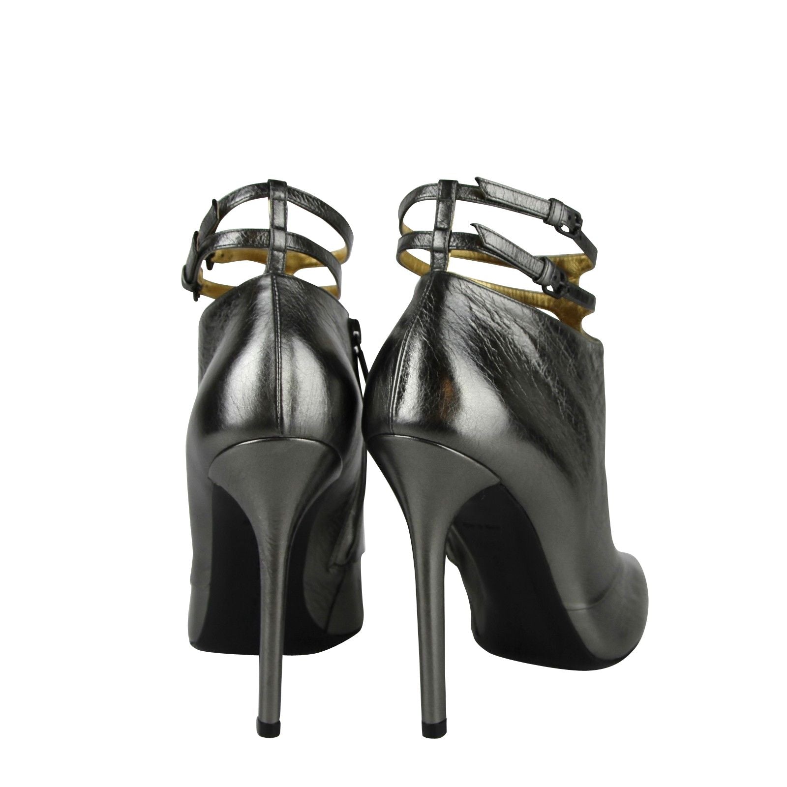 Bottega Veneta Women's Grey Ankle Metallic Leather Heels With Straps