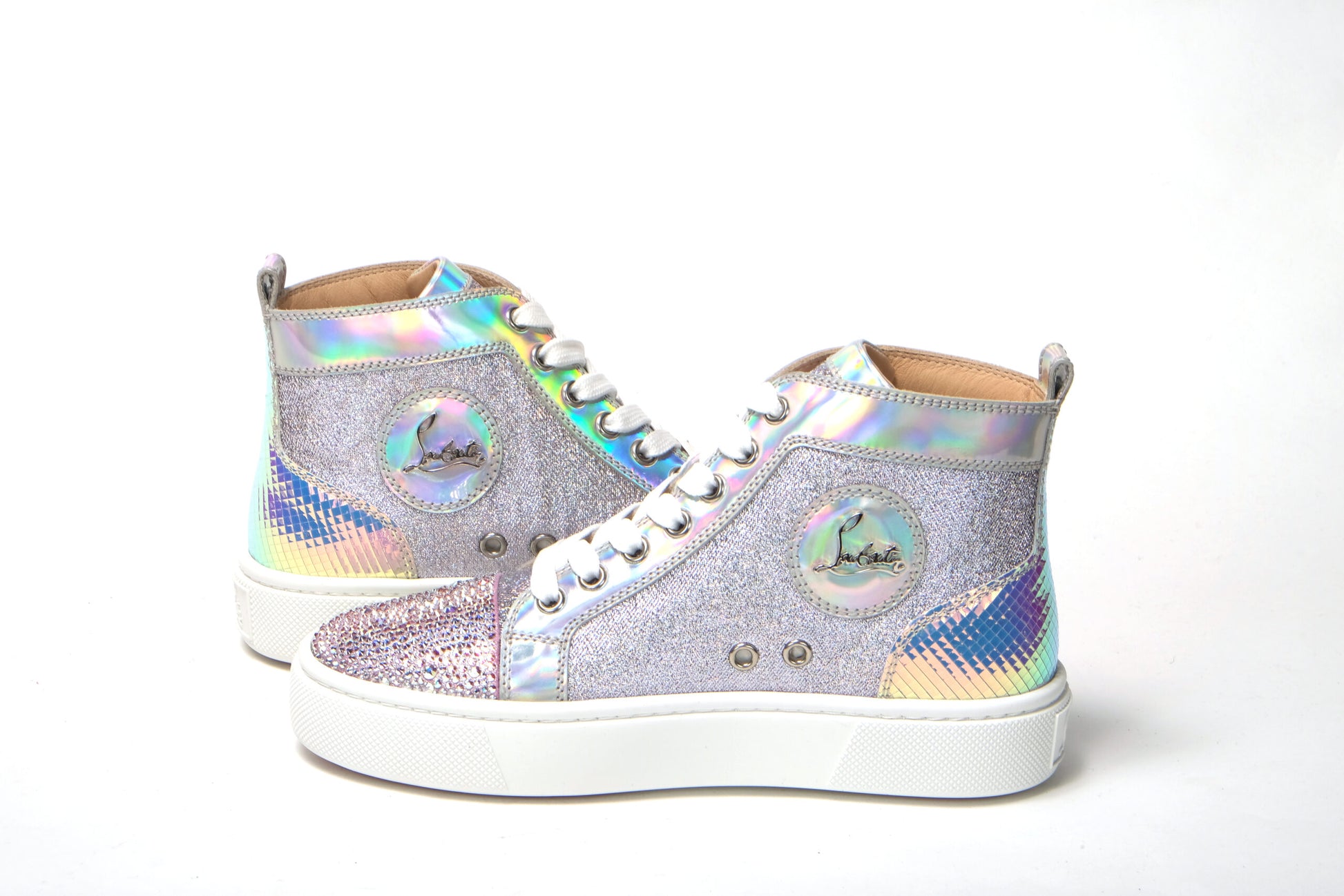 Christian Louboutin Ab/Silver Super Lou Strass Fla Sneakers