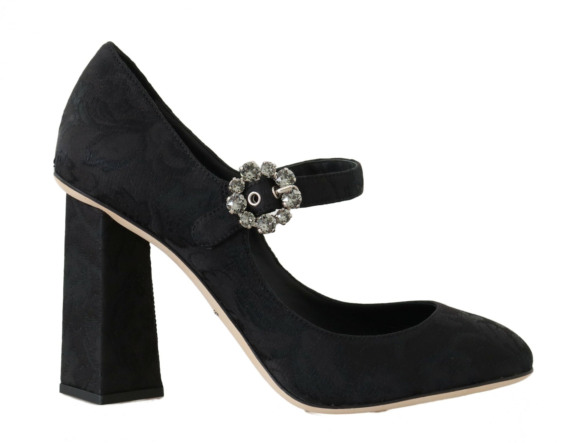 Dolce & Gabbana Black Brocade High Heels Mary Janes Shoes