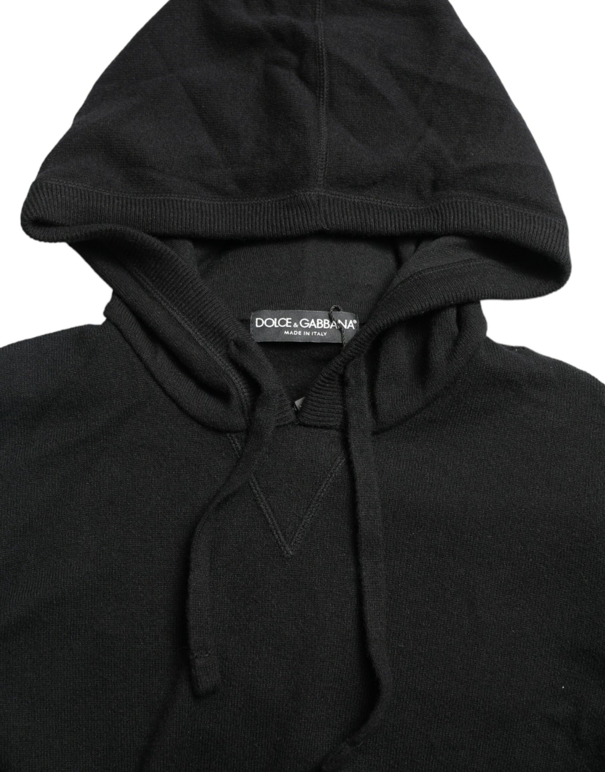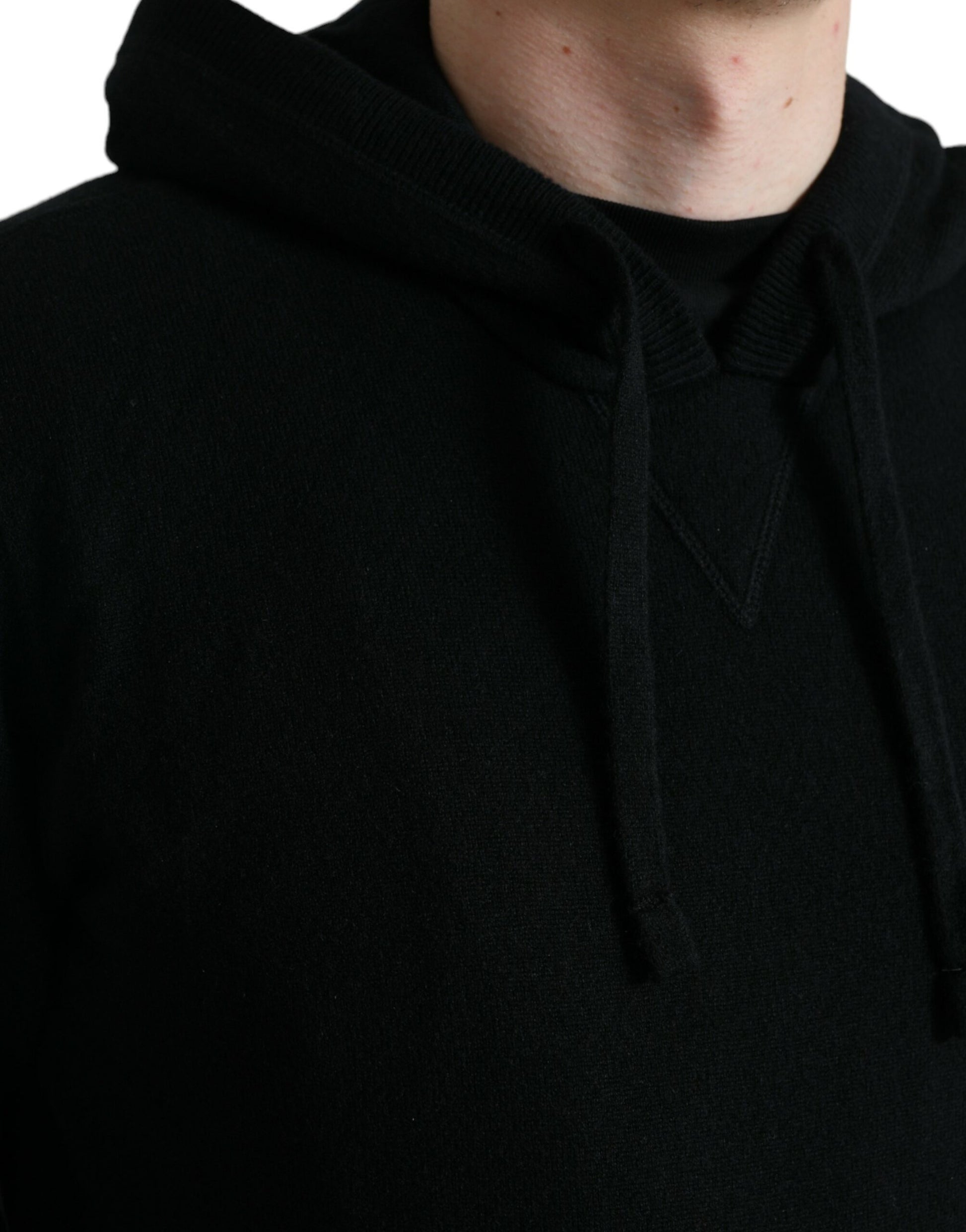 Dolce & Gabbana Black Cashmere Hooded Pullover Sweater