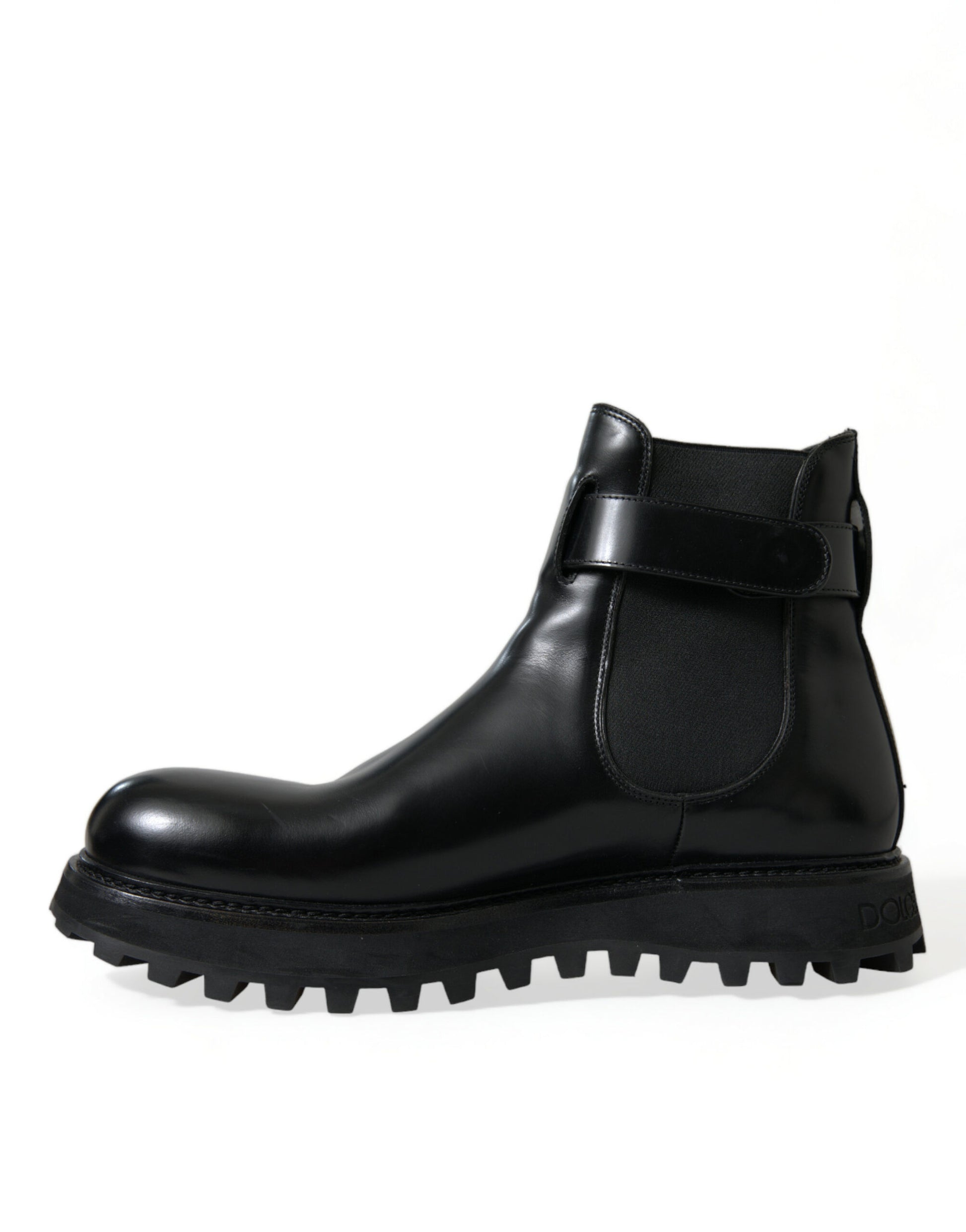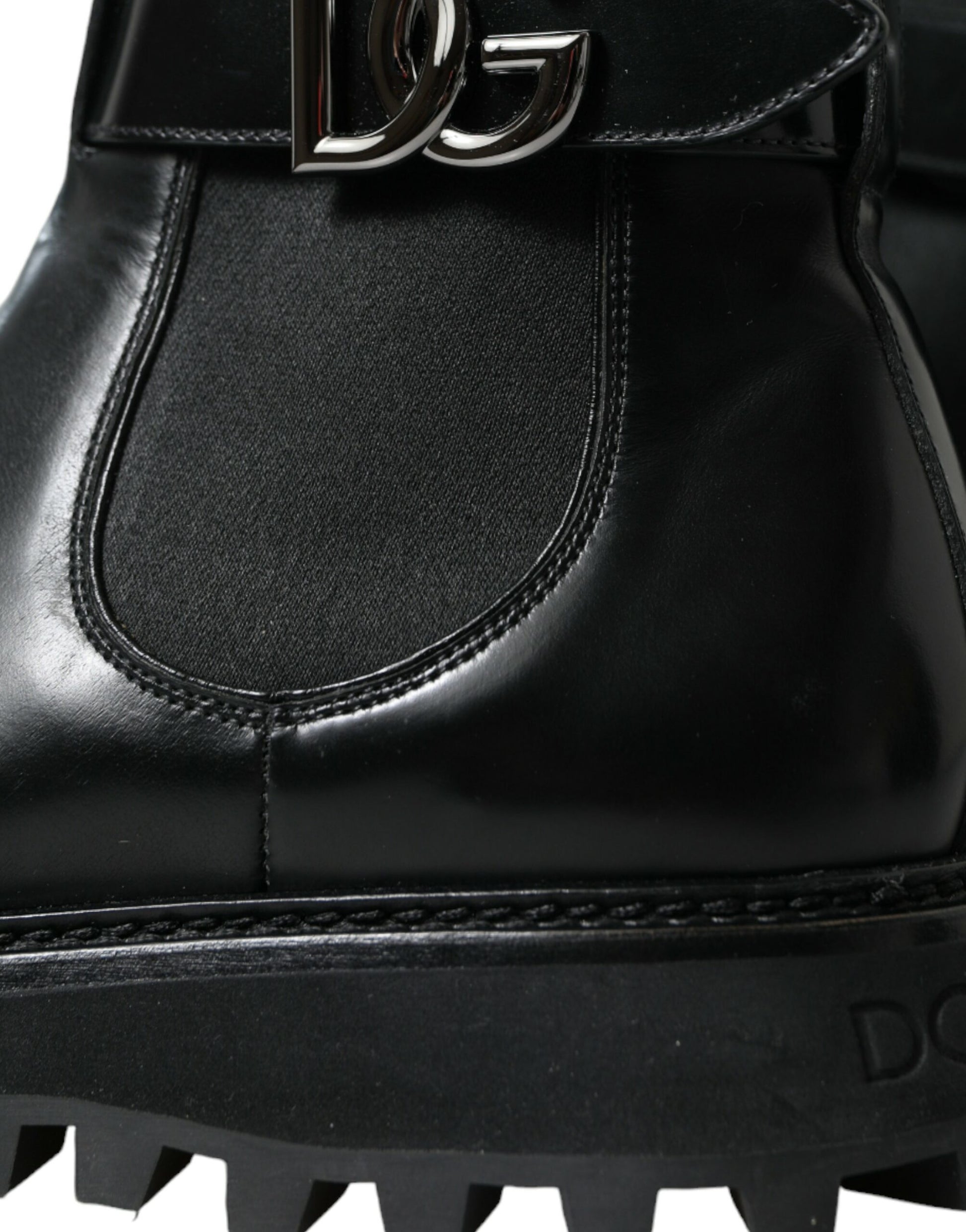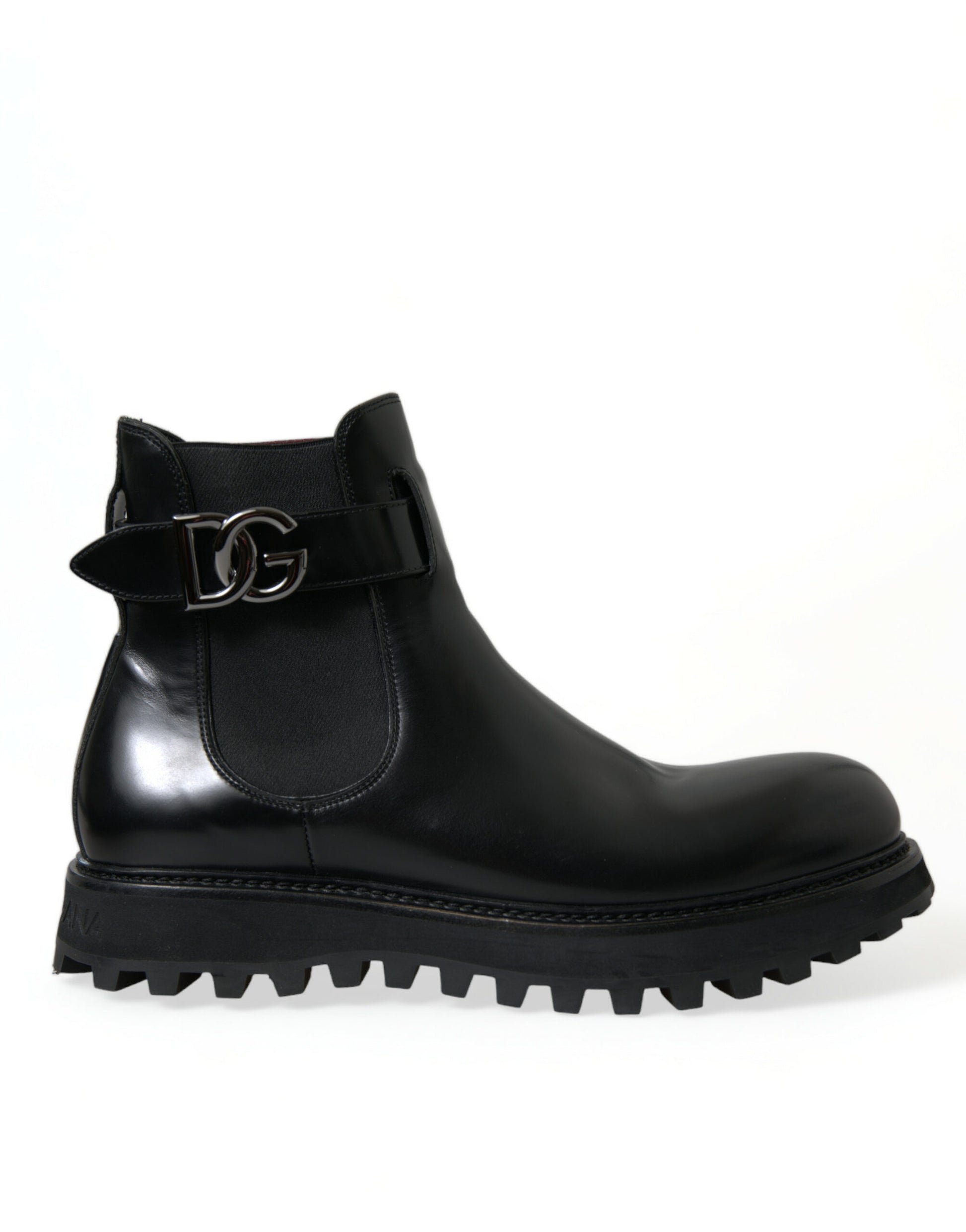 Dolce & Gabbana Black Chelsea Belted DG Logo Boots Shoes