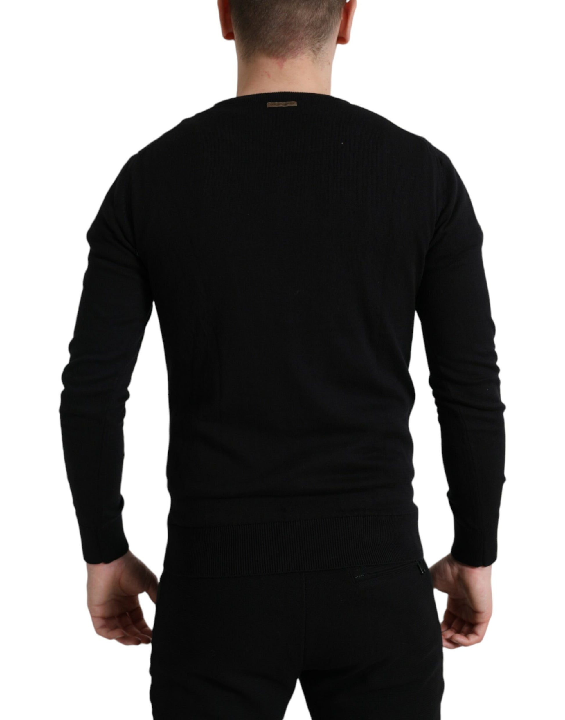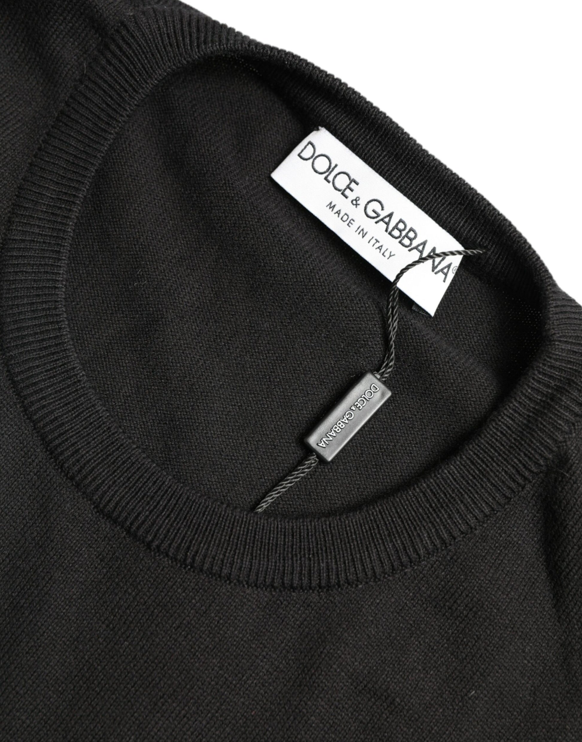 Dolce & Gabbana Black Cotton Crew Neck Men Pullover Sweater