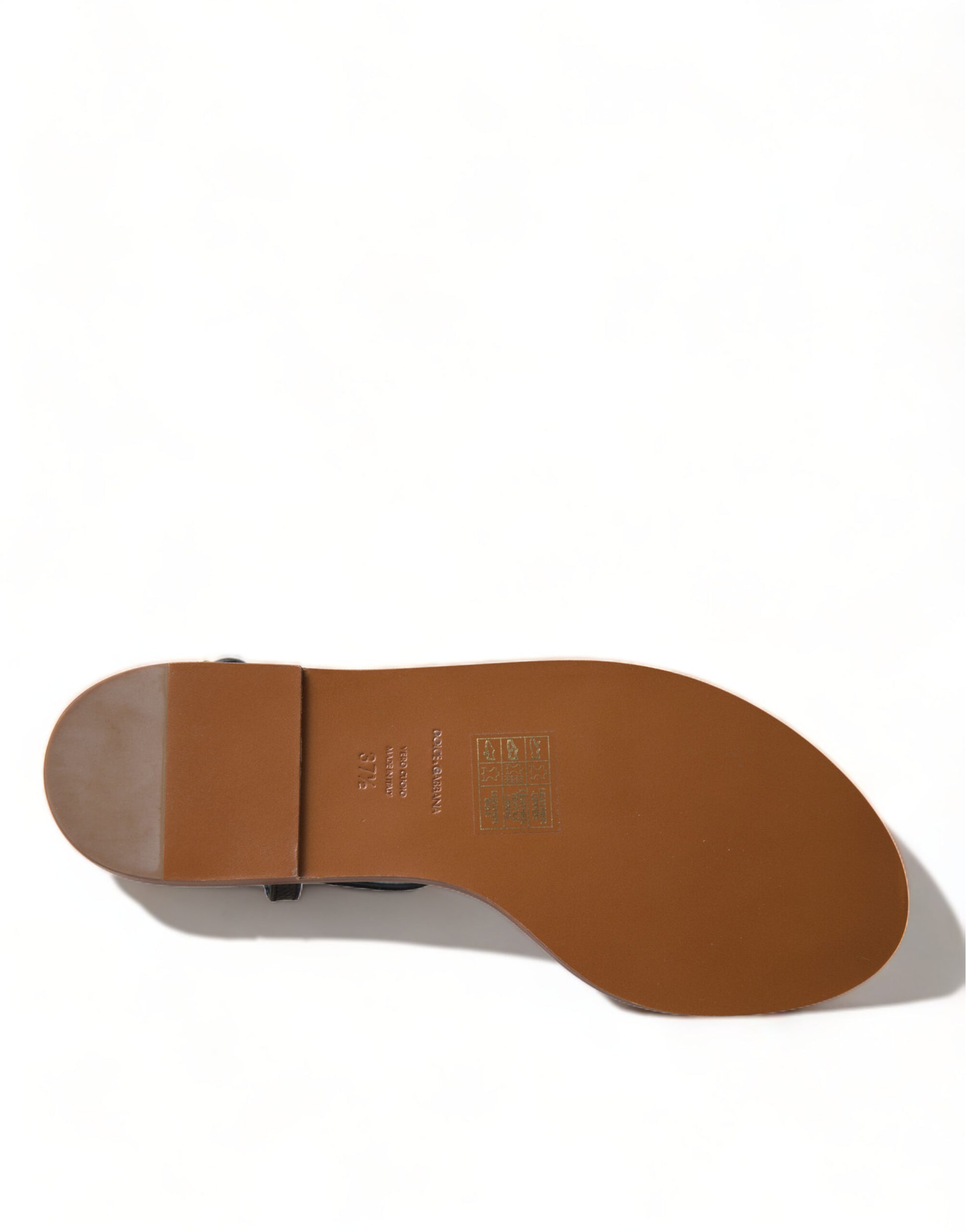 Dolce & Gabbana Black Crystal Gold Sandals Leather Shoes