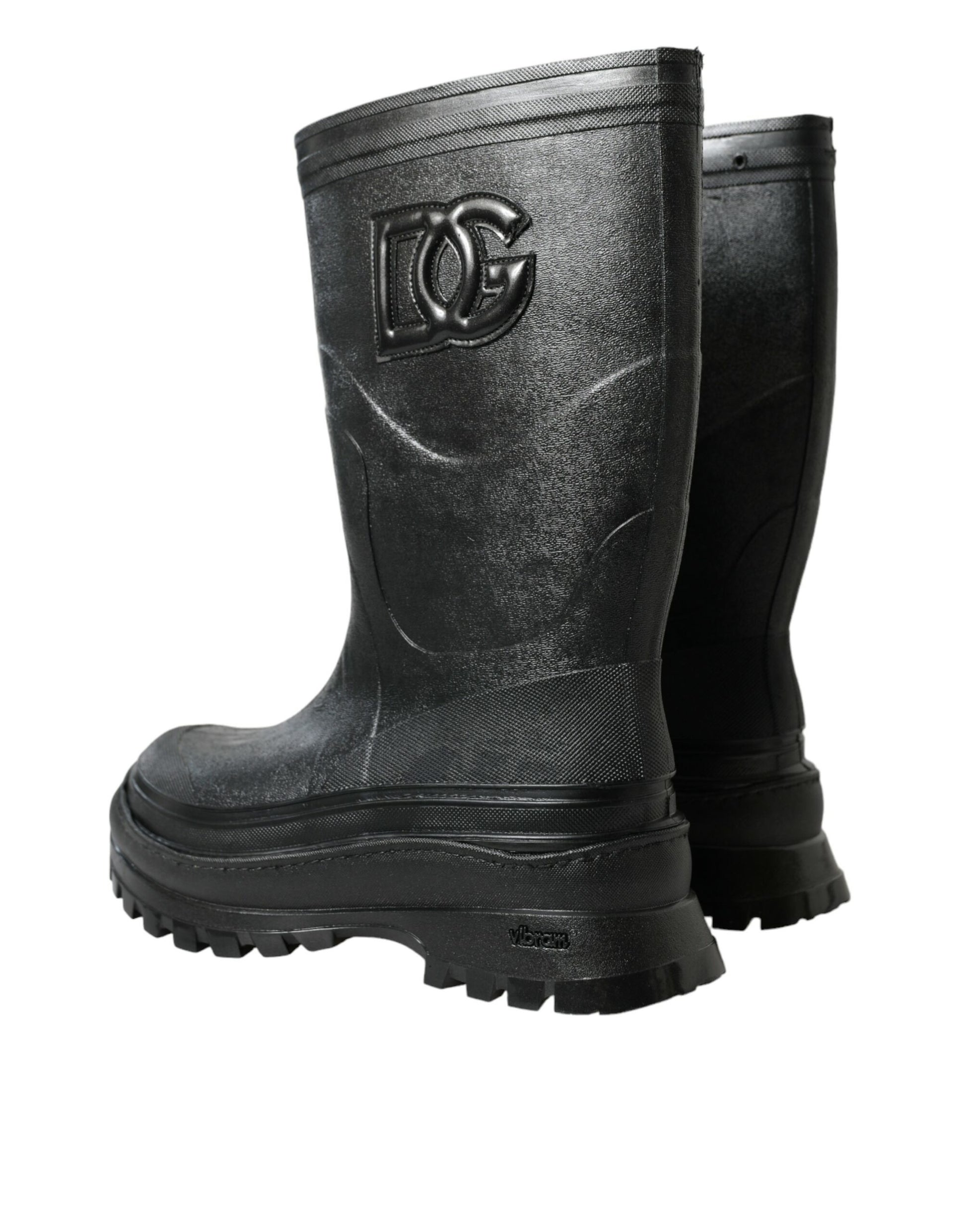 Dolce & Gabbana Black Embossed Metallic Rubber Boots Shoes