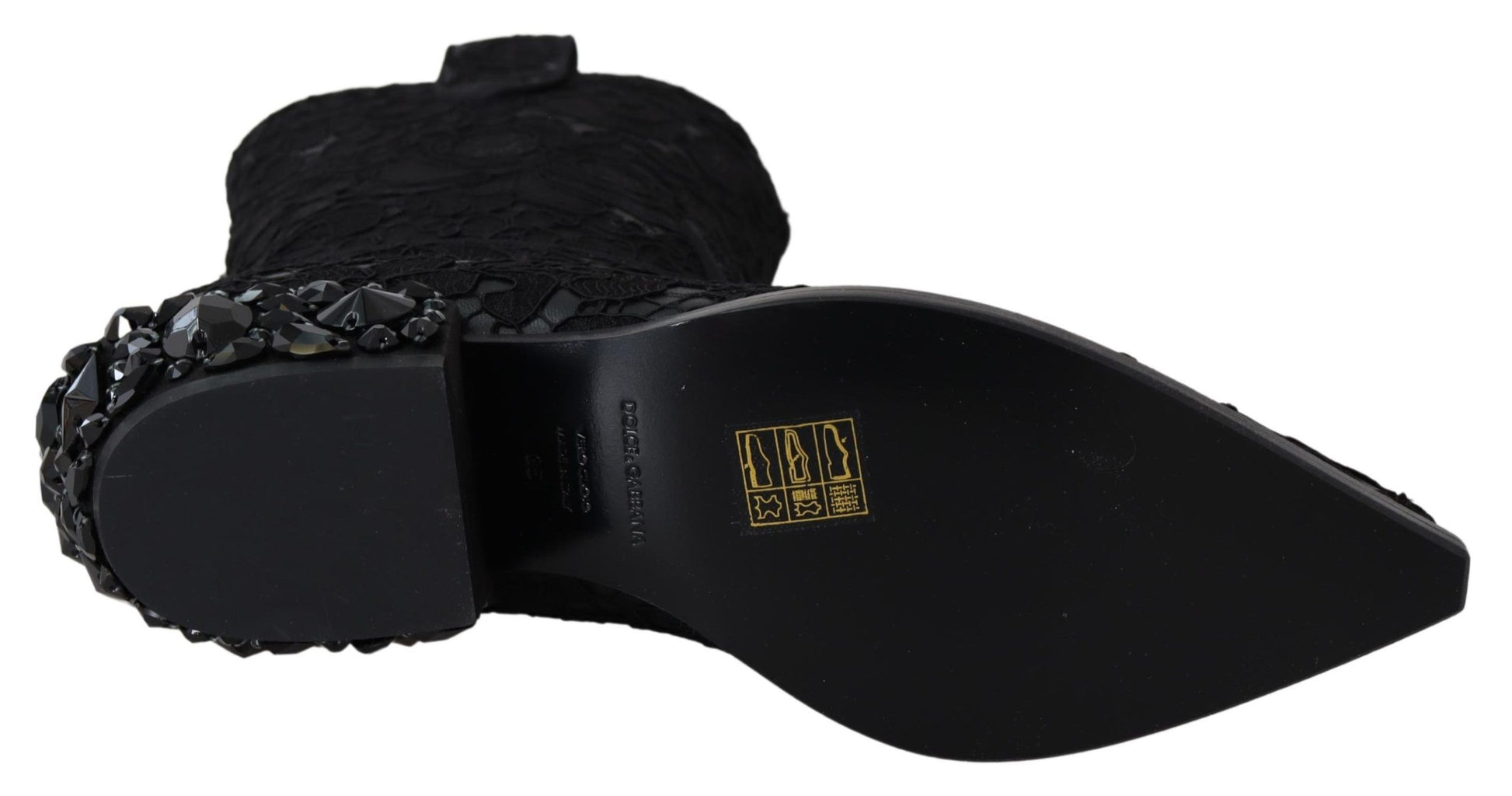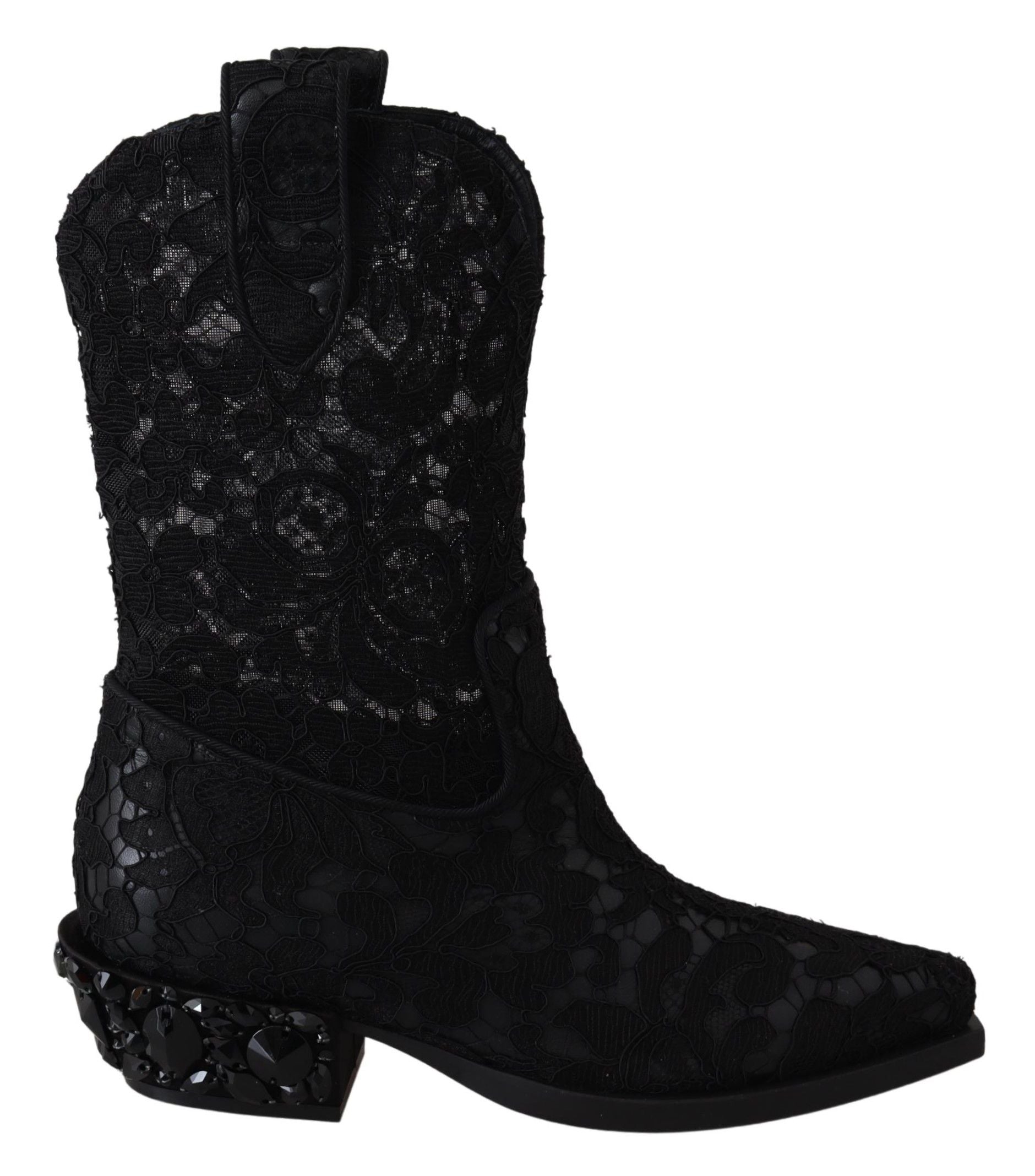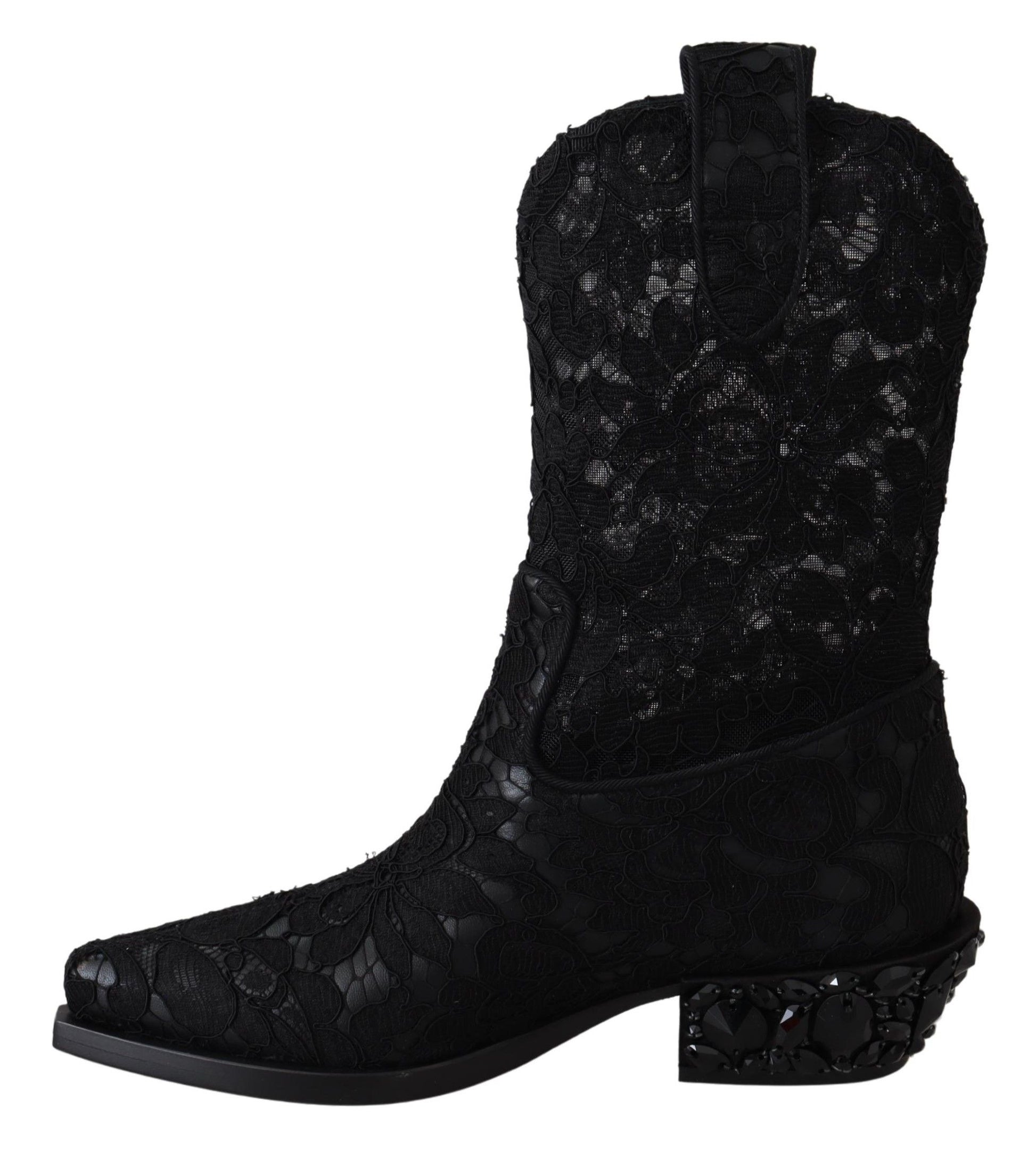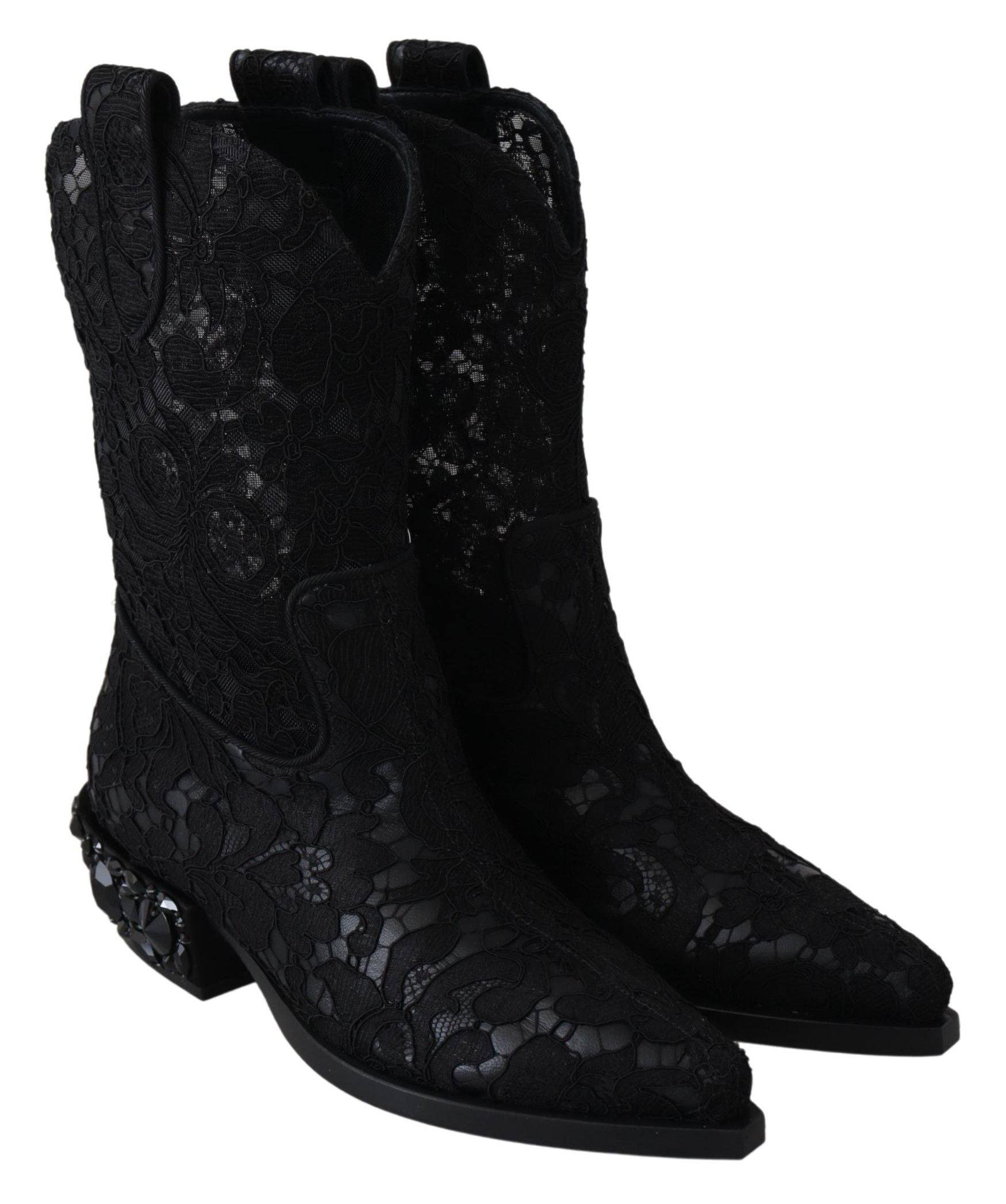 Dolce & Gabbana Black Lace Taormina Ankle Cowboy Crystal Shoes