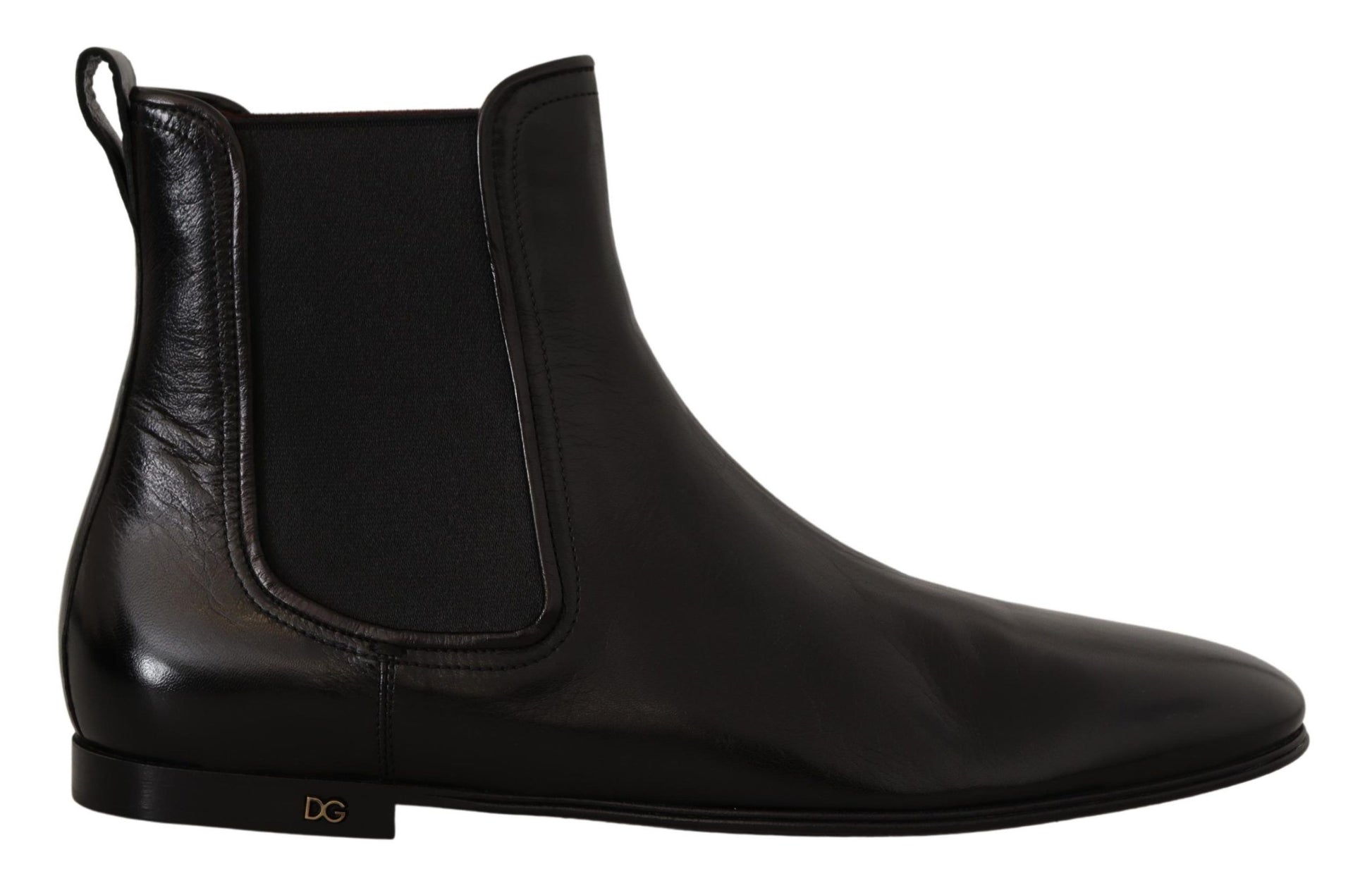 Dolce & Gabbana Black Leather Derby Boots Ankle