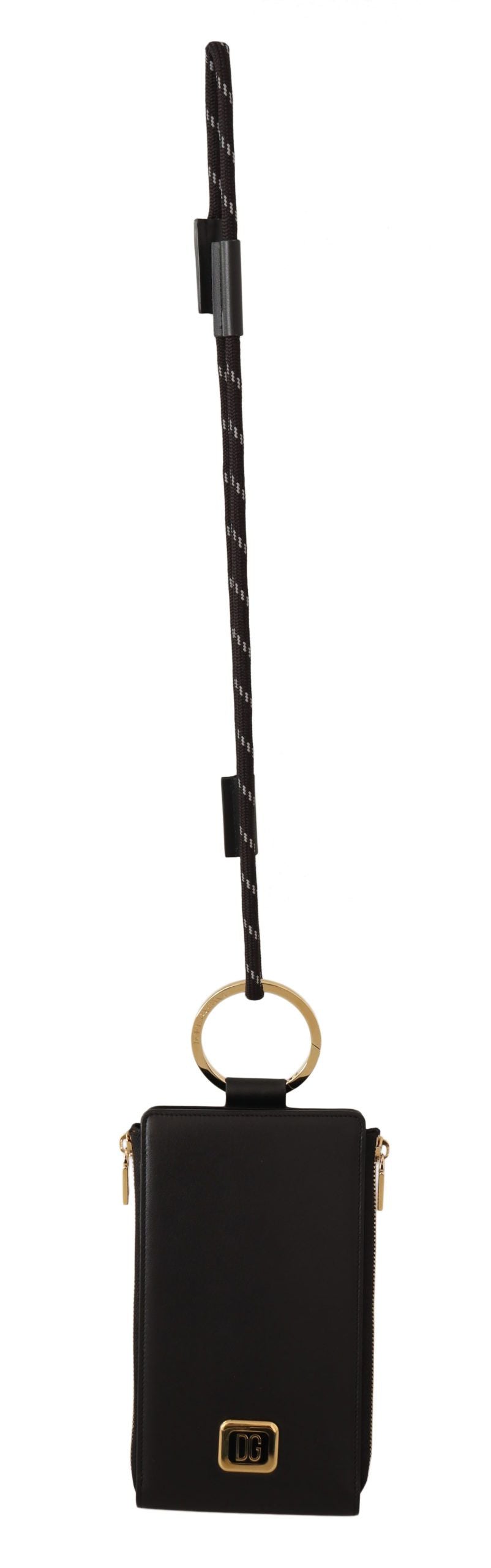 Dolce & Gabbana 블랙 가죽 로고 플라크 넥 스트랩 카드 동전 지갑