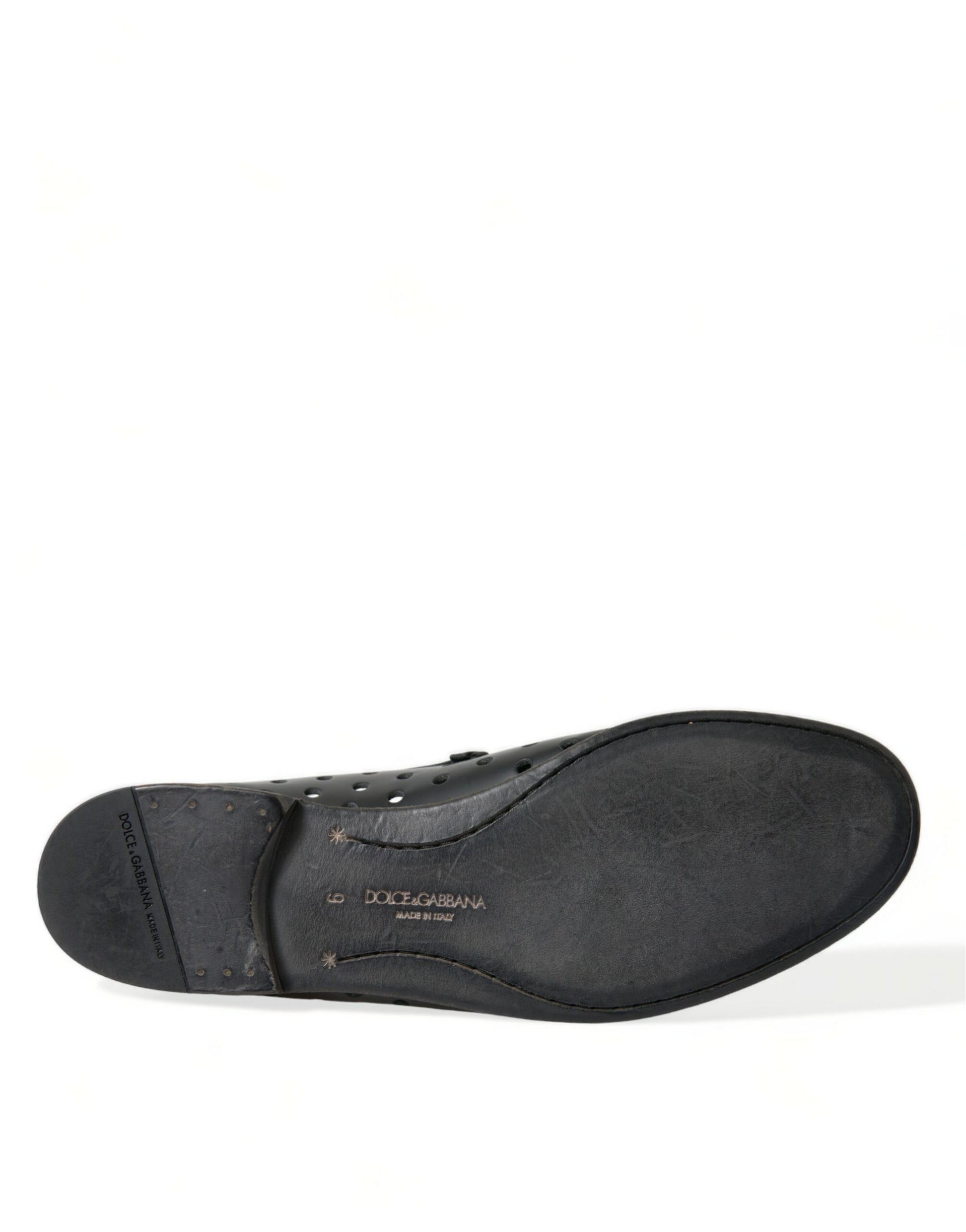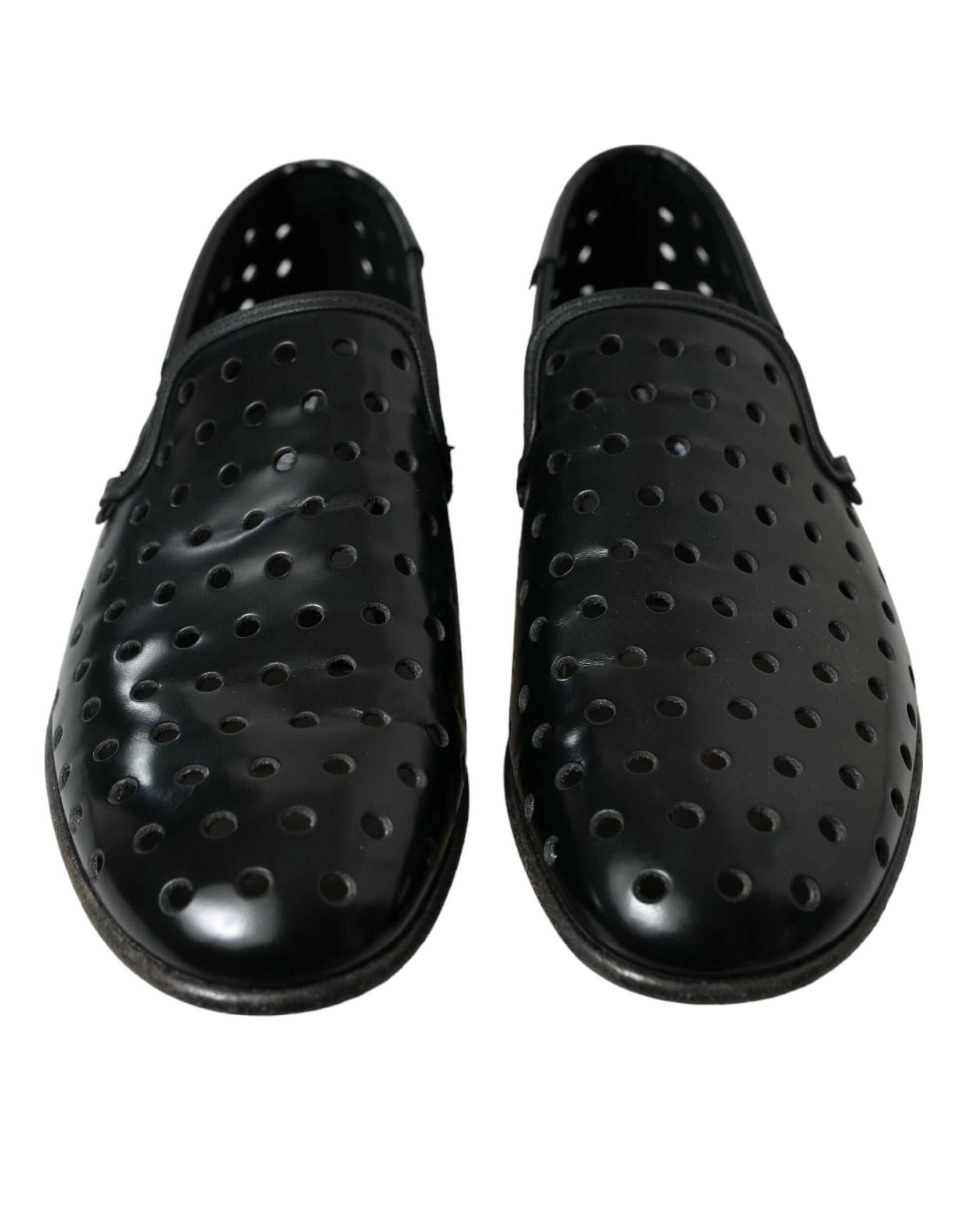 Dolce & Gabbana Black Leather Perforated Loafers Shoes