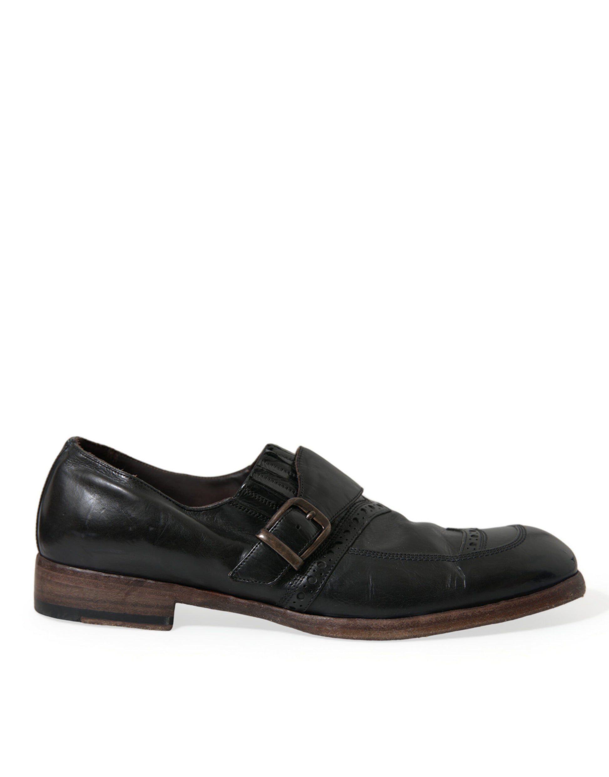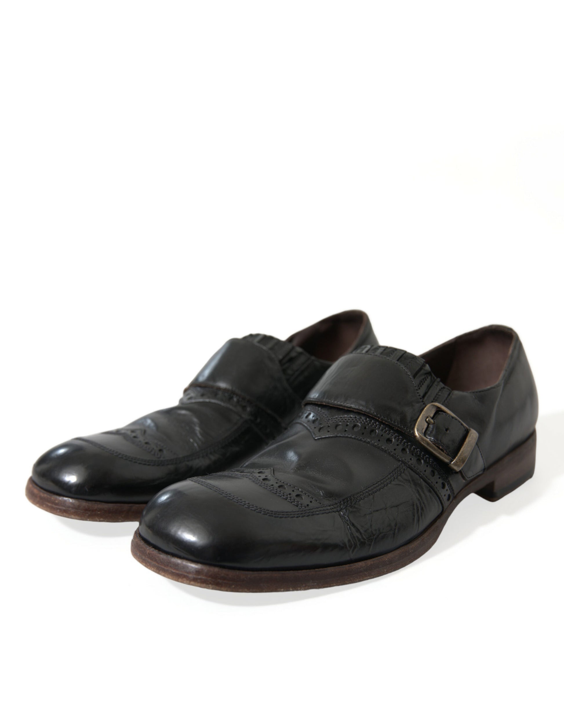 Dolce & Gabbana Black Leather Strap Mocassin Dress Shoes