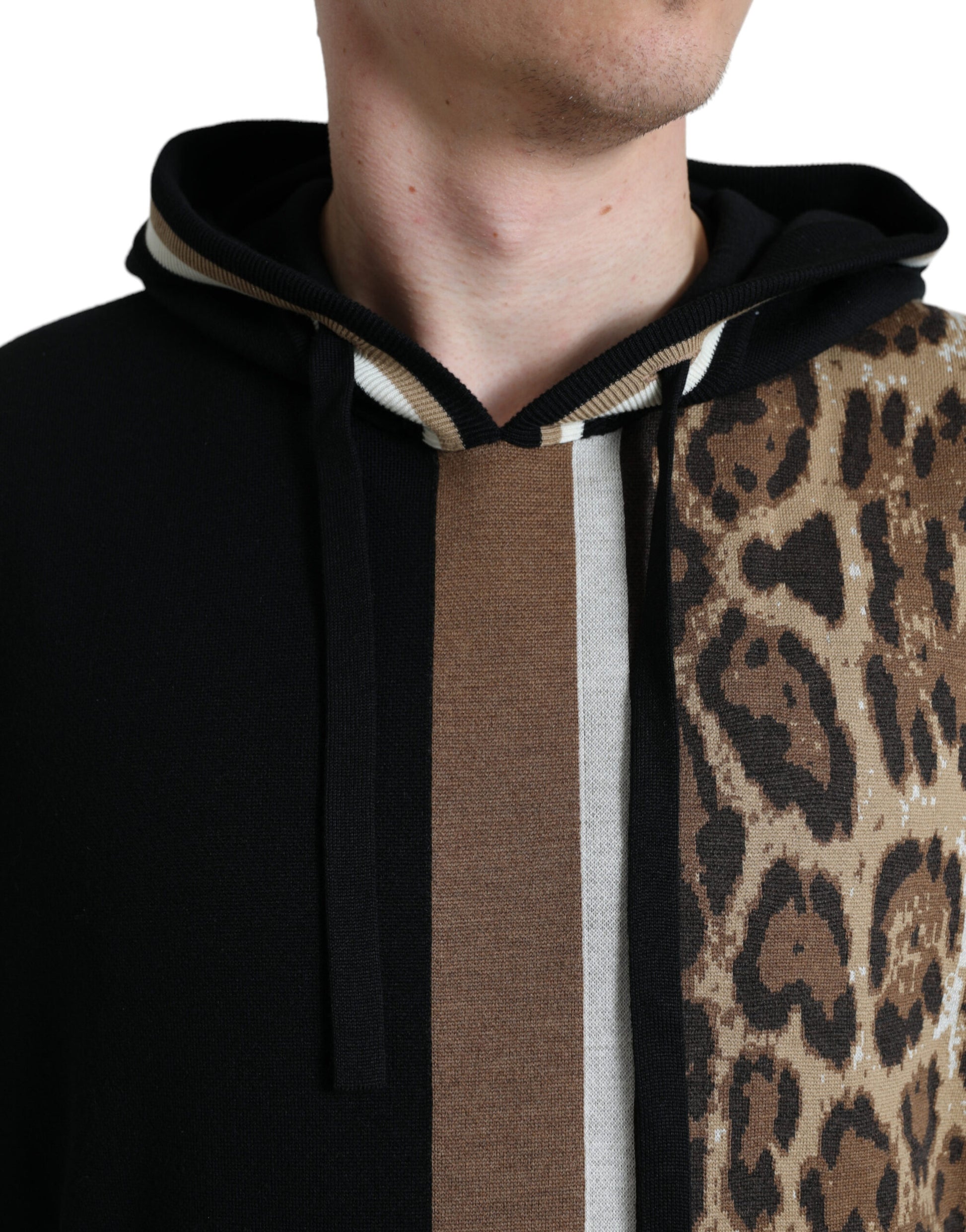 Dolce & Gabbana Black Leopard Hooded Sweatshirt Sweater
