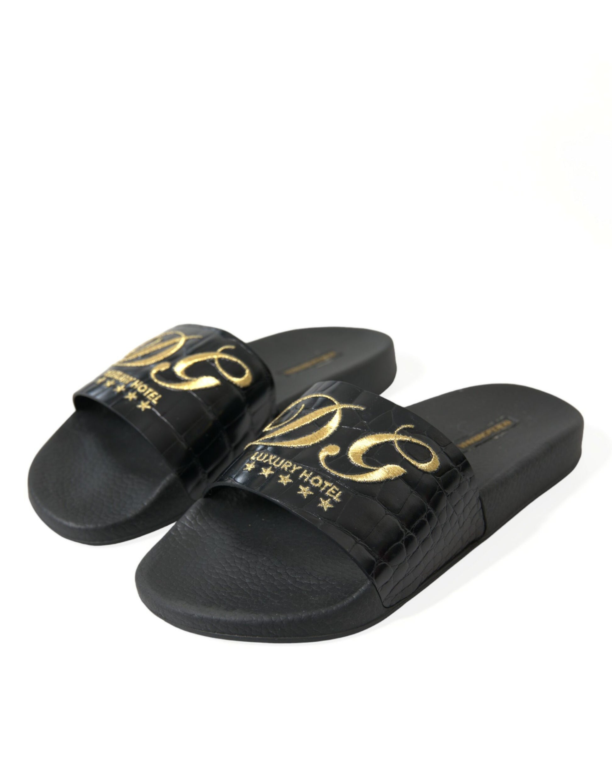 Dolce & Gabbana Black Luxury Hotel Beachwear Sandals Shoes