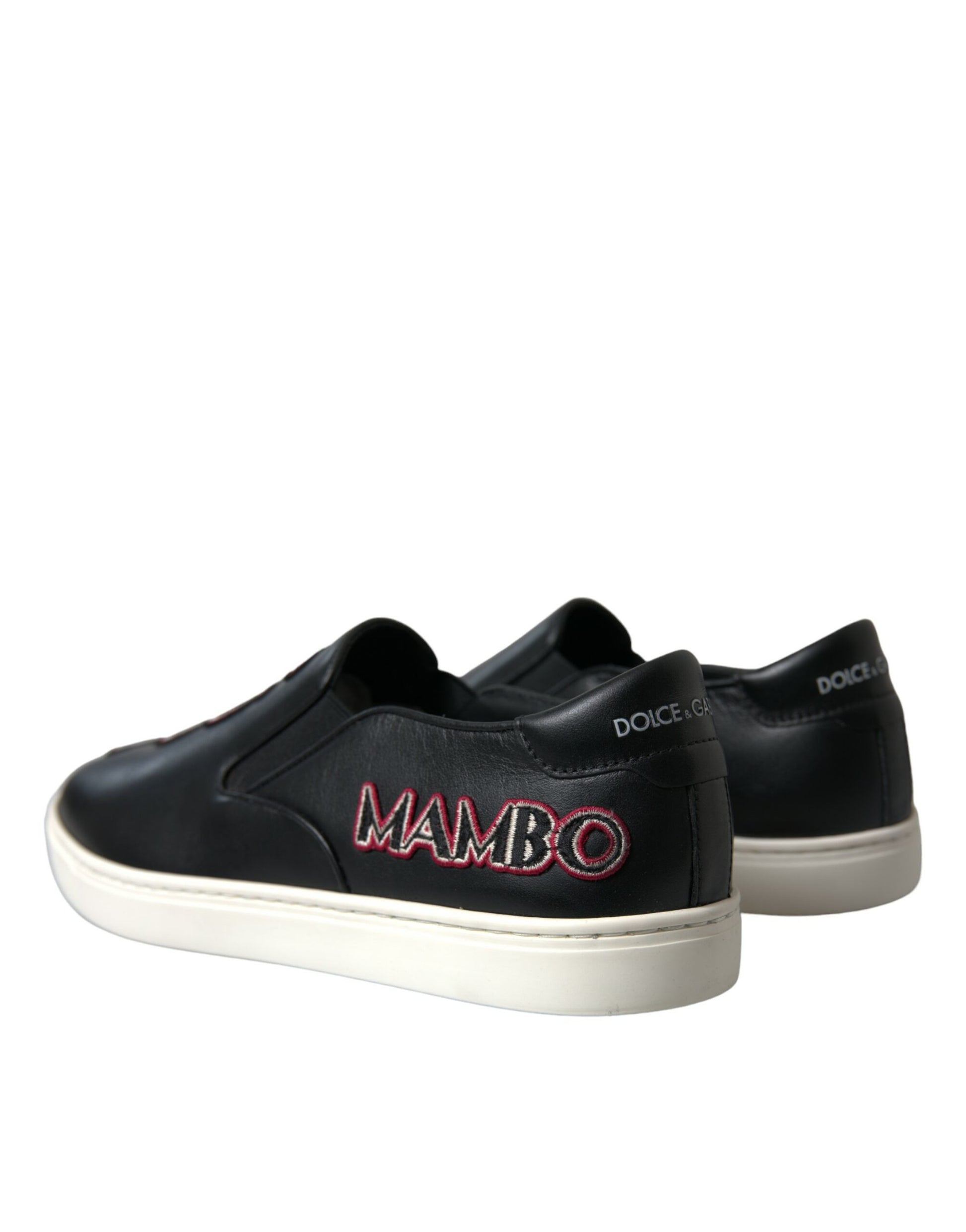 Dolce & Gabbana Black Patch Embellished Slip On Men Sneakers Shoes