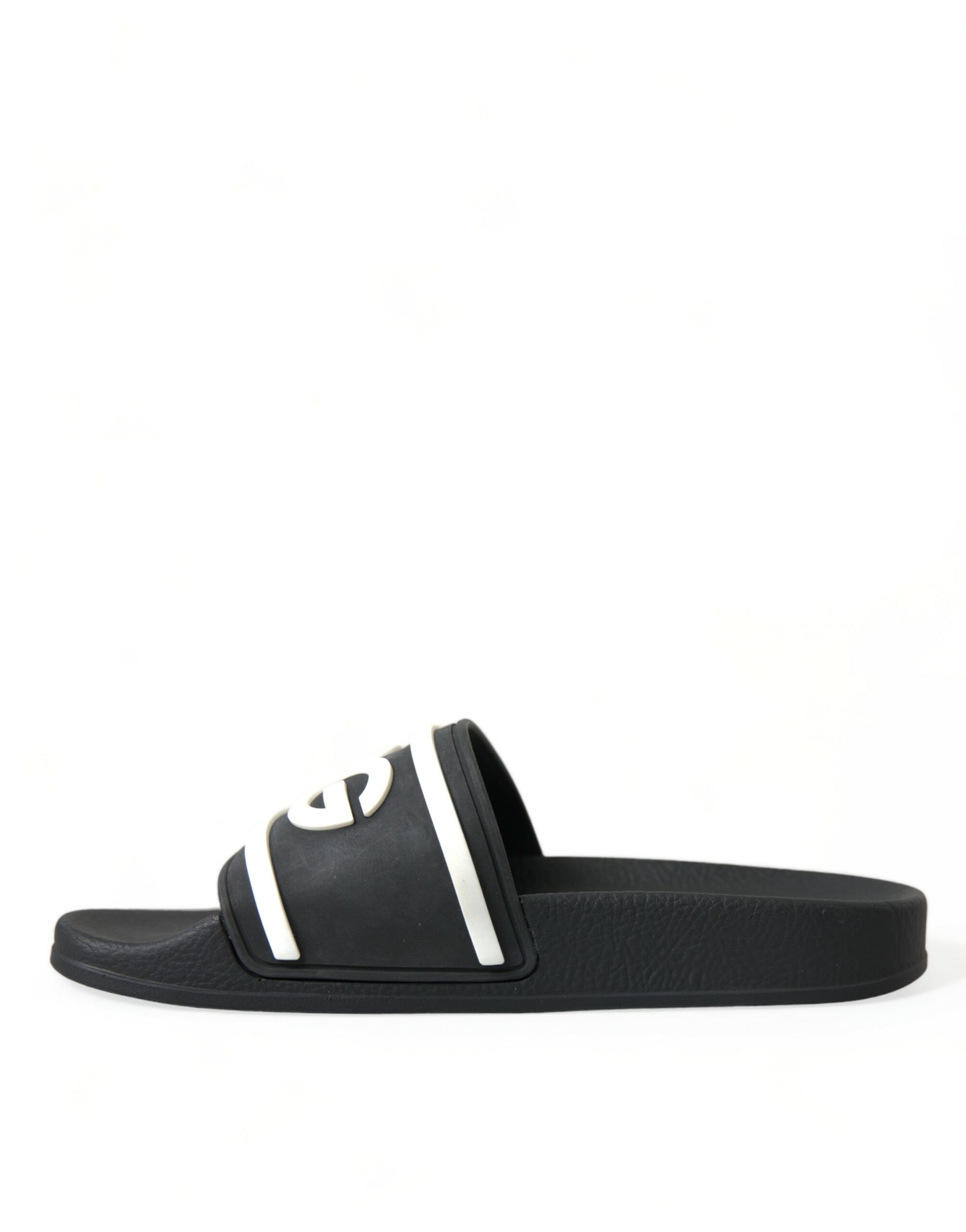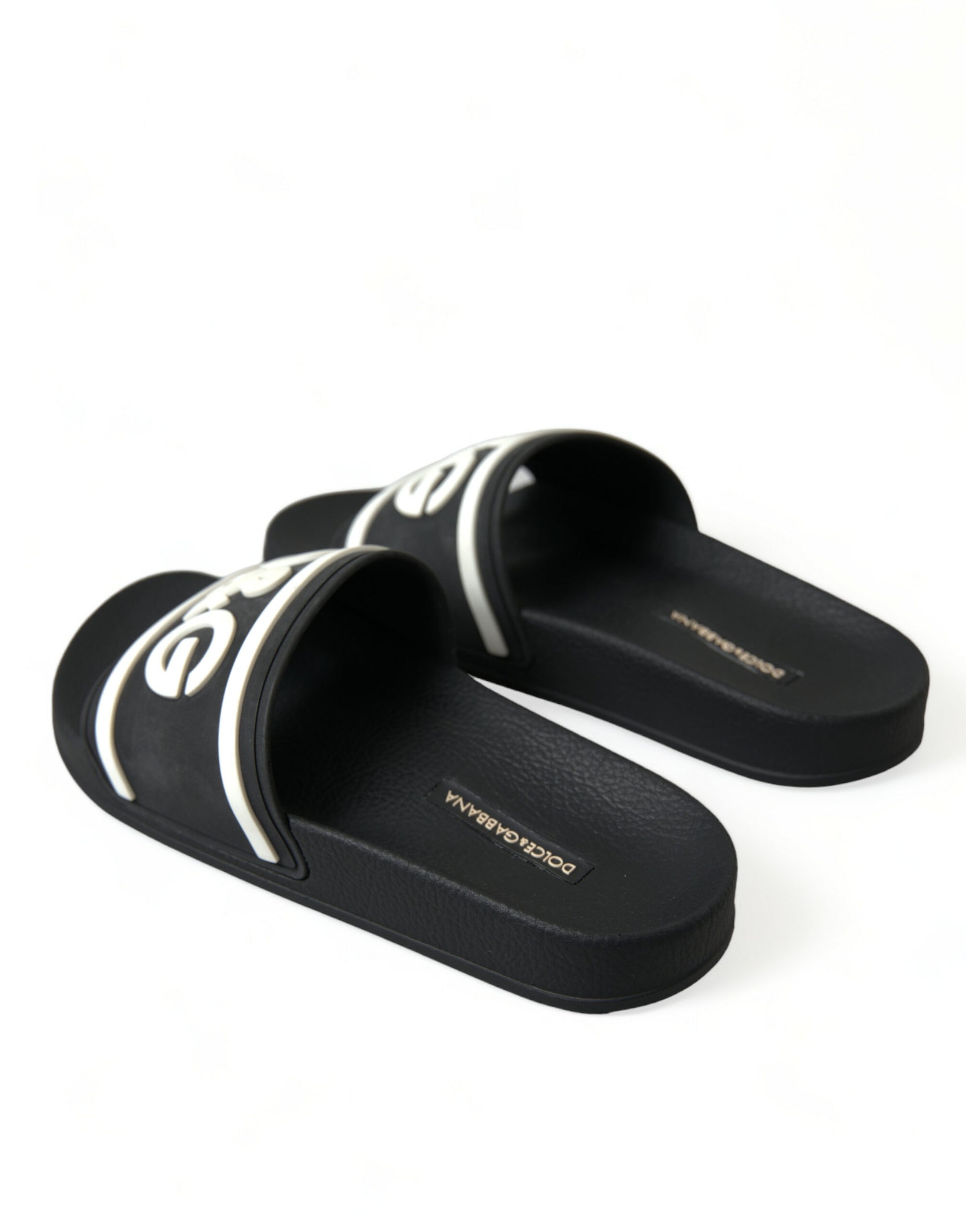 Dolce & Gabbana Black Rubber Beachwear Slippers Sandals Shoes