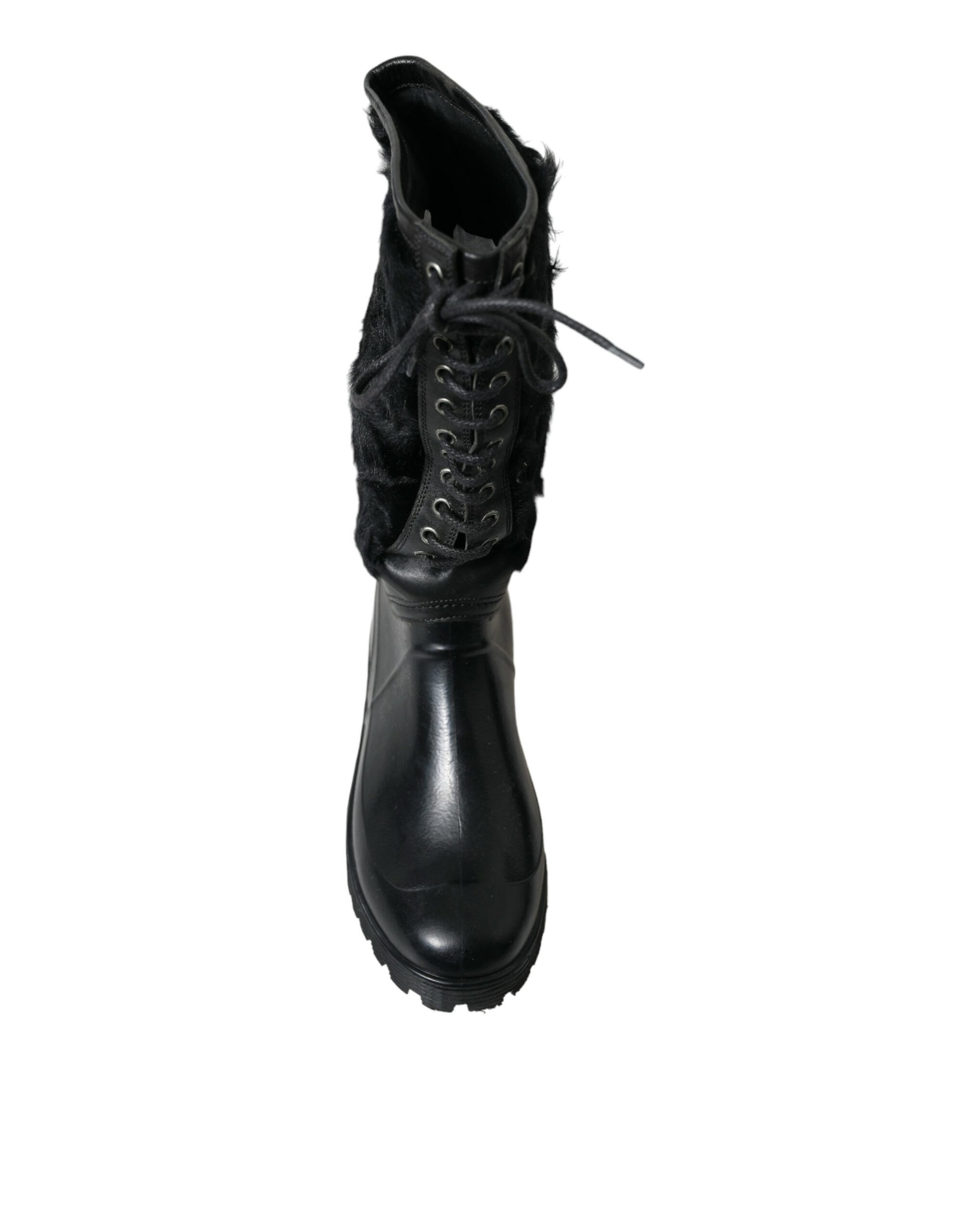 Dolce & Gabbana Black Rubber Lace Up Shearling Rain Boots Shoes