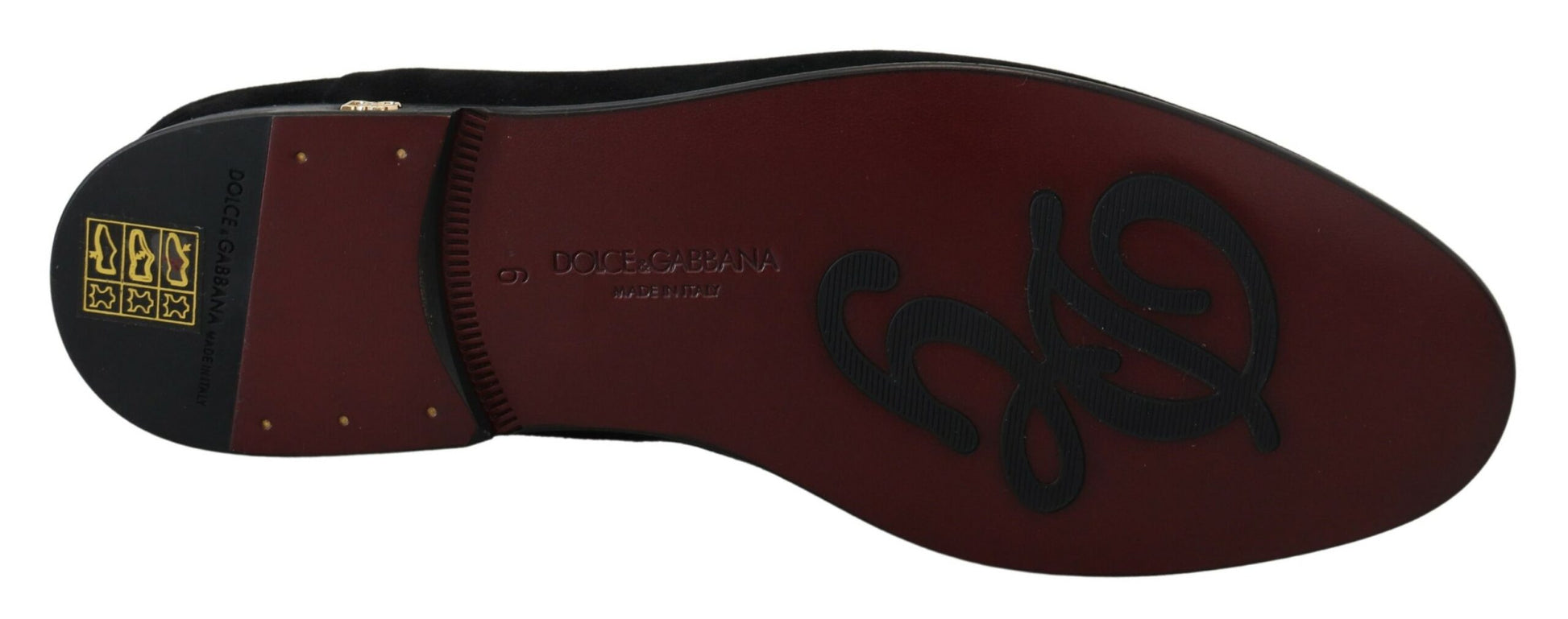 Dolce & Gabbana Black Suede Gold Cross Slip On Loafers Shoes