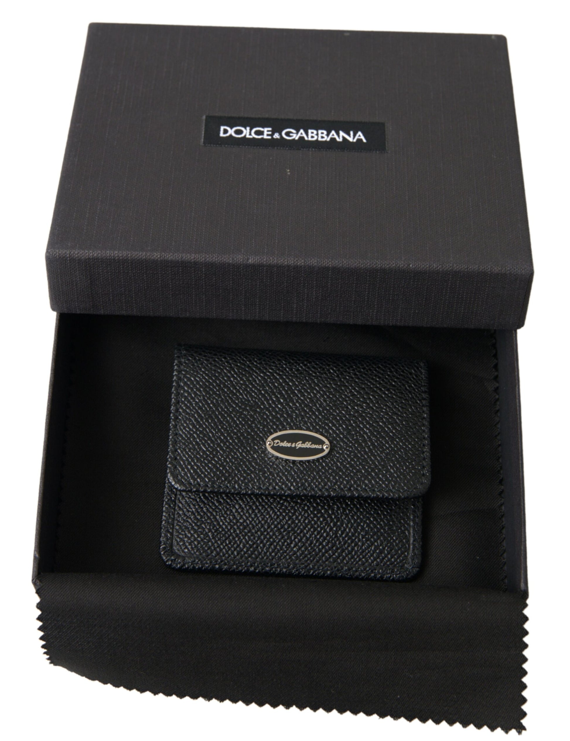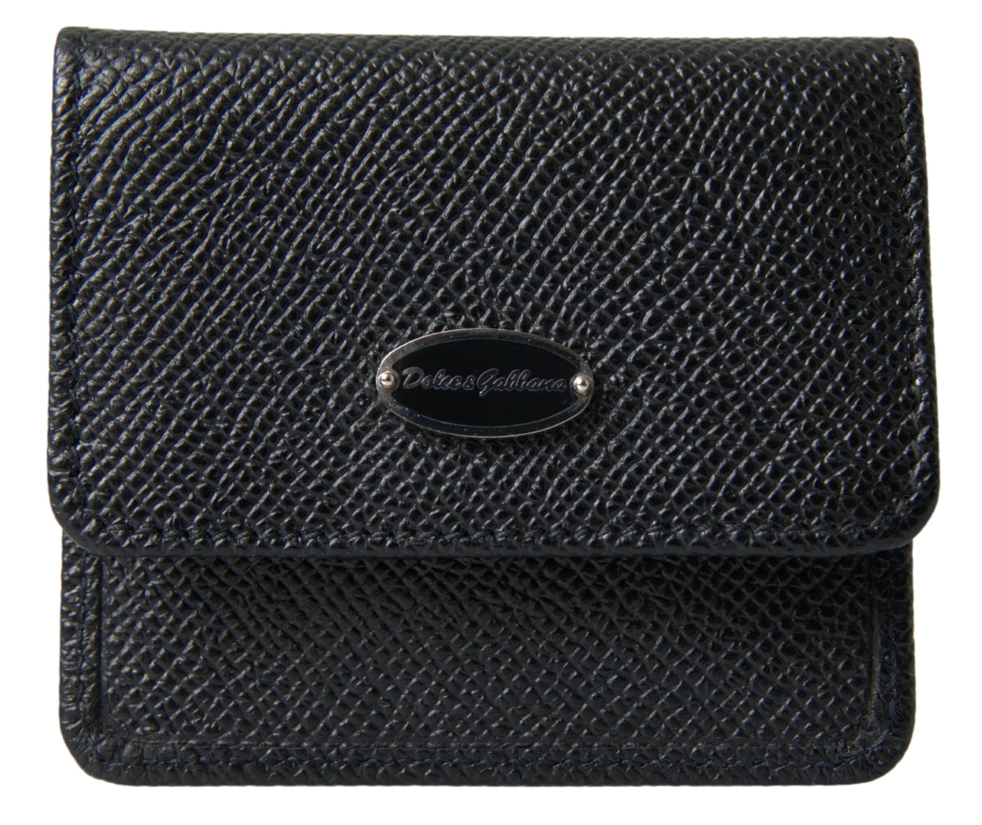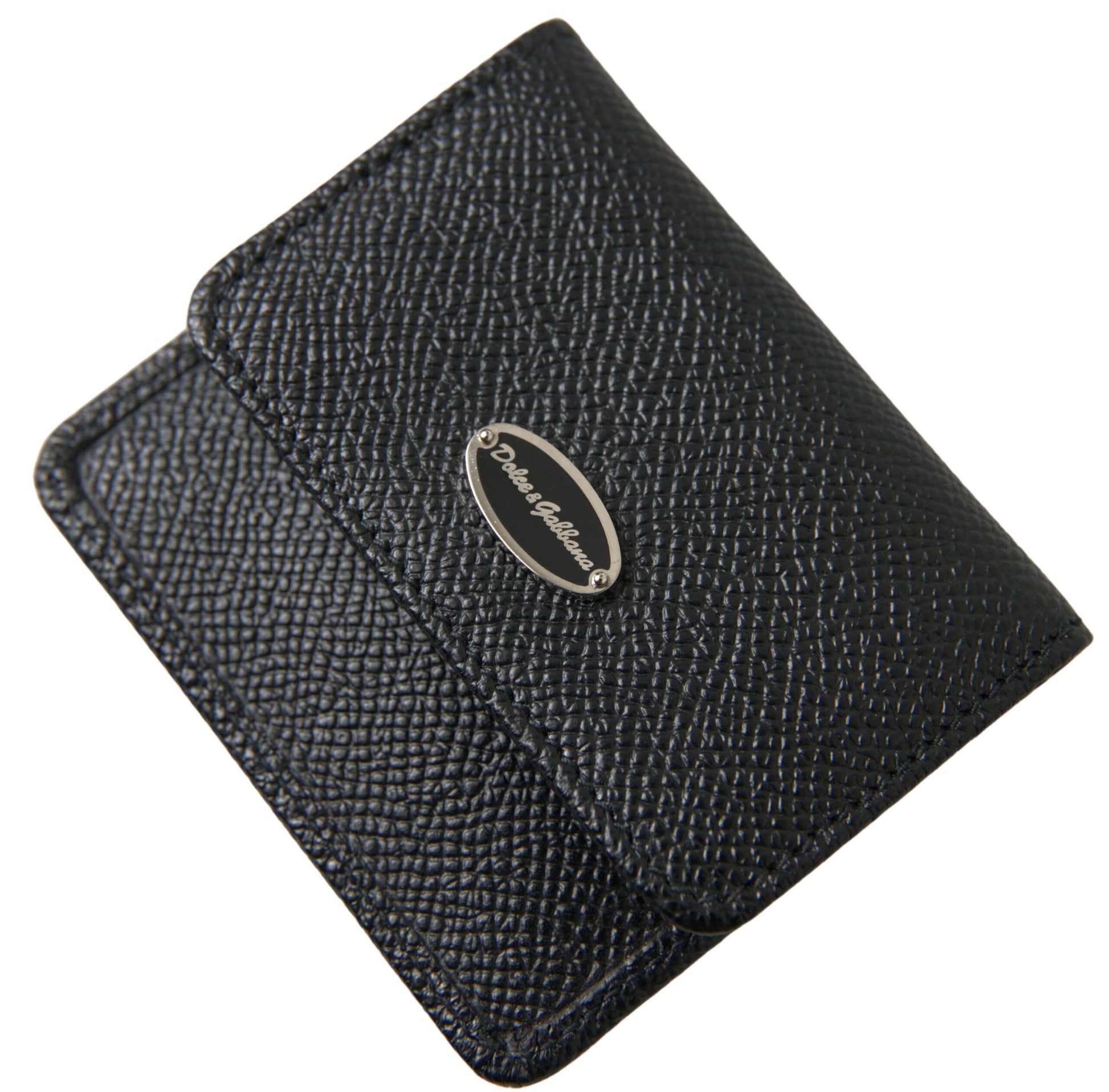 Dolce & Gabbana Black Textured Leather Bifold Logo Coin Purse Wallet