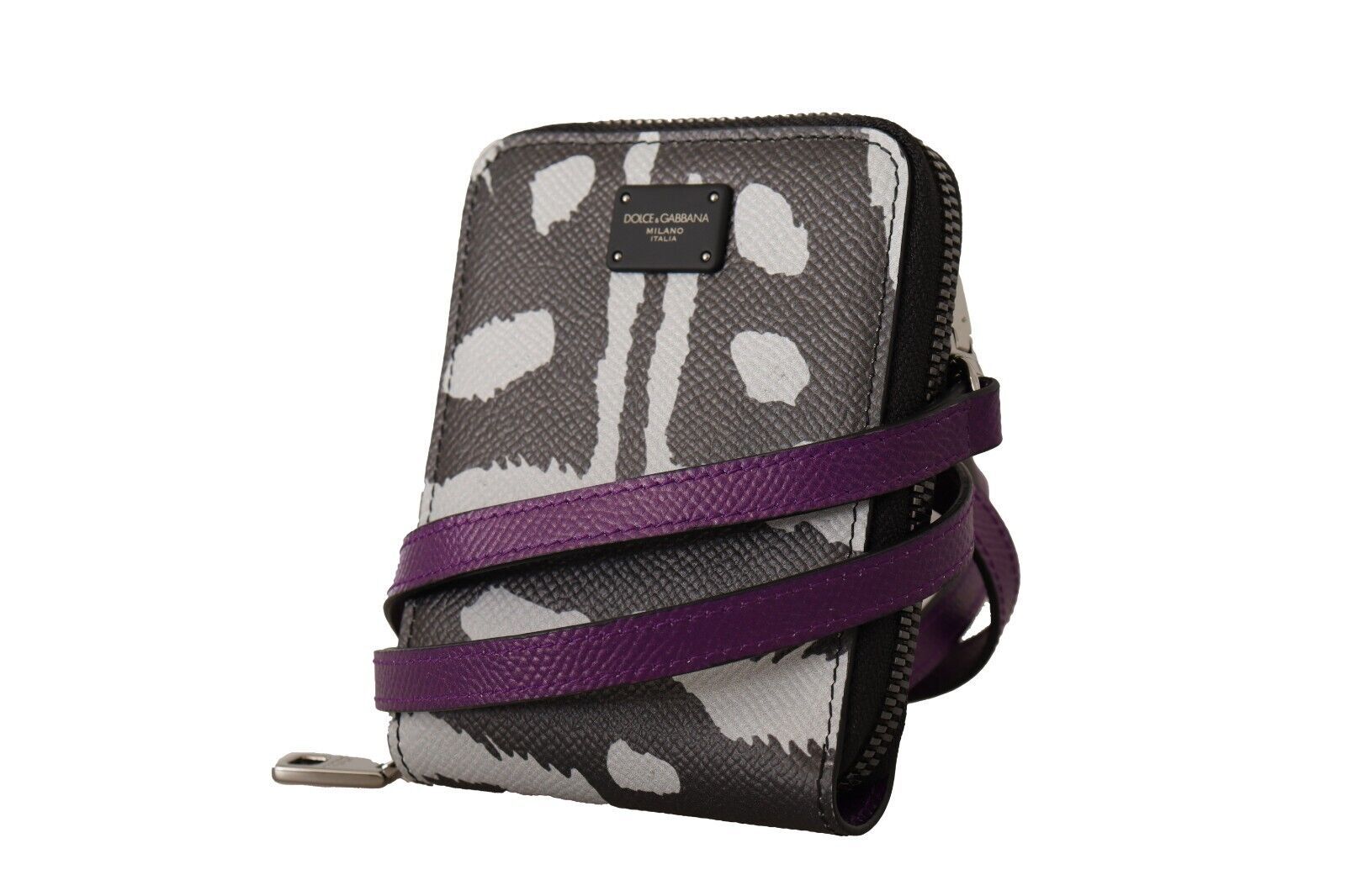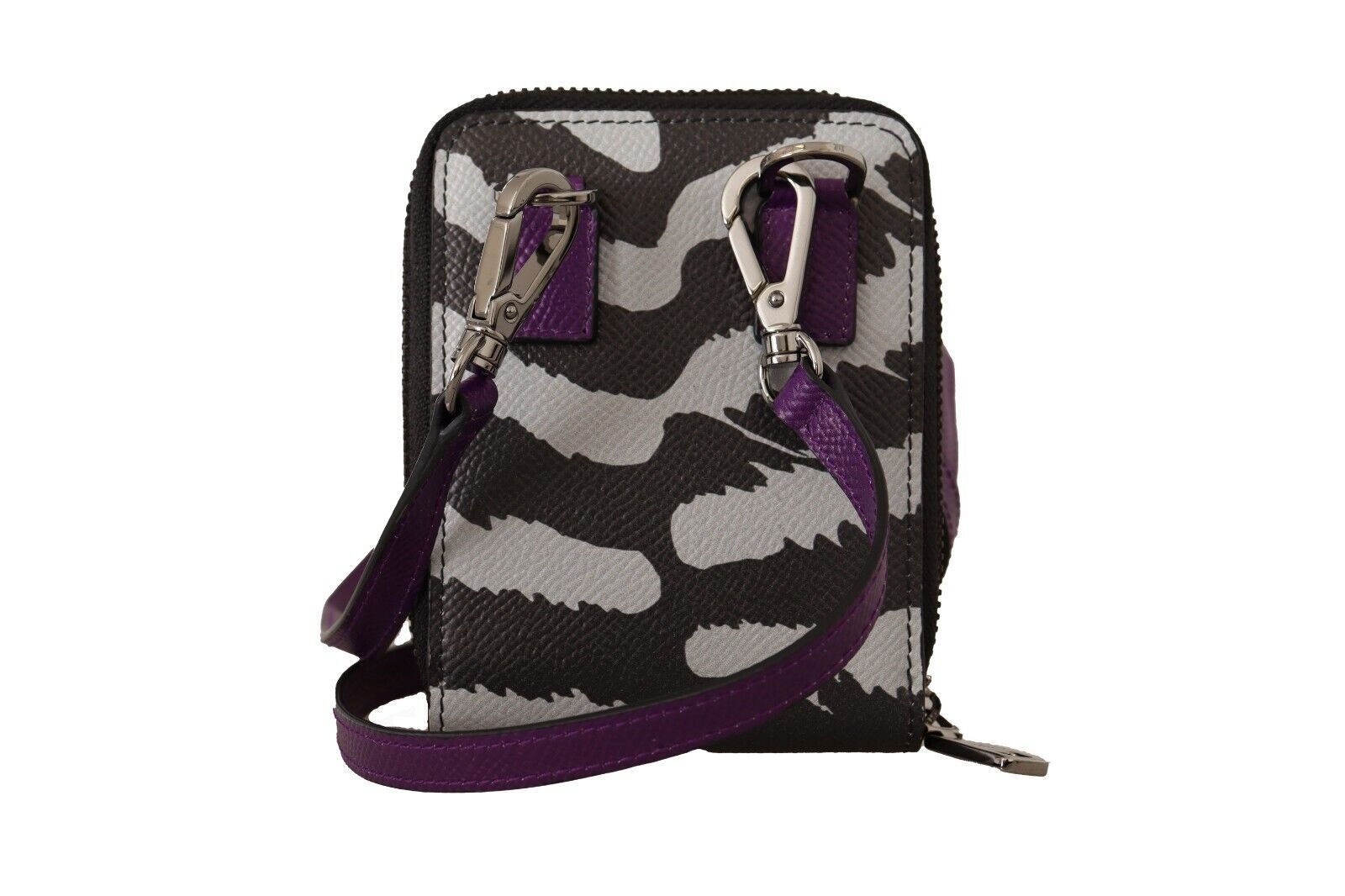 Dolce & Gabbana 블랙 타이거 가죽 미니 바이폴드 슬링 지갑 지갑