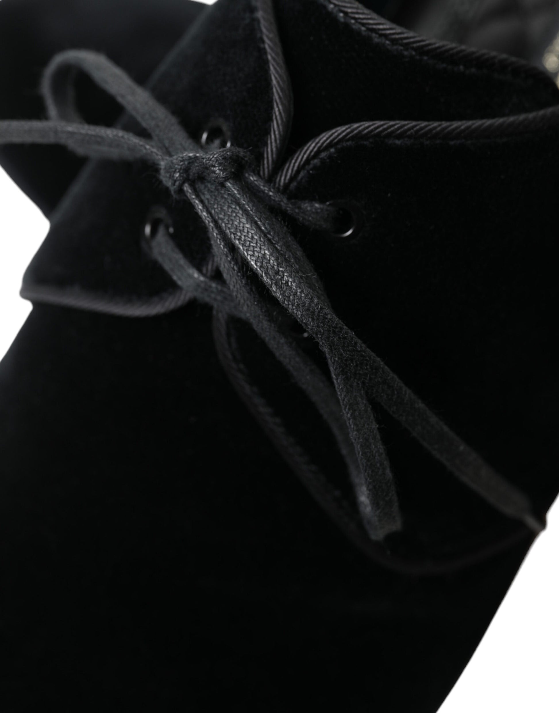 Dolce & Gabbana Black Velvet Lace Up Formal Derby Dress Shoes