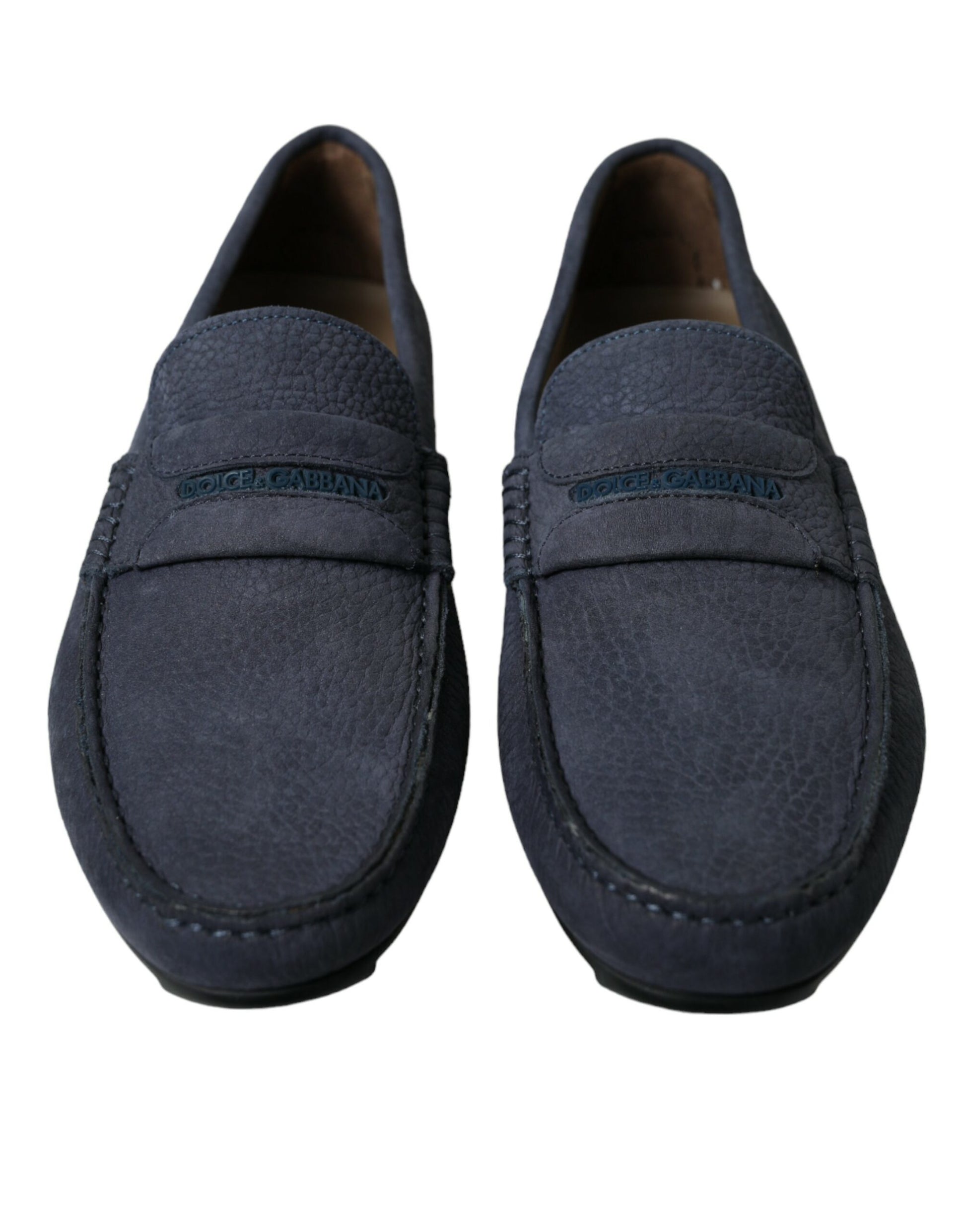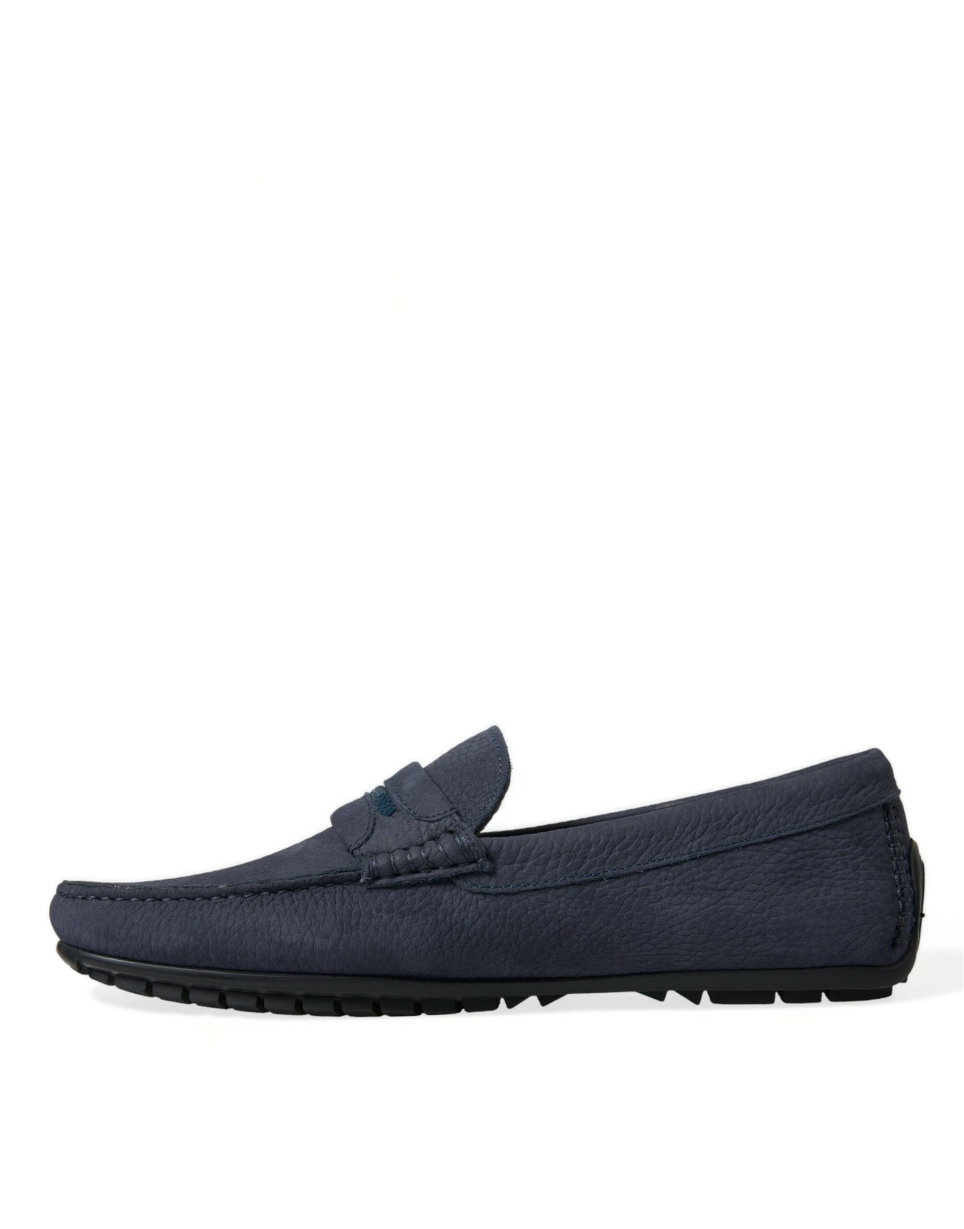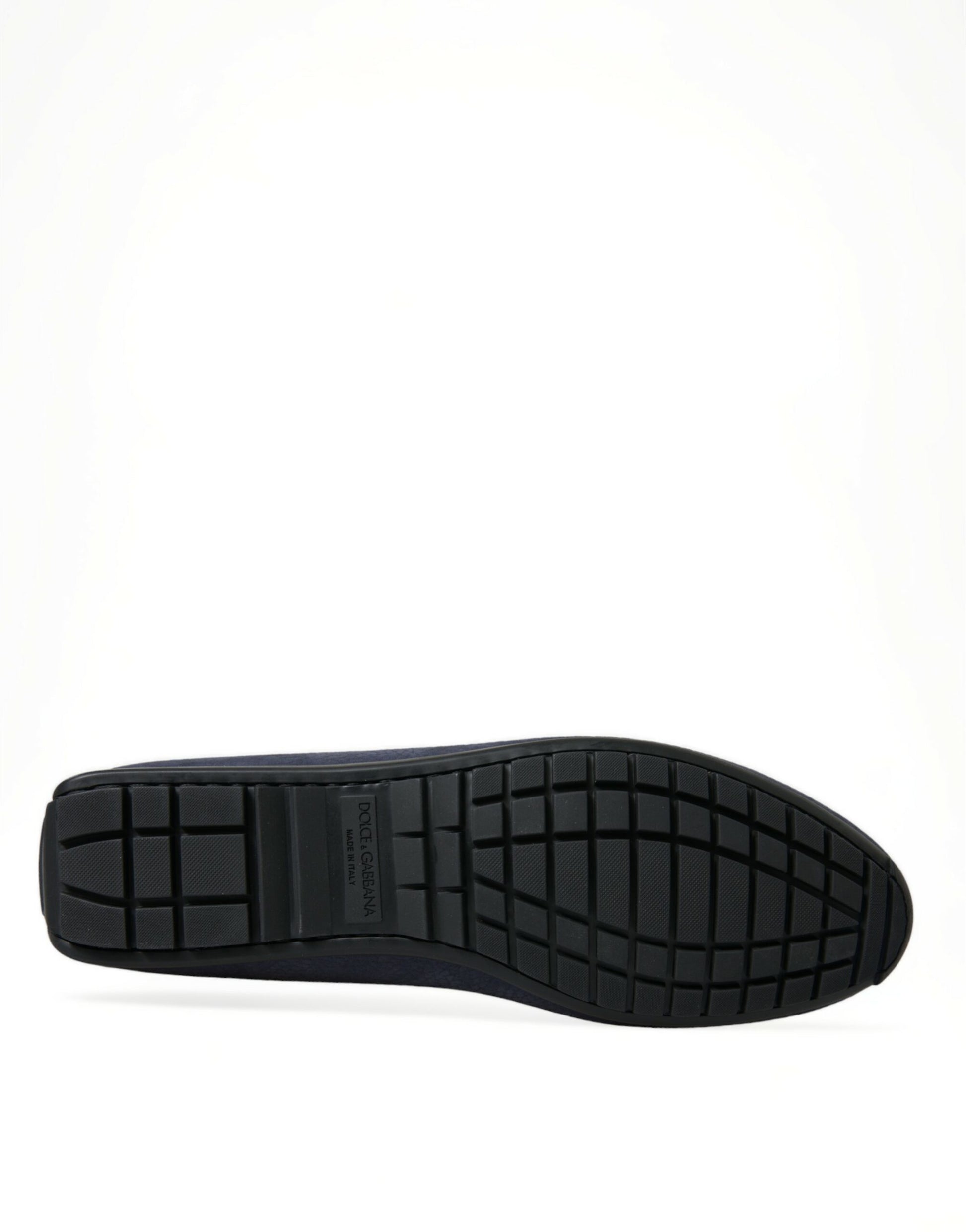 Dolce & Gabbana Blue Calfskin Leather Slip On Moccasin Shoes