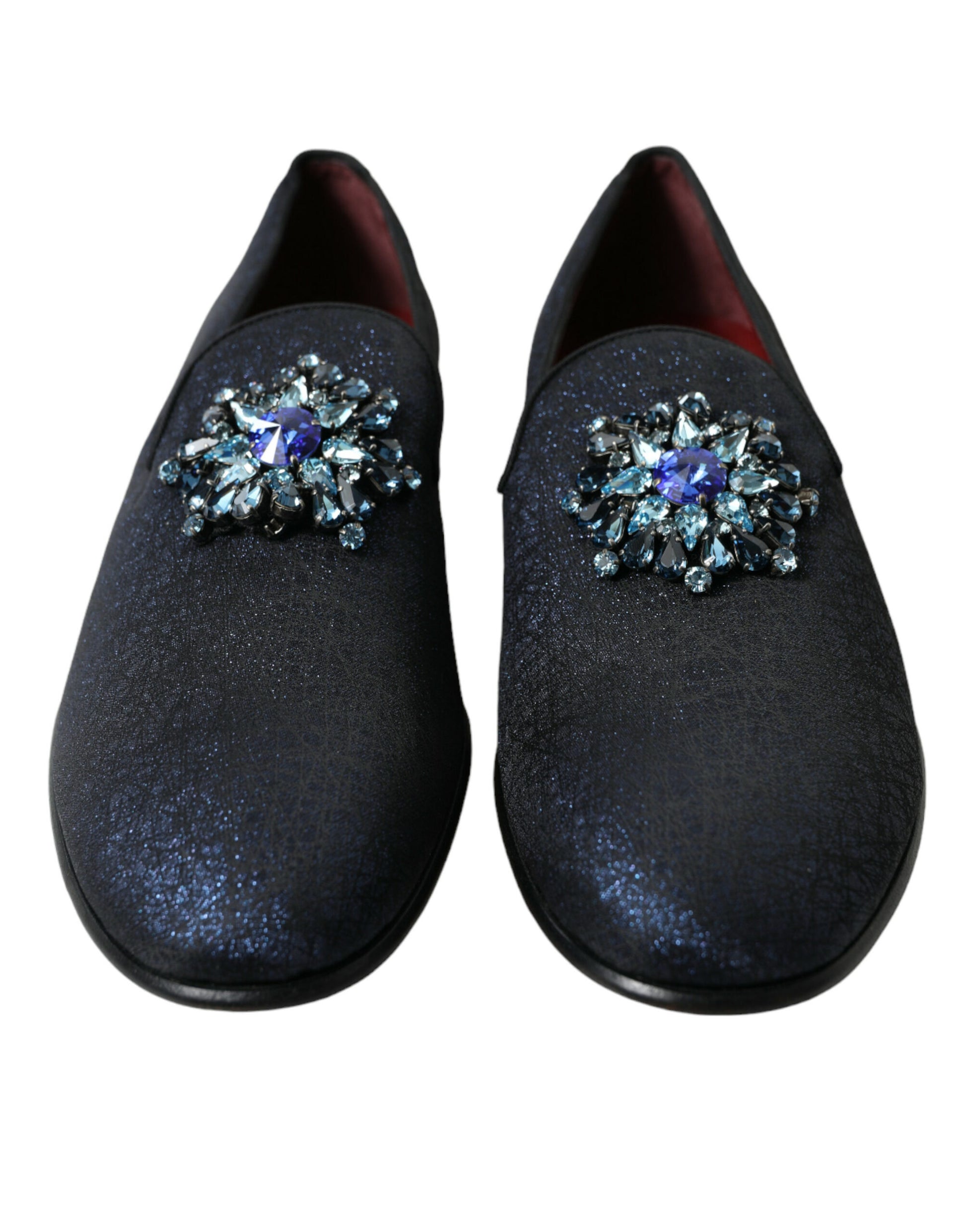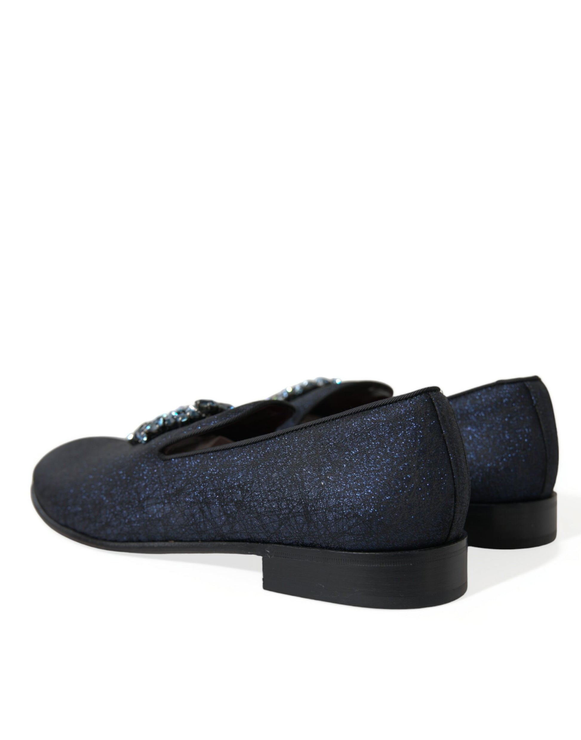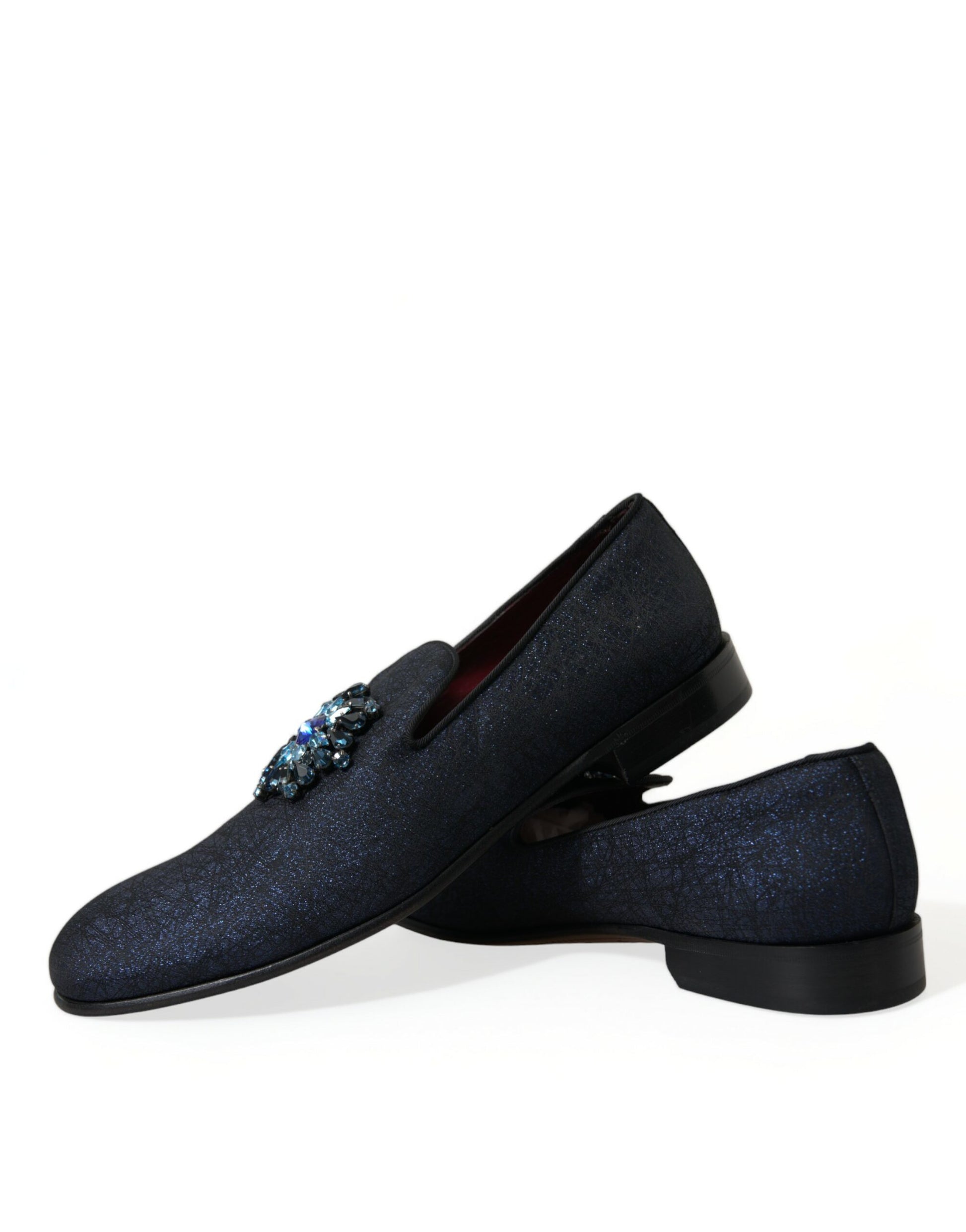 Dolce & Gabbana Blue Jacquard Lurex Crystal Loafer Dress Shoes