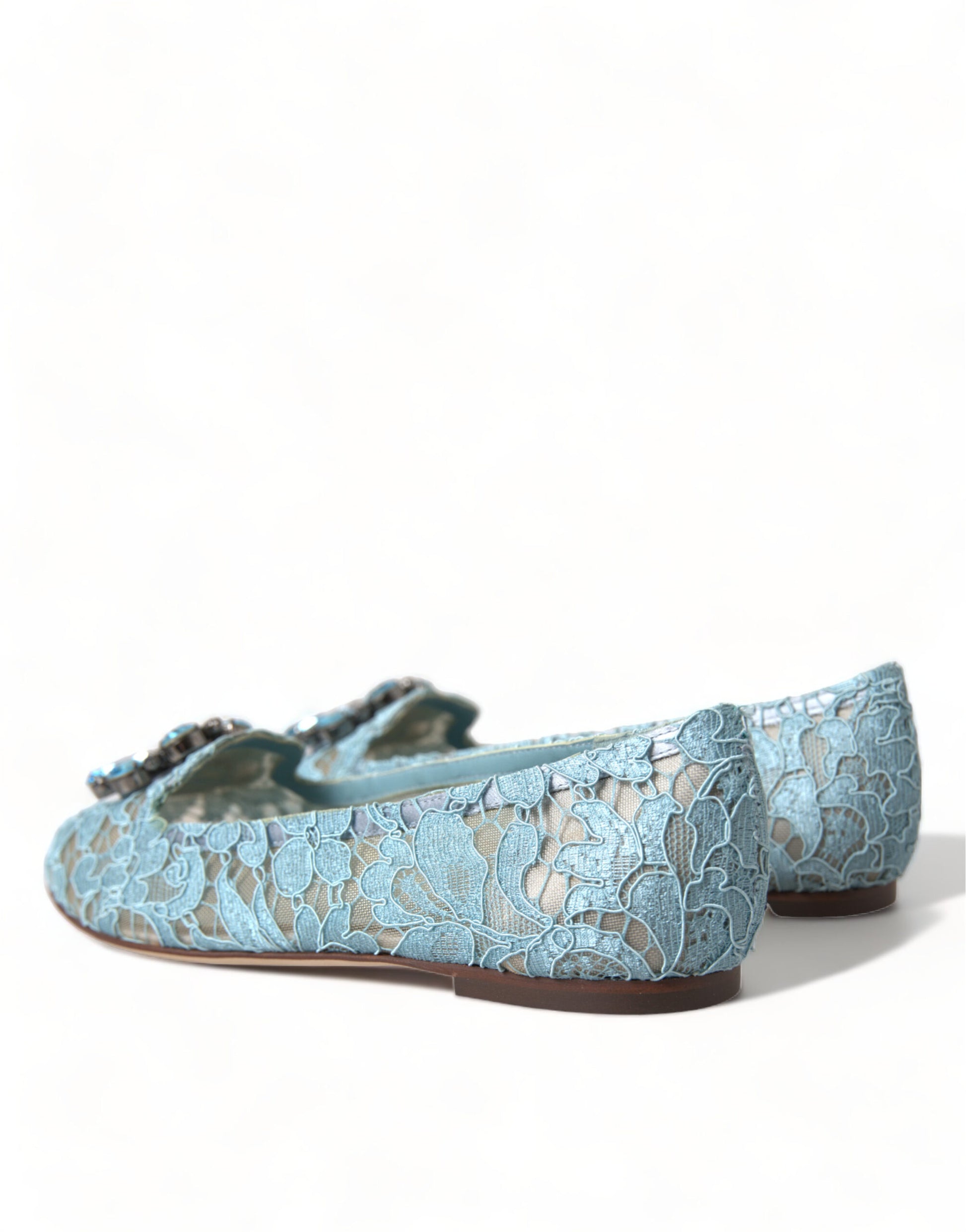 Dolce & Gabbana Blue Vally Taormina Lace Crystals Flats Shoes