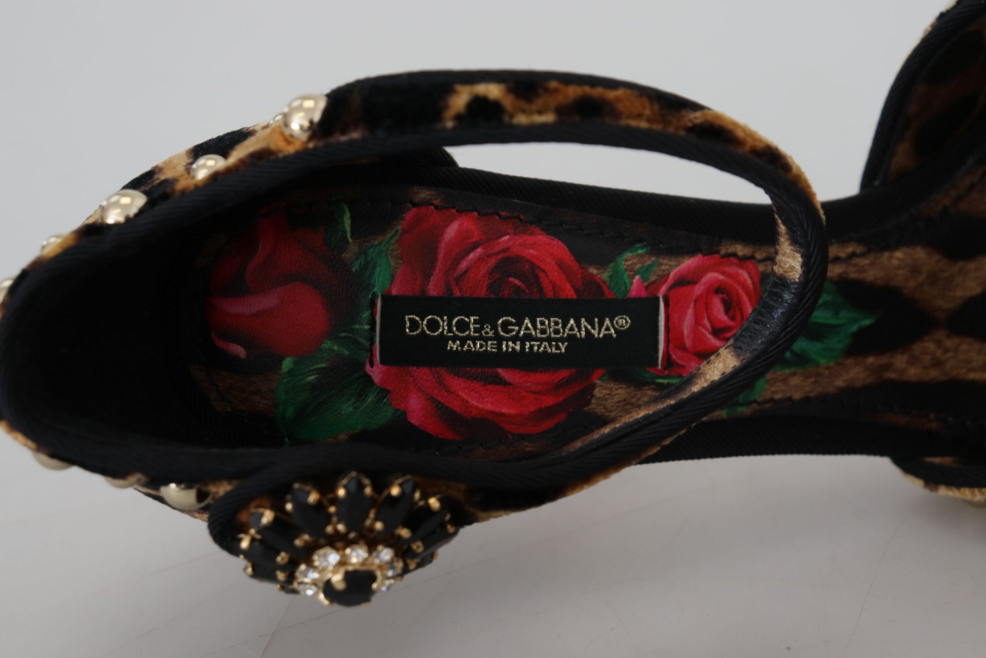 Dolce & Gabbana Brown Embellished Leopard Print Heels Shoes