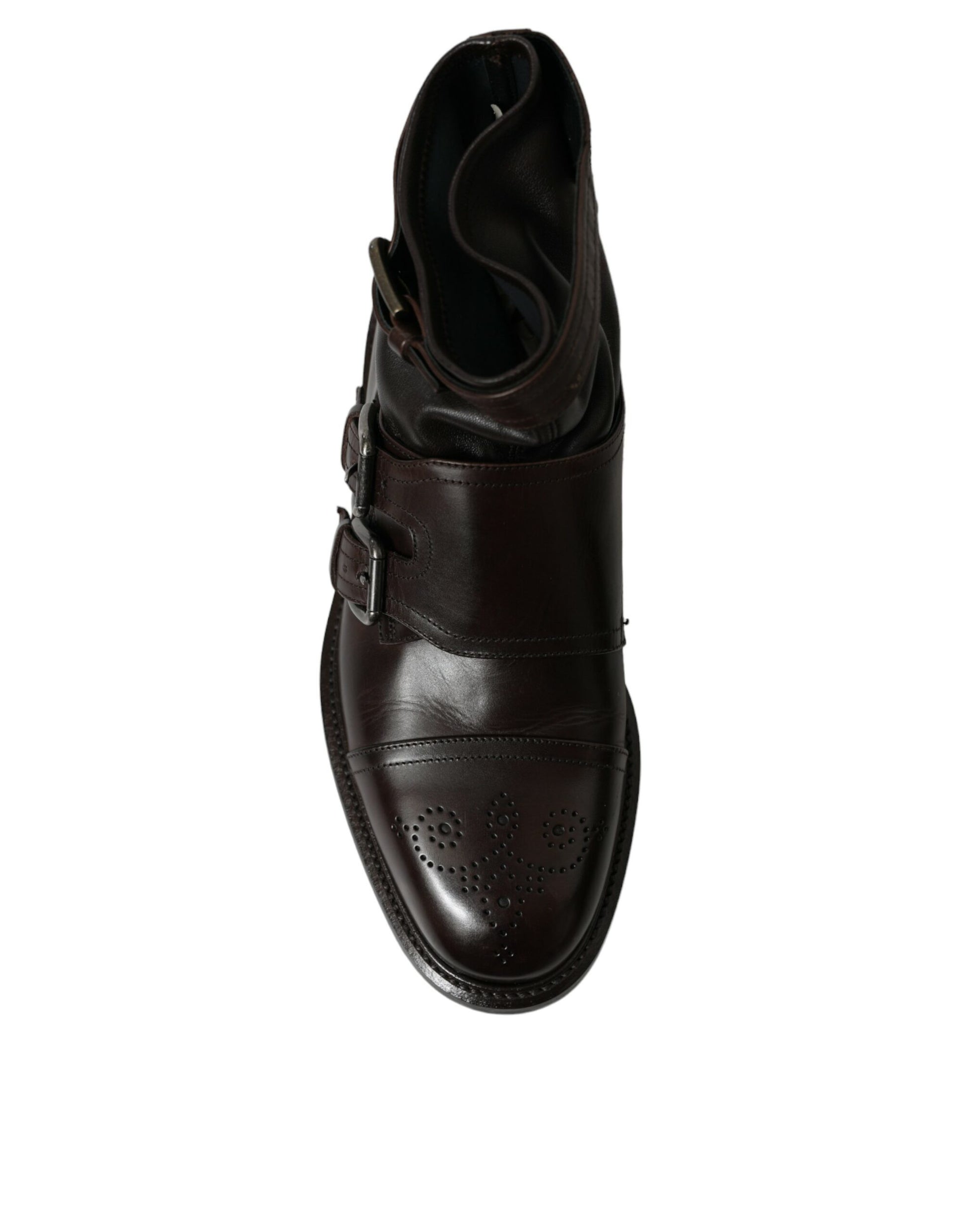Dolce & Gabbana Brown Leather Straps Ankle Boots Shoes