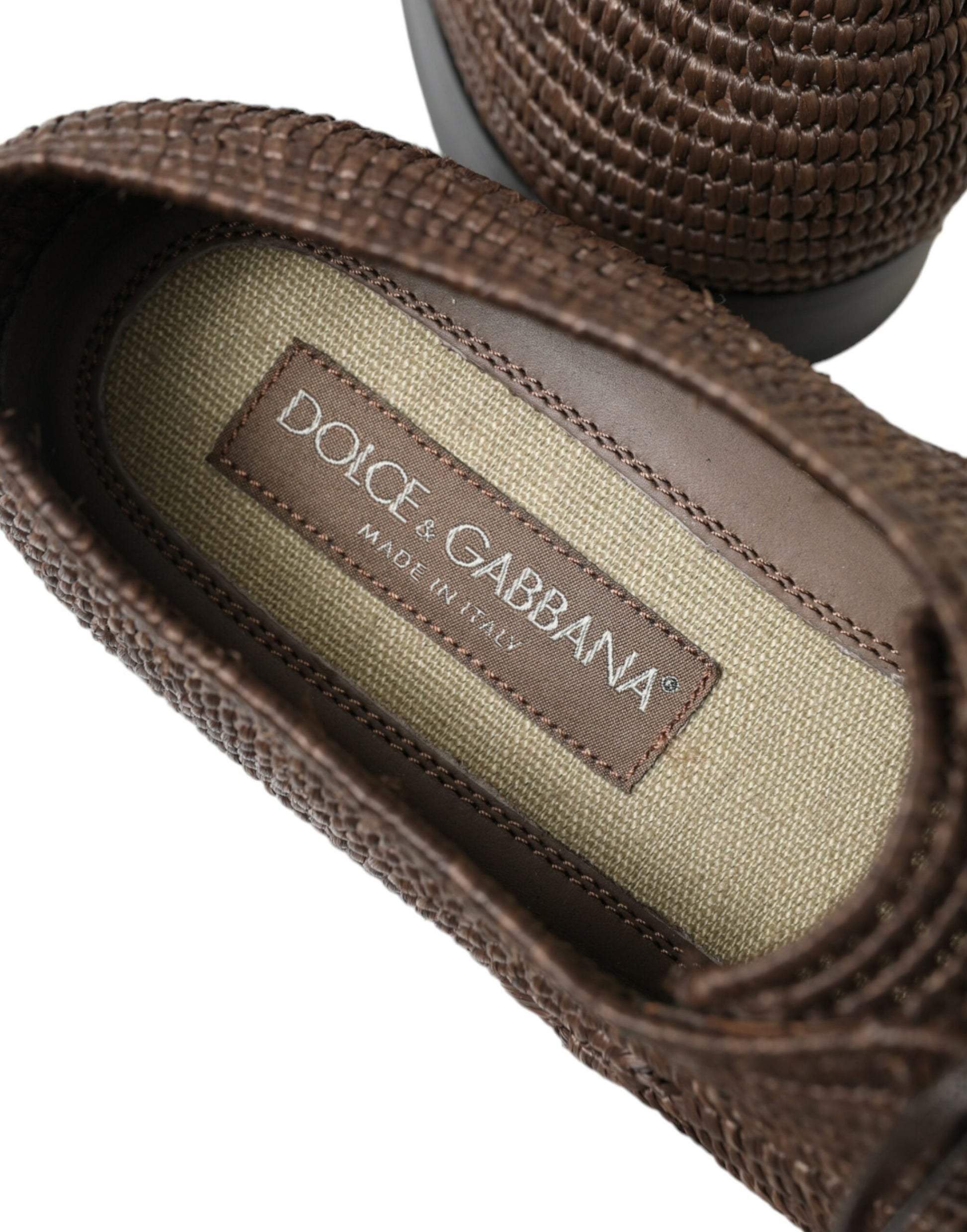 Dolce & Gabbana Brown Raffia Lace Up Derby Dress Shoes