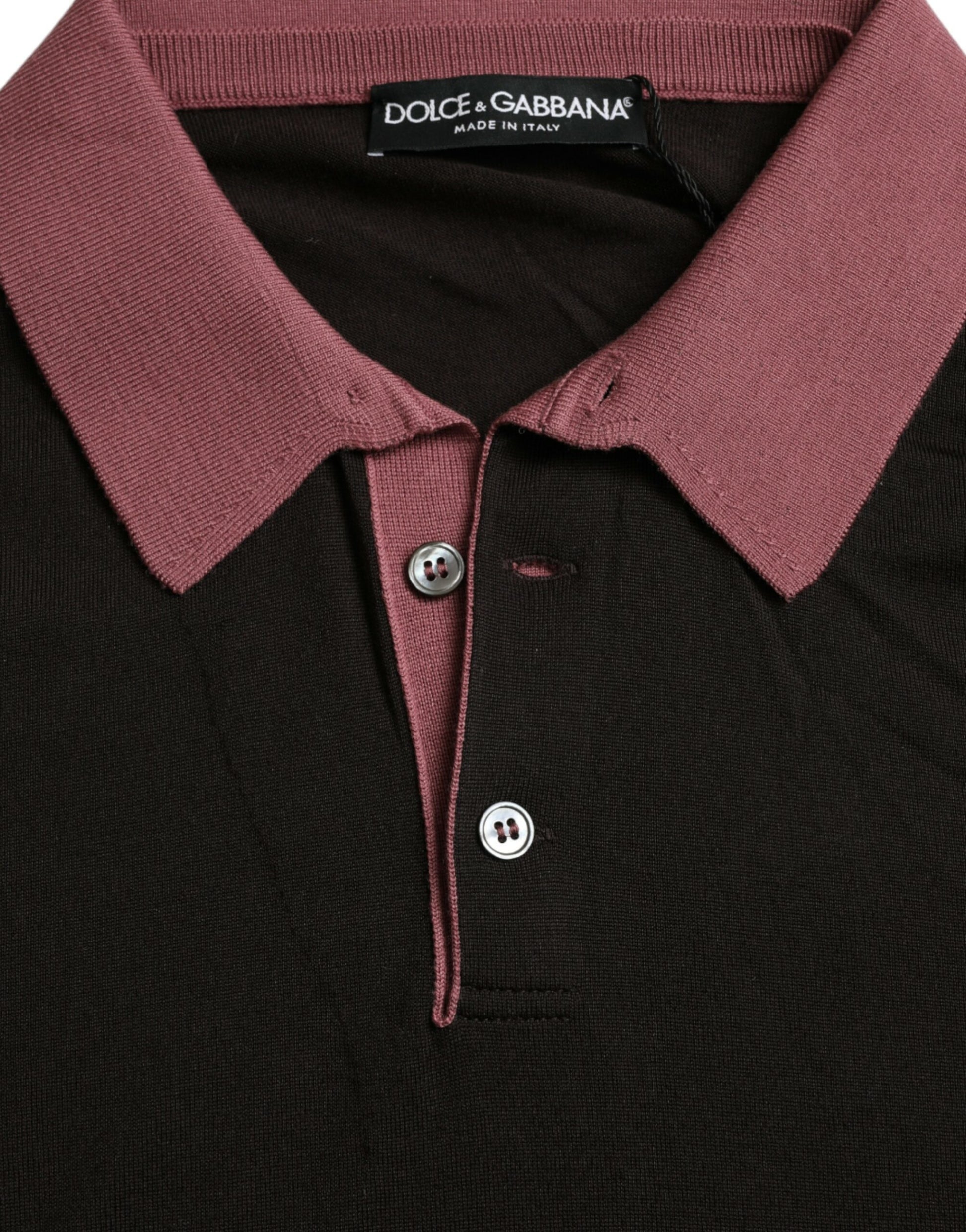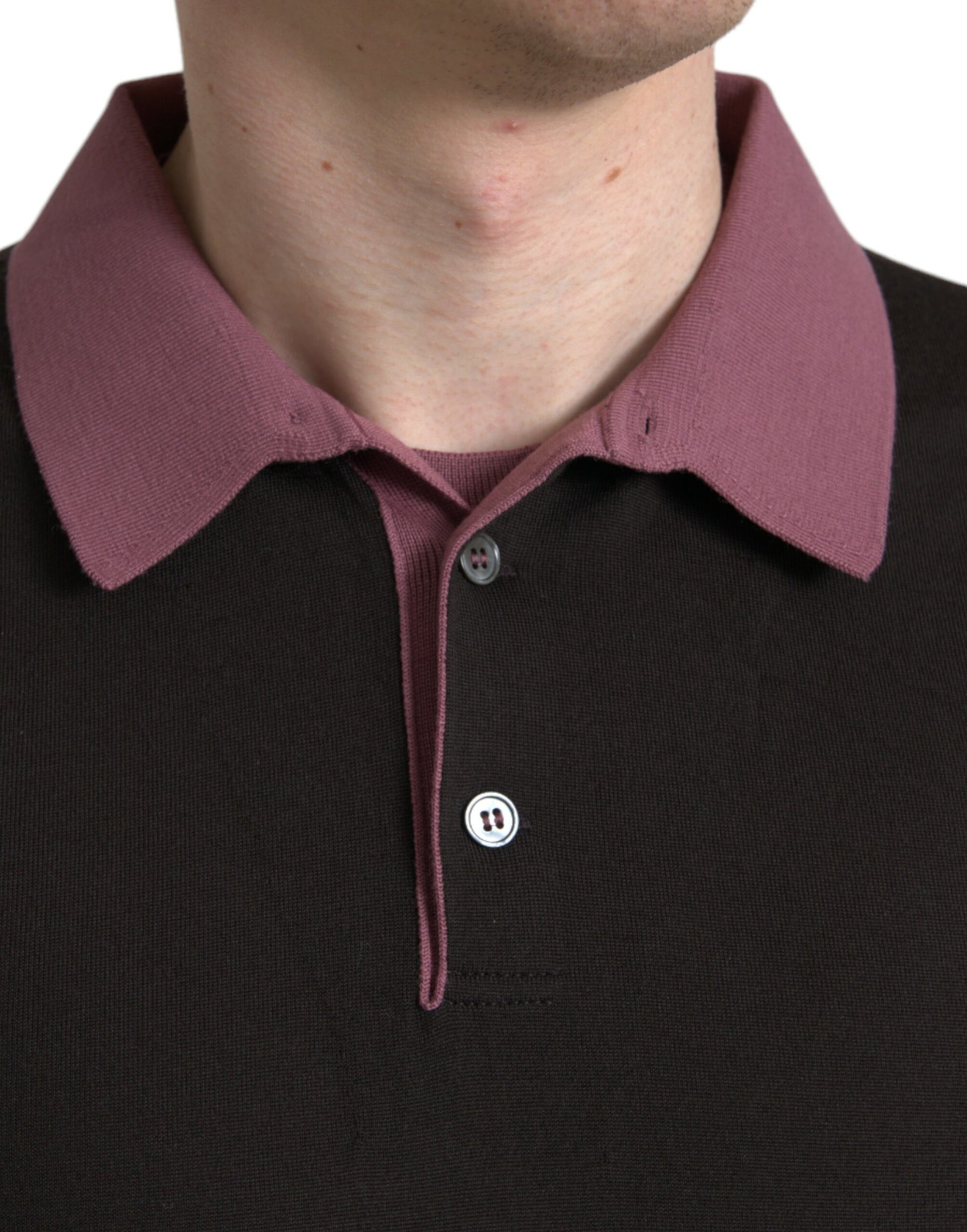 Dolce & Gabbana Brown Virgin Wool Collared Pullover Sweater