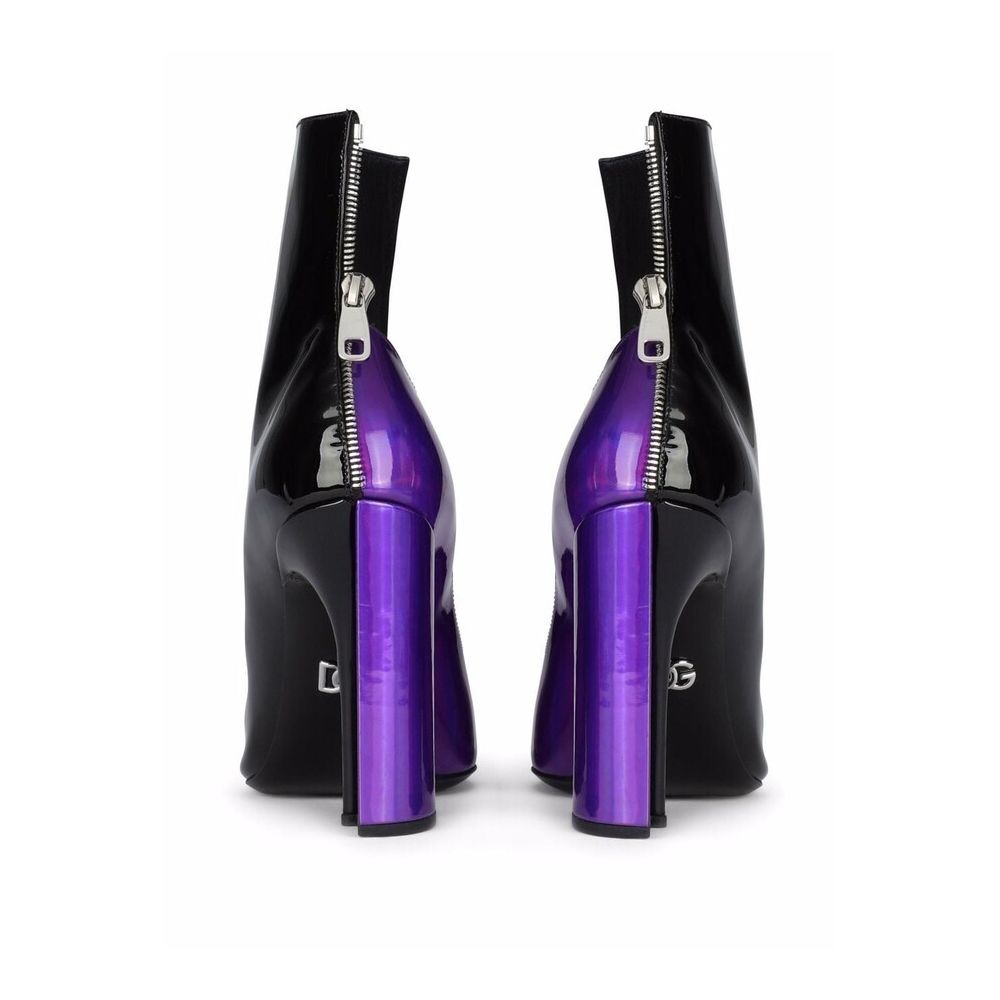 Dolce & Gabbana Chic Patent Leather Ankle Boots with Sky-High Heel