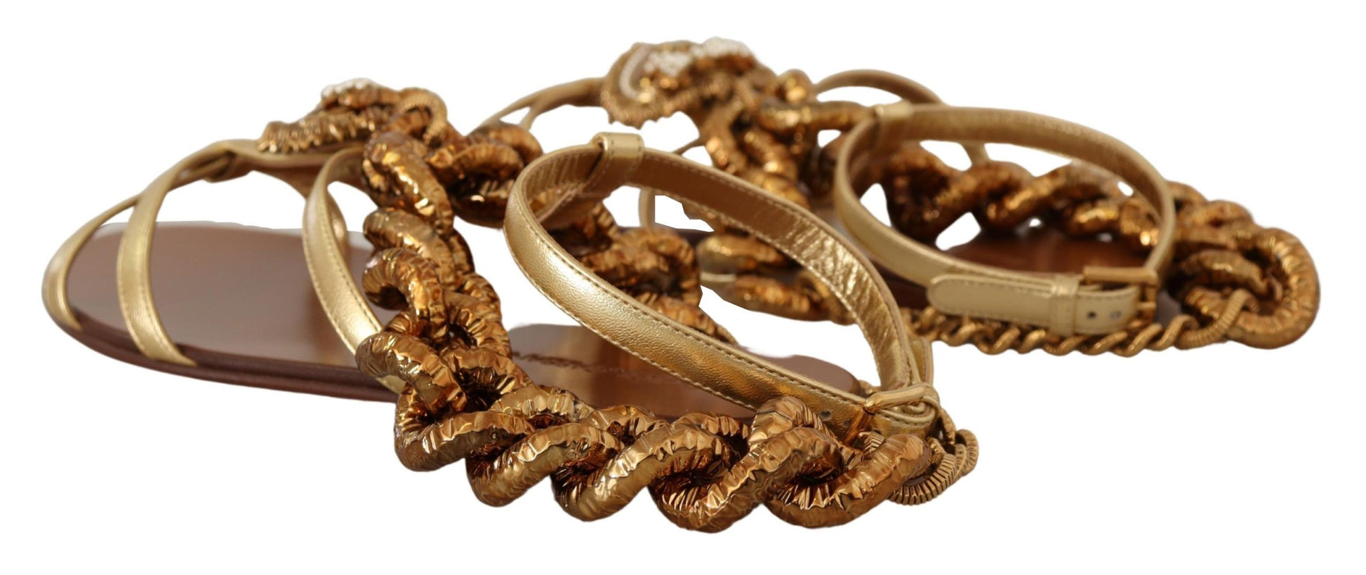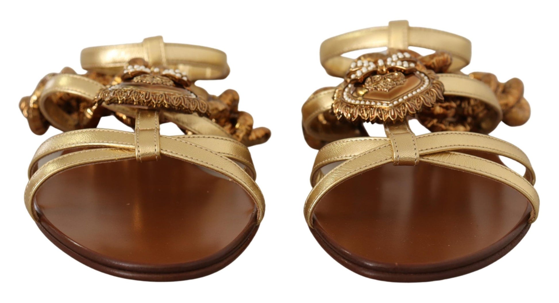 Dolce & Gabbana Gold Leather Devotion Flats Sandals