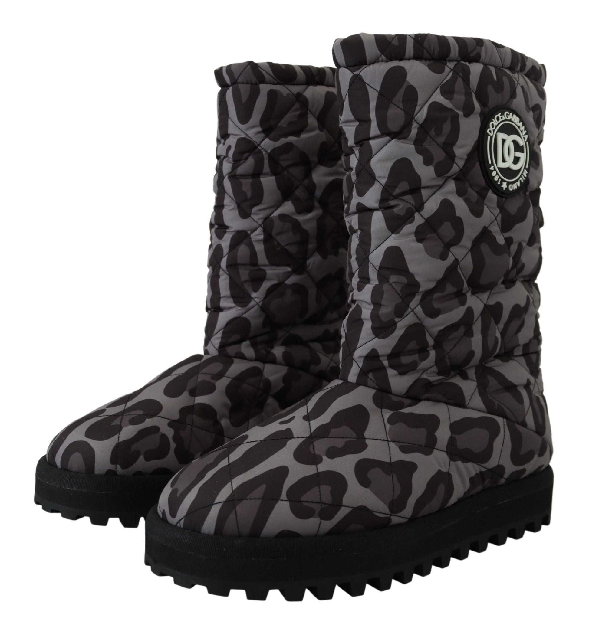 Dolce & Gabbana Gray Leopard Boots Padded Mid Calf Shoes