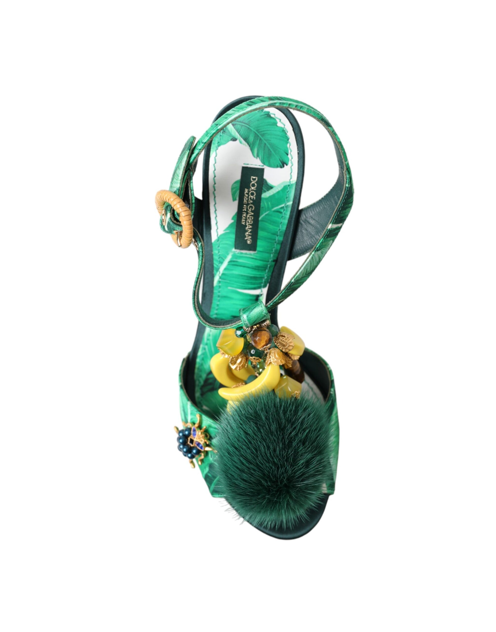 Dolce & Gabbana Green Banana Leaf Embellished T-Strap Sandals Shoes