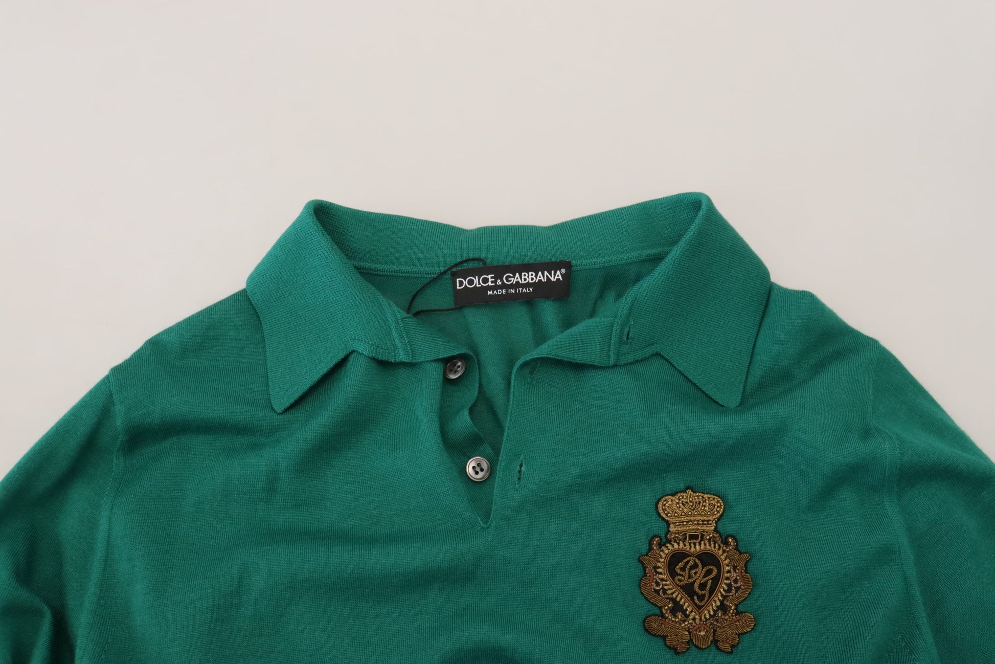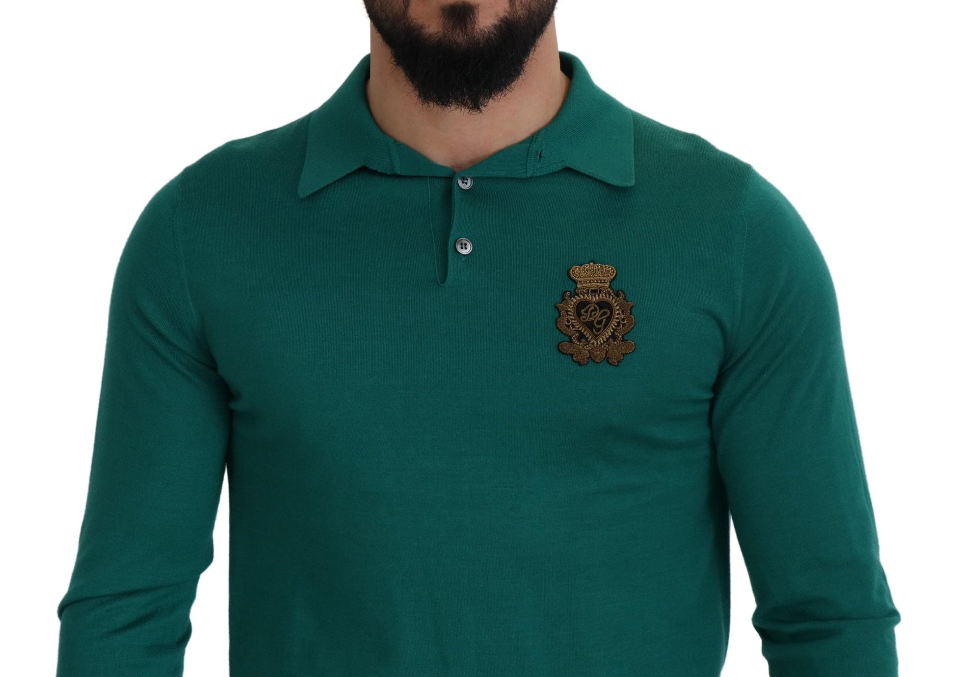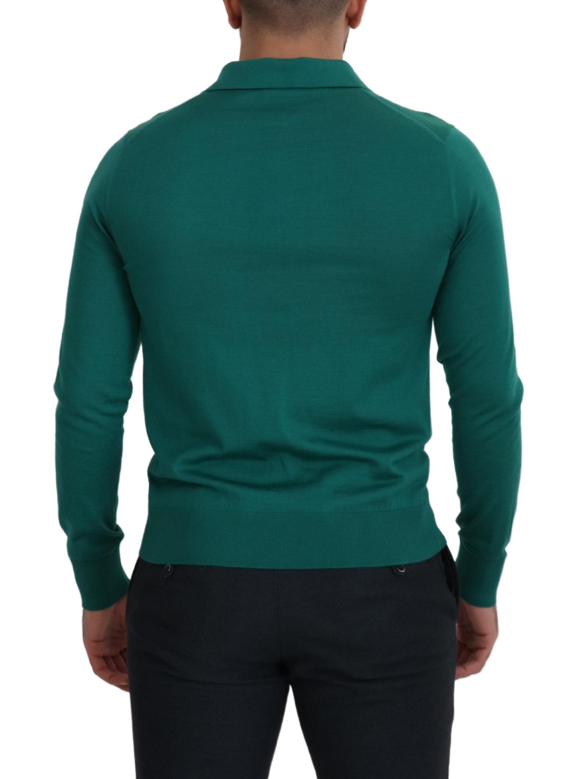 Dolce & Gabbana Green Cashmere Collared Logo Pullover Sweater