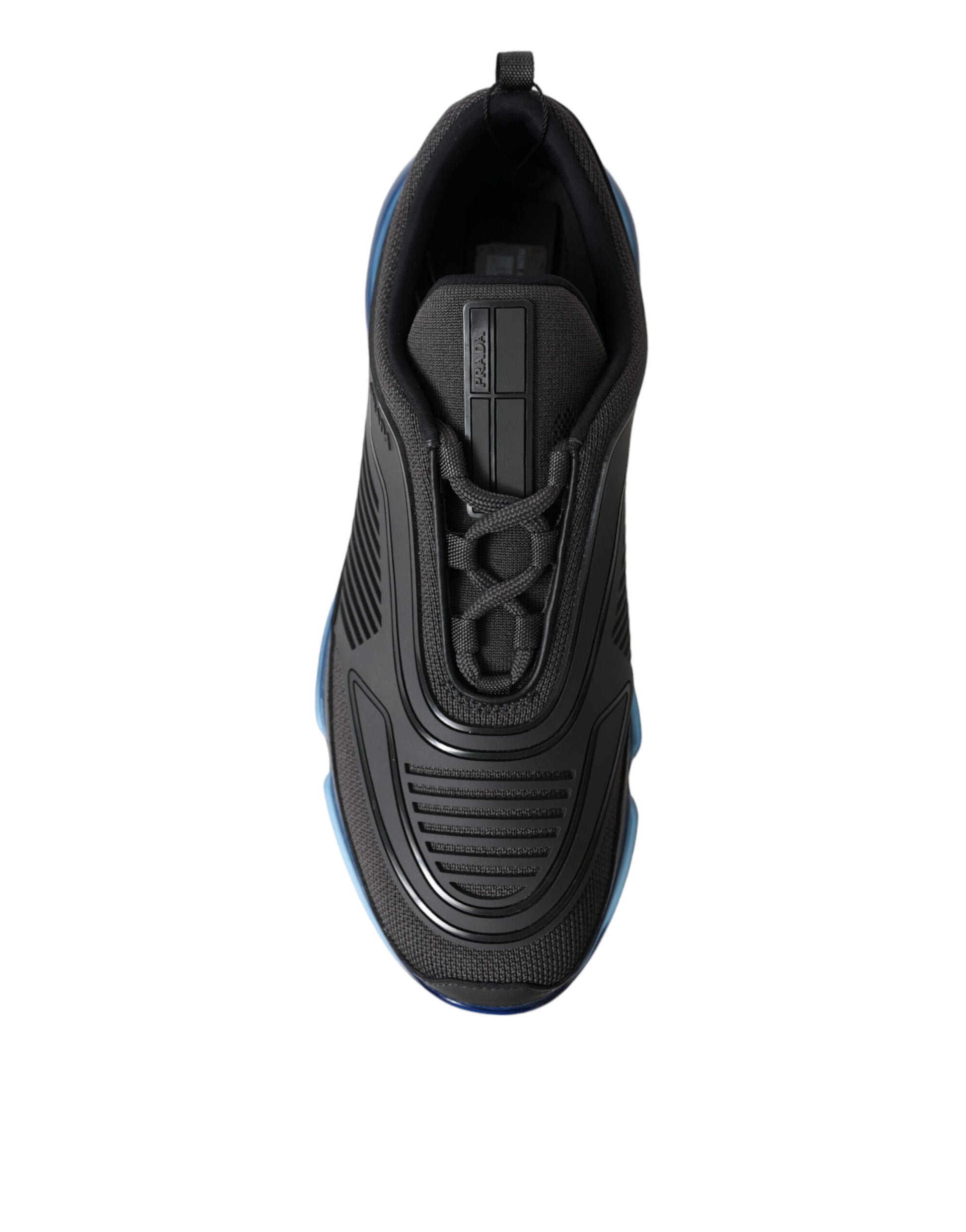 Prada Black Blue Rubber Knit Slip On Low Top Sneakers Shoes